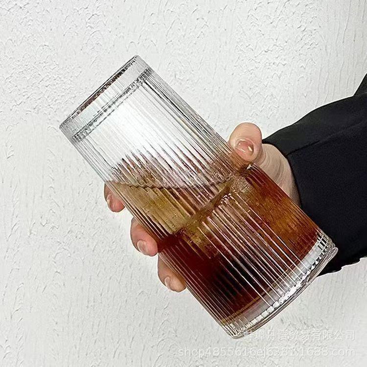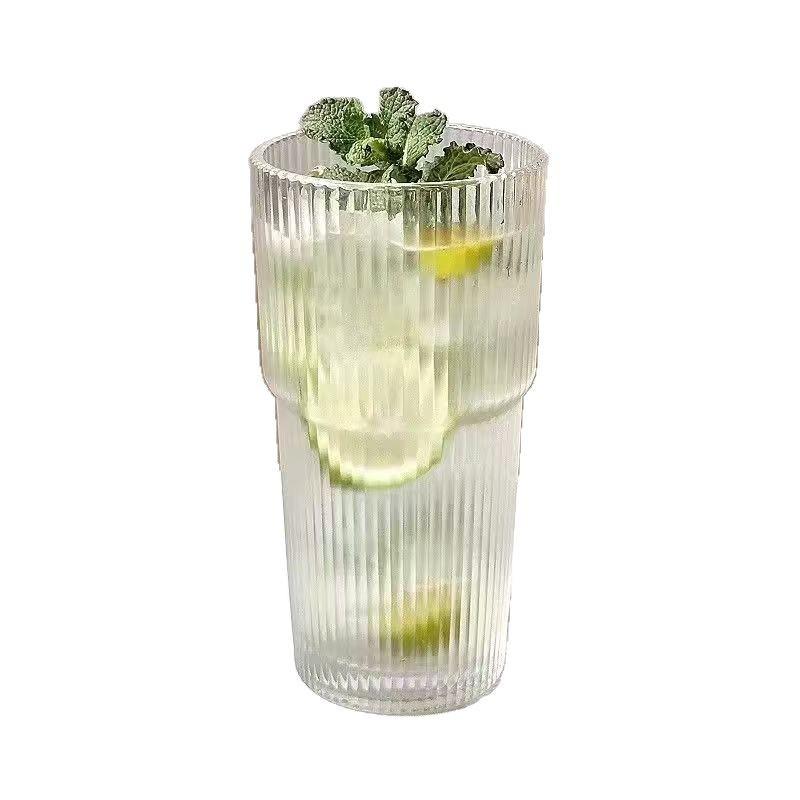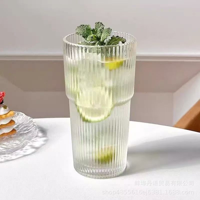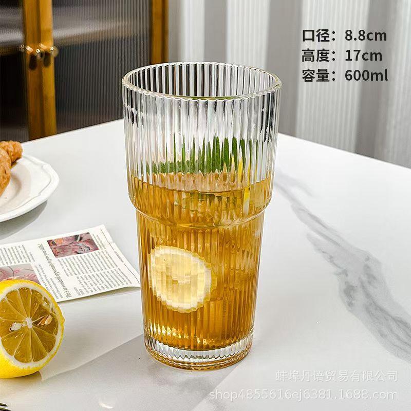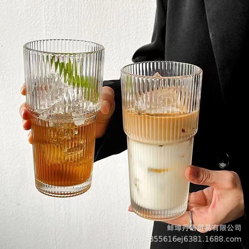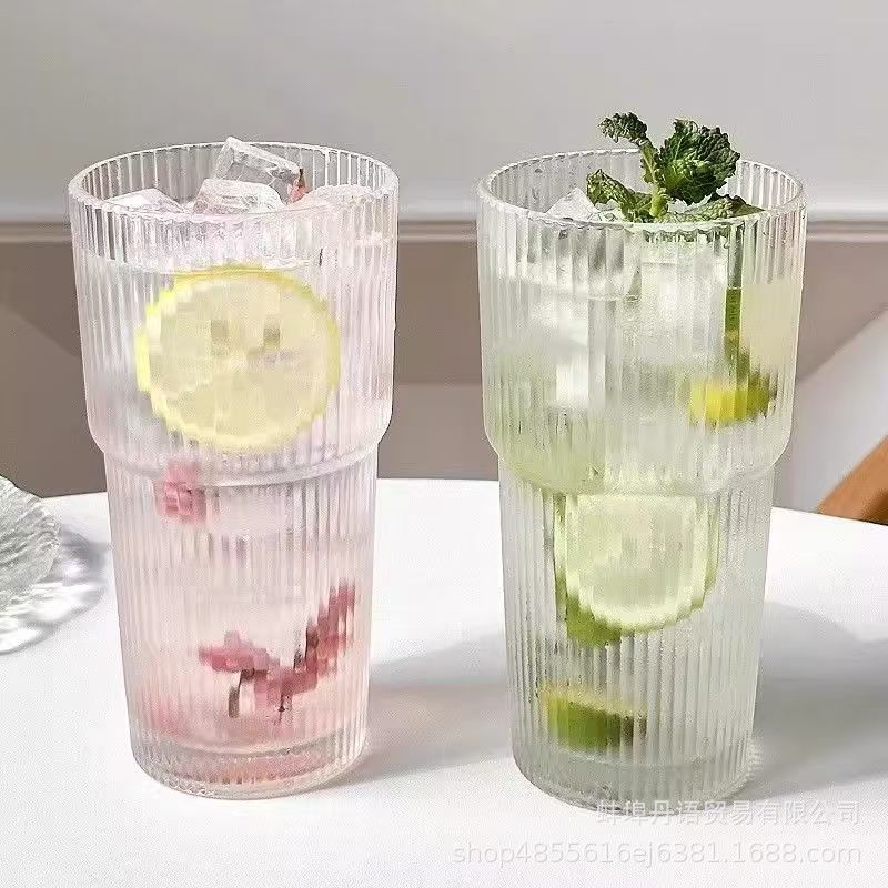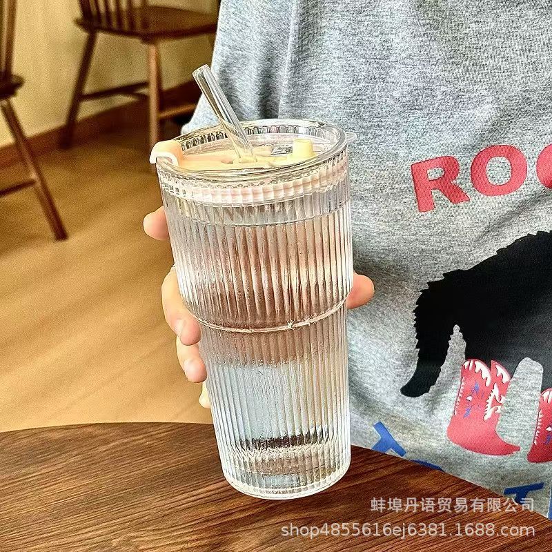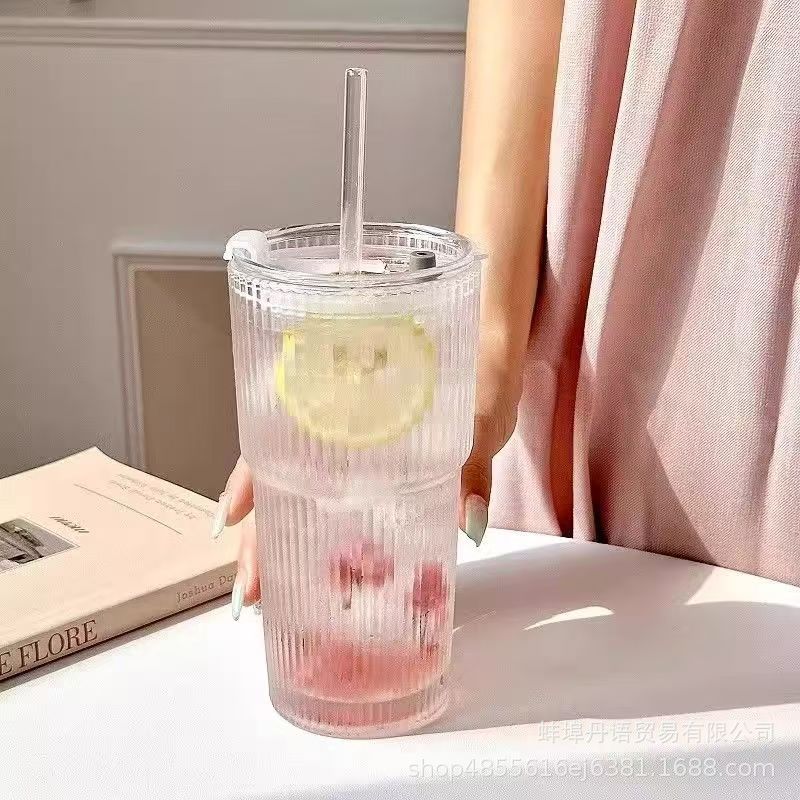 Vaso de Rayas Verticales Estilo Ins Gran Capacidad con Tapa y Popote Alto Valor de Color Vaso para Bebidas Frías Vaso para Jugo de Frutas Vaso para Café Vaso para Agua