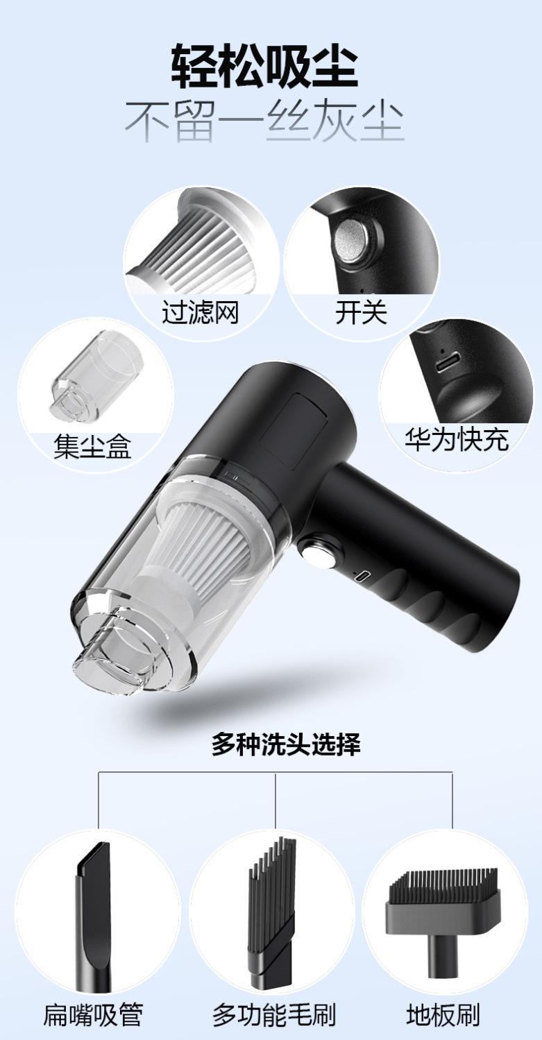 Aspiradora de mano para coche transfronteriza, para el hogar, portátil, carga inalámbrica, succión de polvo de alta potencia y pistola para quitar el polvo, succión de lana de doble uso