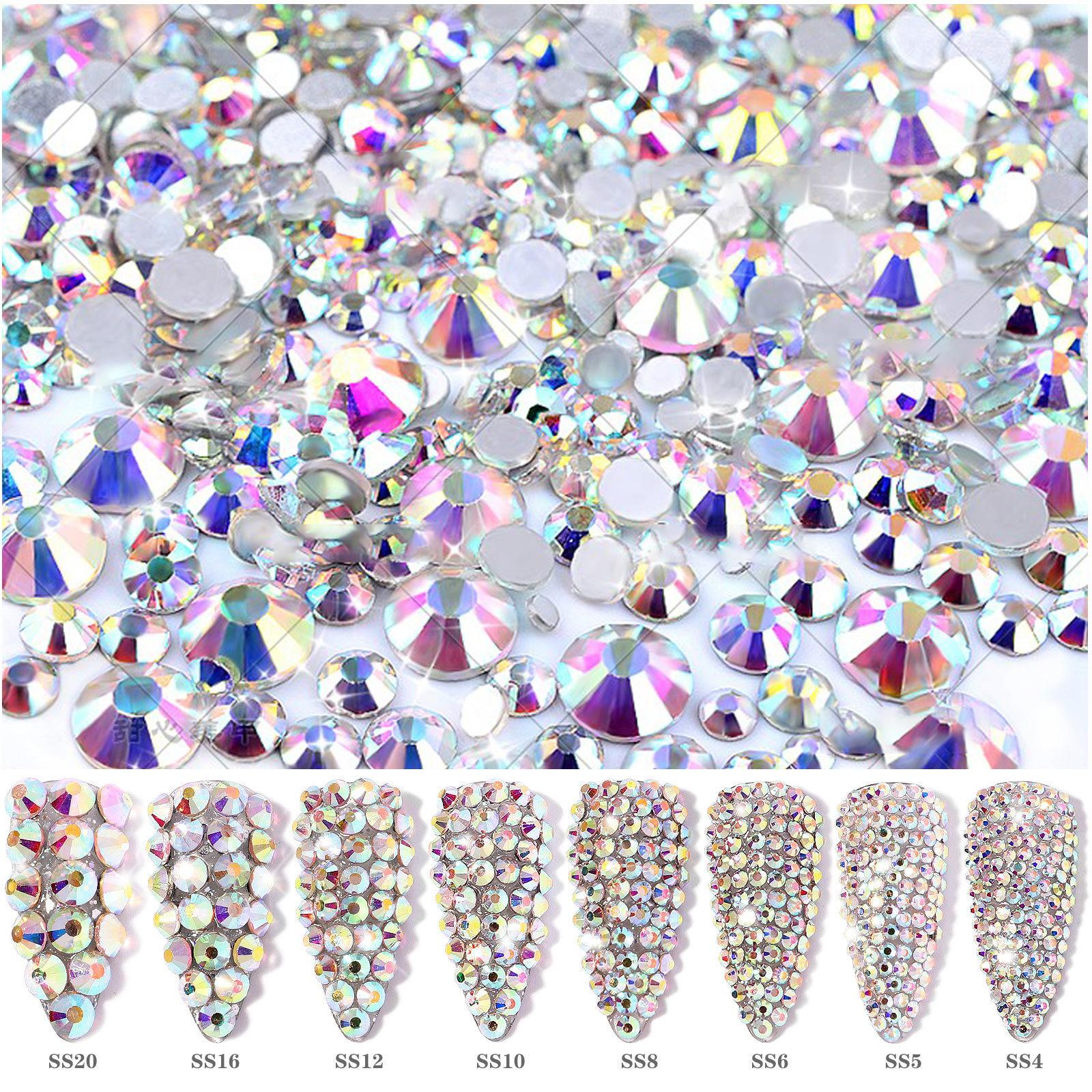 Joyería para Arte de Uñas Diamantes de Fondo Plano Color Mezclado Paquete de Material Diamantes AB Transparentes Diamantes para Uñas Decoración DIY Fondo Dorado Fondo Plateado Pedrería