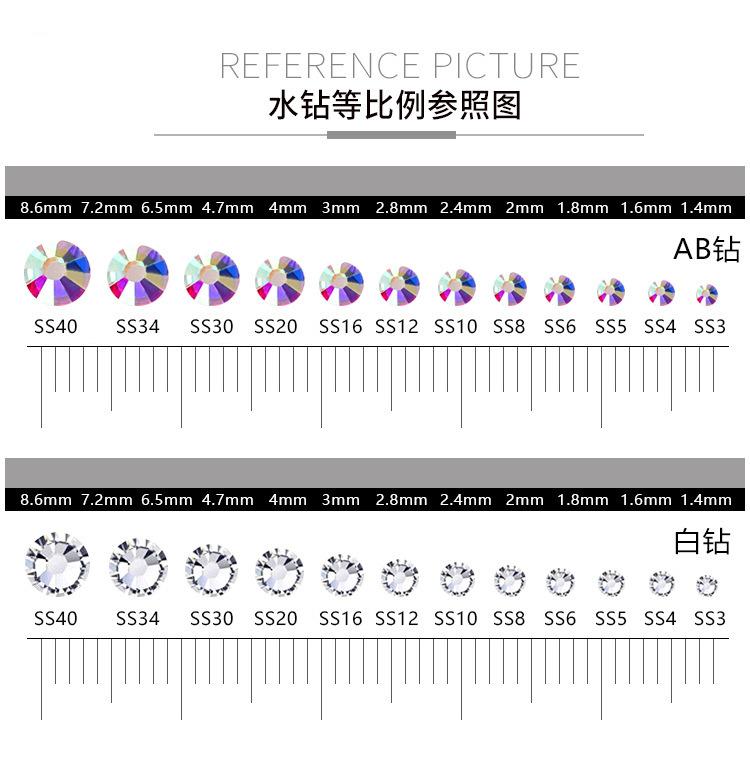 SS3 white diamond (1.4MM)1440, SS4 white diamond (1.6MM)1440, SS5 white diamond (1.8MM)1440, SS6 White Diamond...