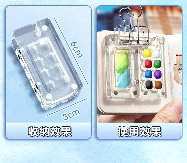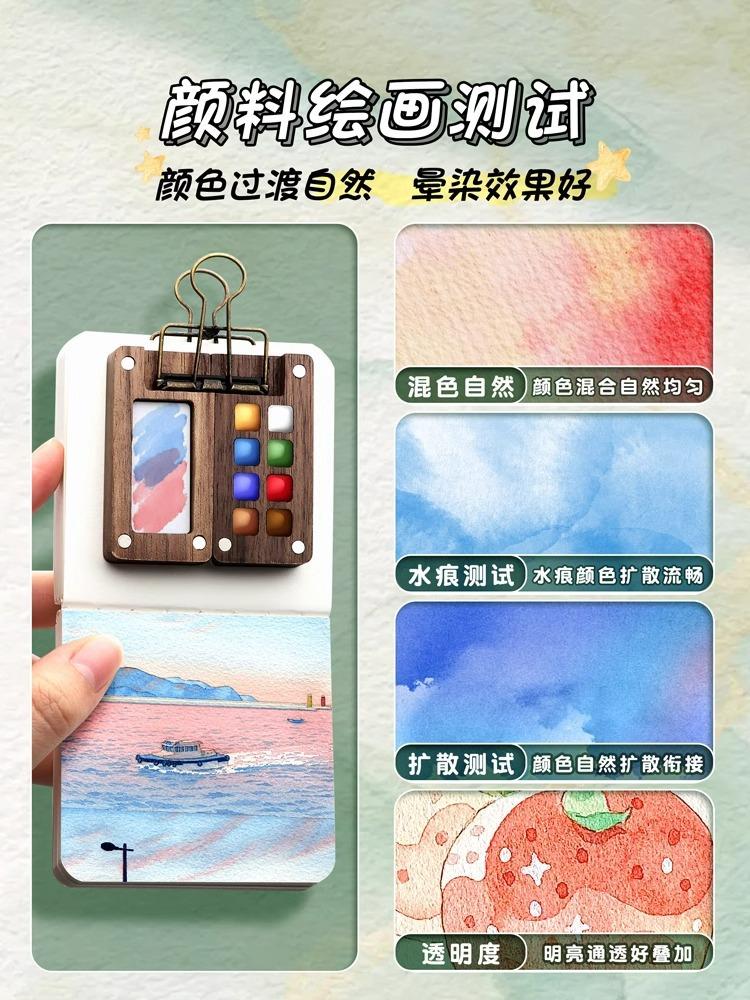 Mini caja de nogal para acuarela, caja acrílica, libro de mano portátil para bocetos, libros de pintura para viajes, paleta de colores