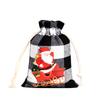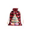 Bolsa de algodón con cordón a cuadros navideños, bolsa para guardar dulces navideños, bolsa con cordón decorativa para ventana, bolsa de regalo de Navidad, traje
