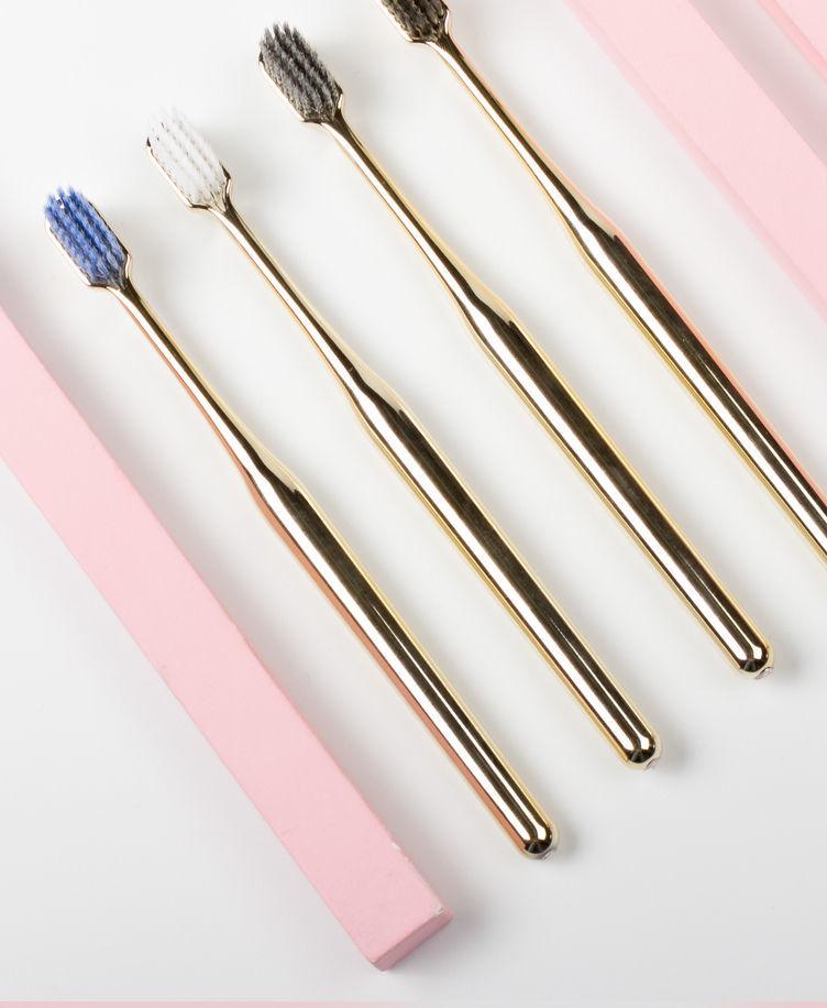 Cepillo de Dientes Hogar Cerdas Finas Suaves para Hombres y Mujeres Cerdas de Carbón de Bambú Pelo en Espiral Decoración para el Hogar Cabeza Pequeña Mango Dorado Jikai Independiente