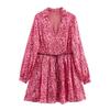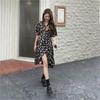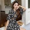 Vestido floral al por mayor transfronterizo 2023 Verano nuevo adelgazante de cintura cuello en V diseño irregular vestido de manga corta