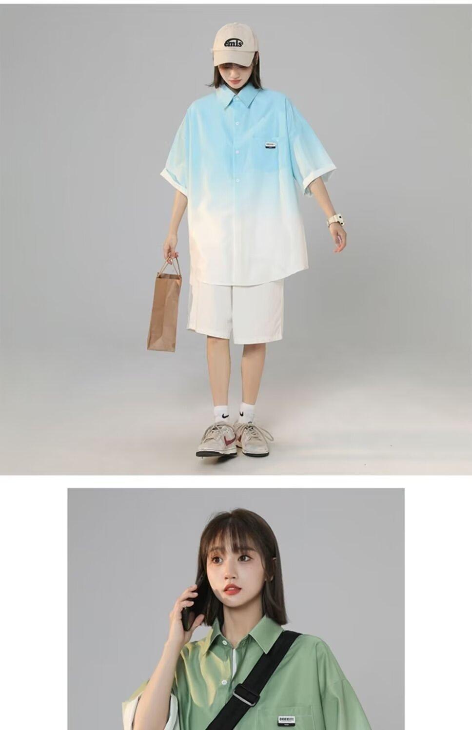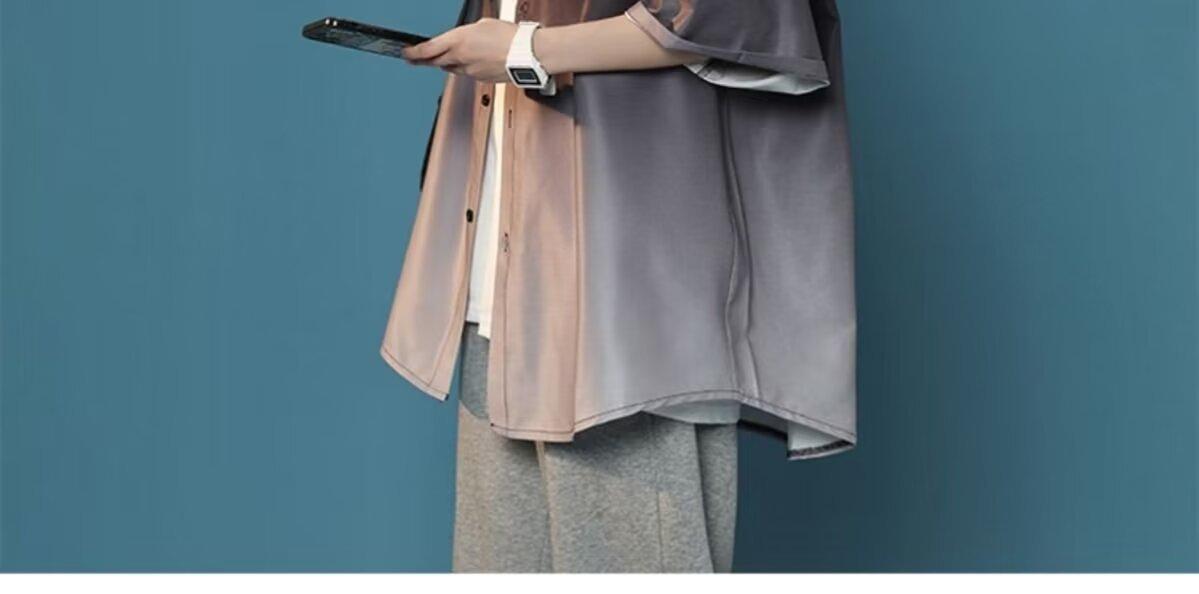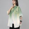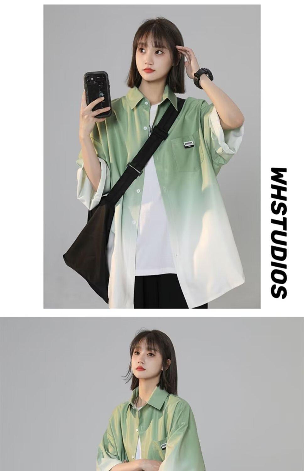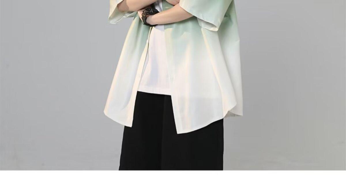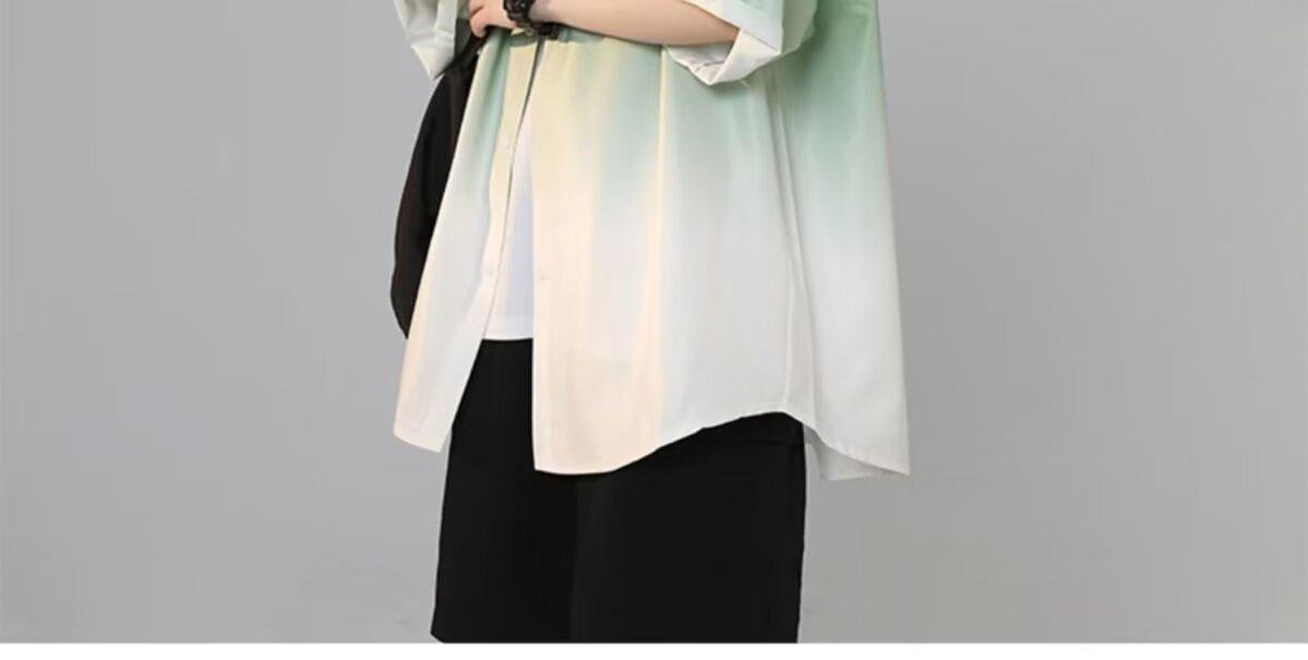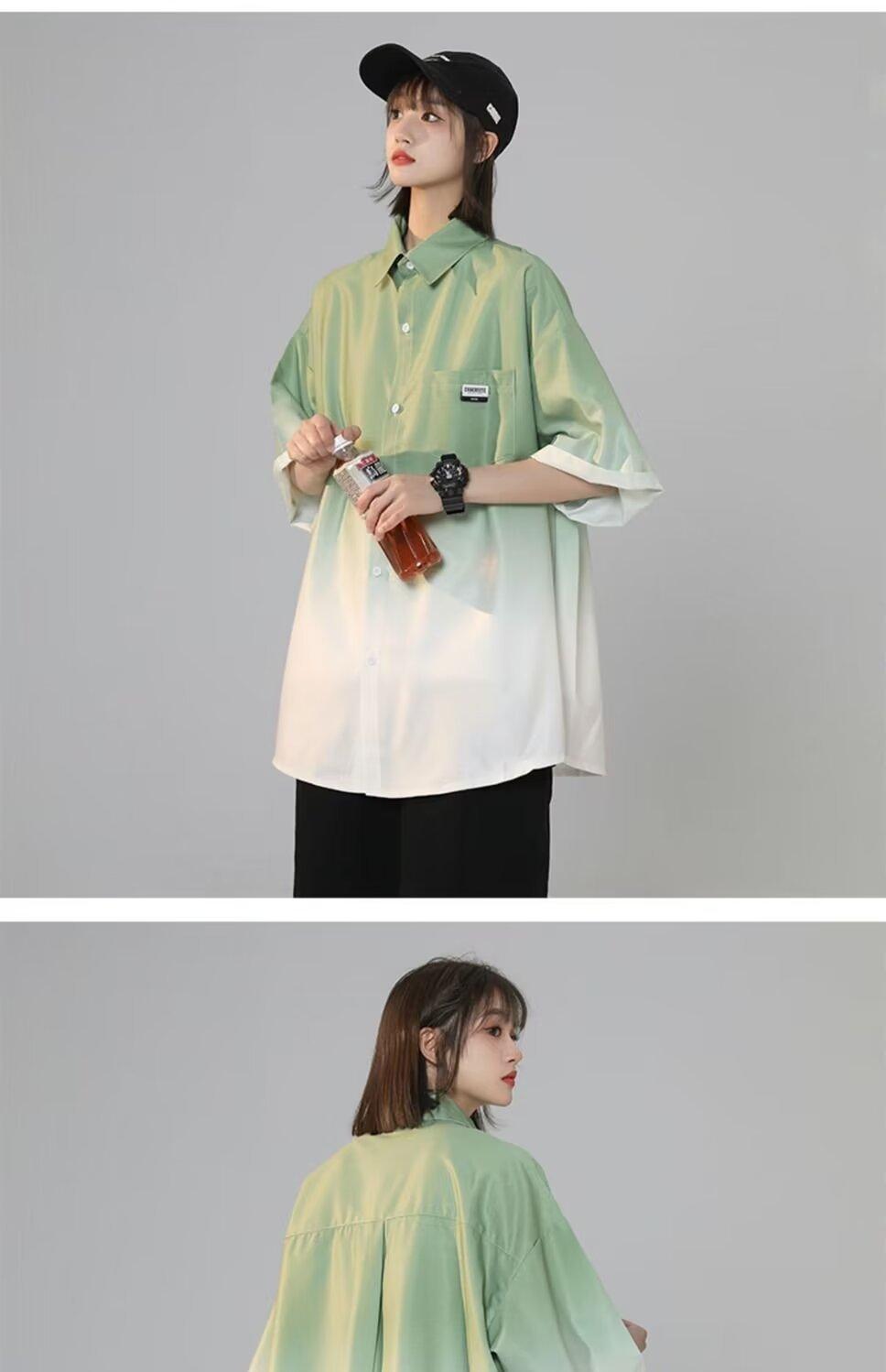 Camisa de Manga Corta con Color Degradado Abrigo para Mujer Seda de Hielo Fresco Dulce Solapa Cárdigan Transpirable Media Manga Camisa de Media Manga