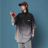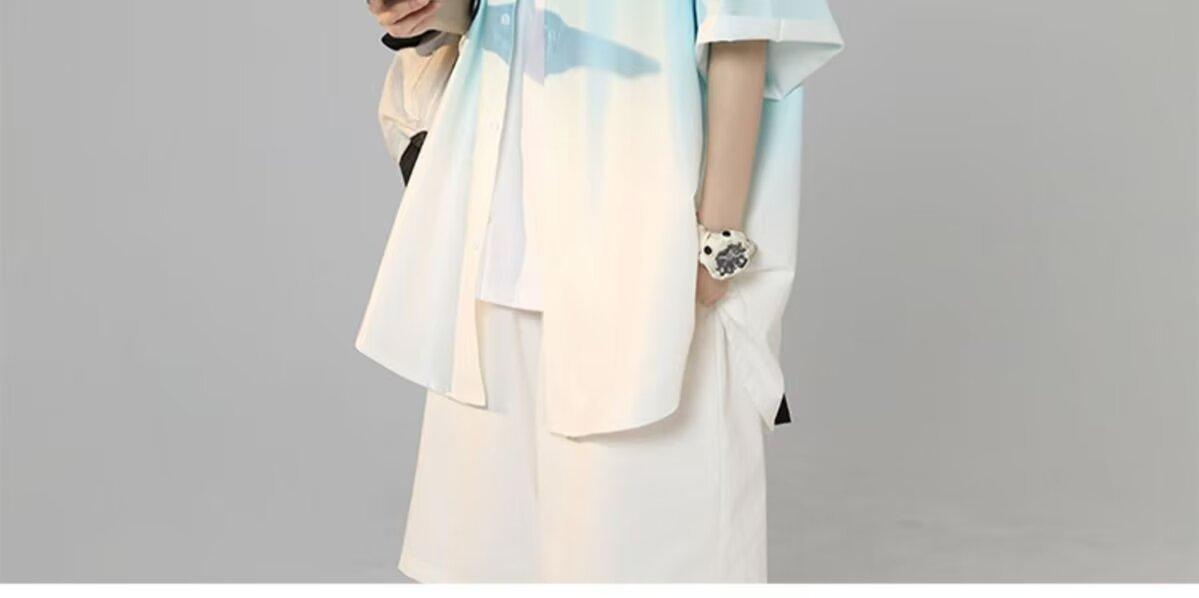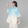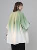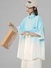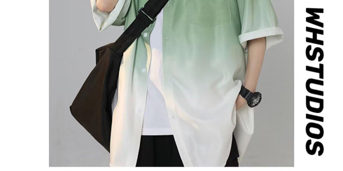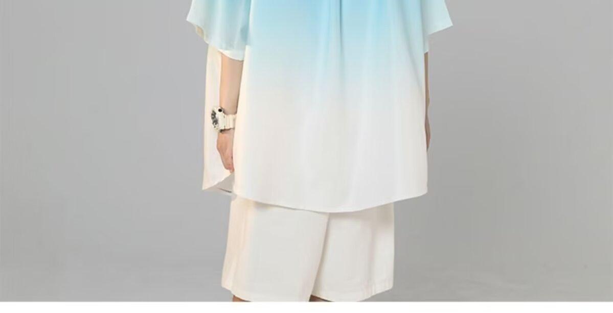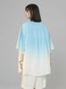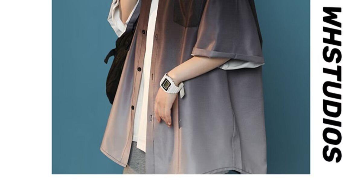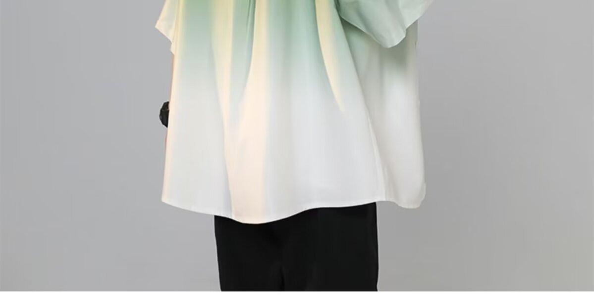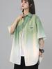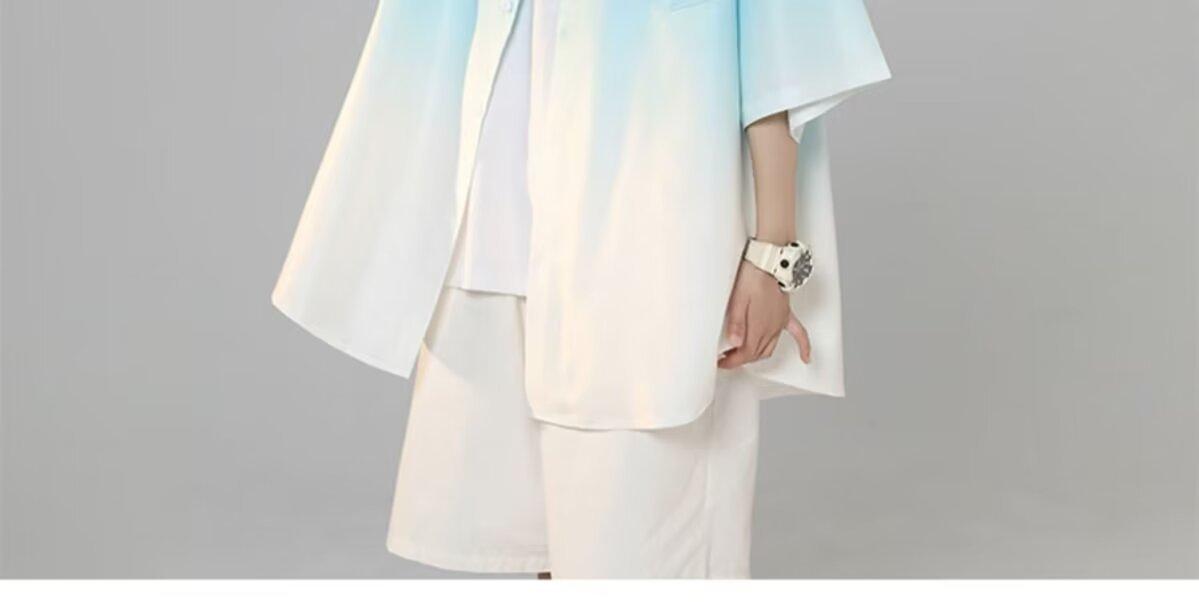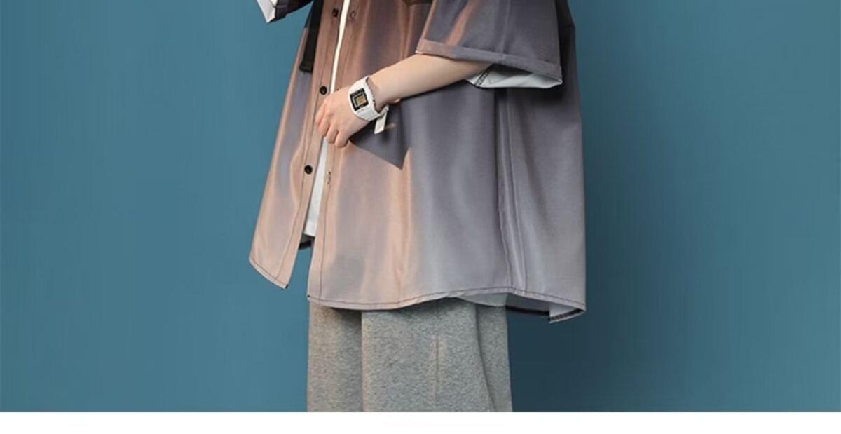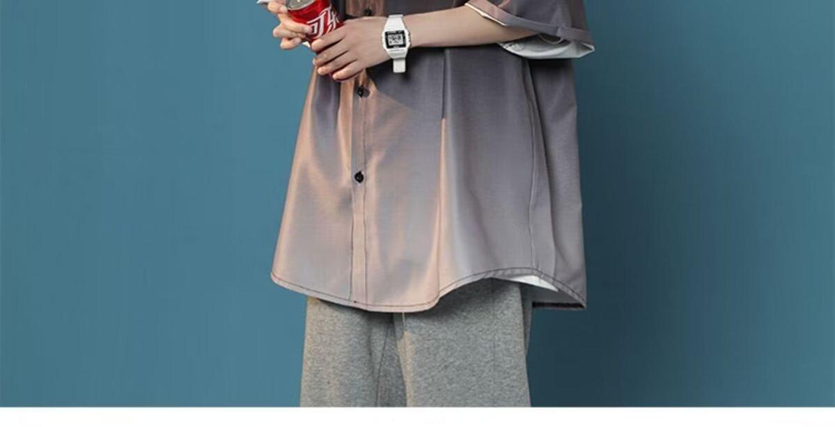 Camisa de Manga Corta con Color Degradado Abrigo para Mujer Seda de Hielo Fresco Dulce Solapa Cárdigan Transpirable Media Manga Camisa de Media Manga