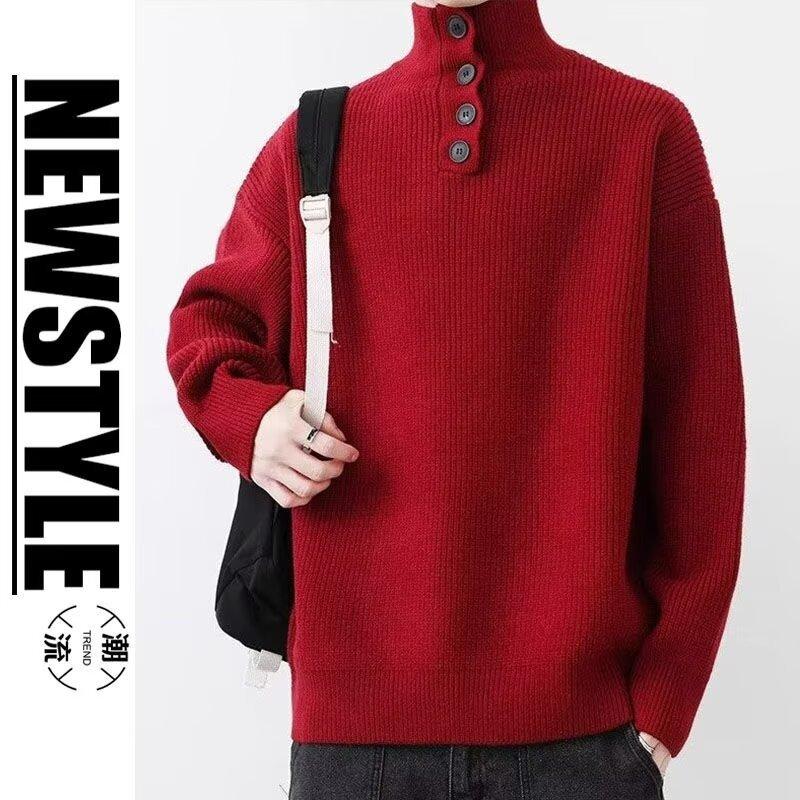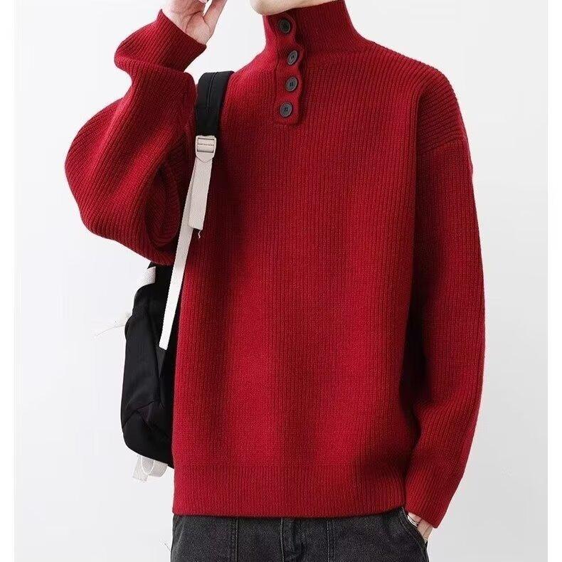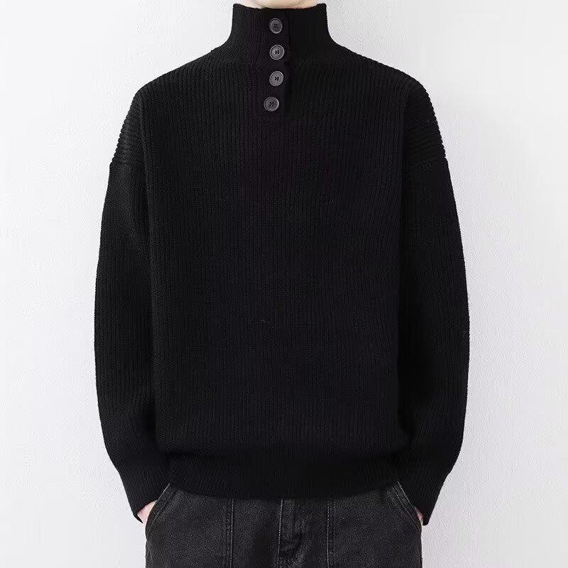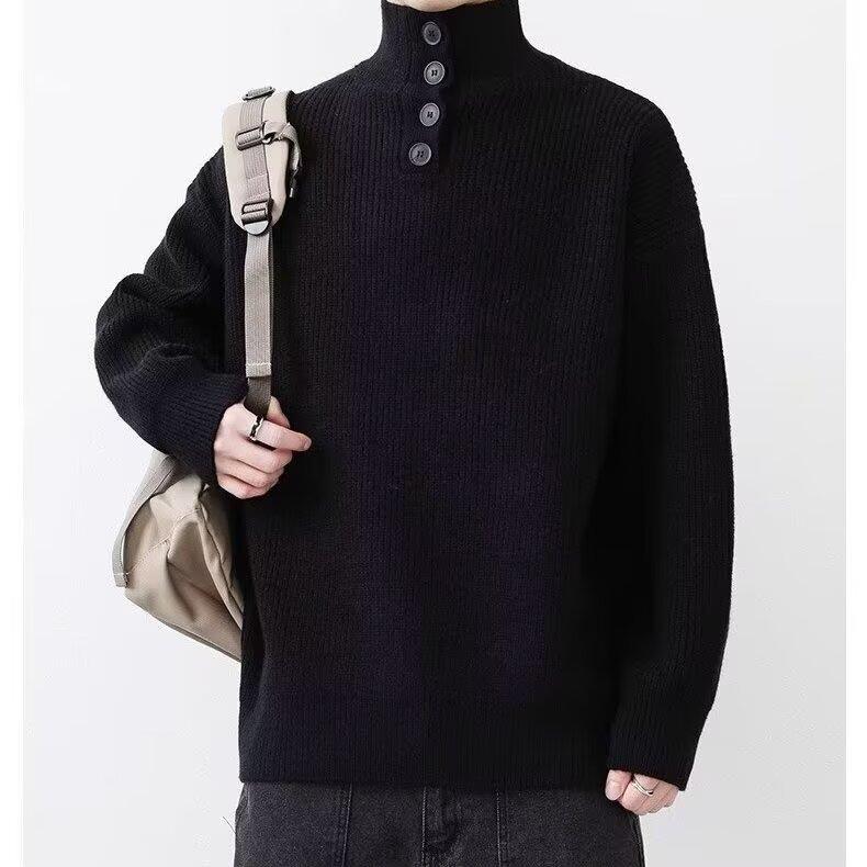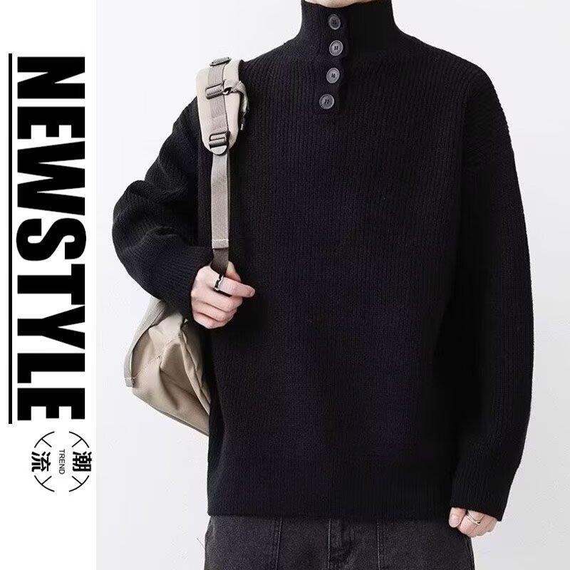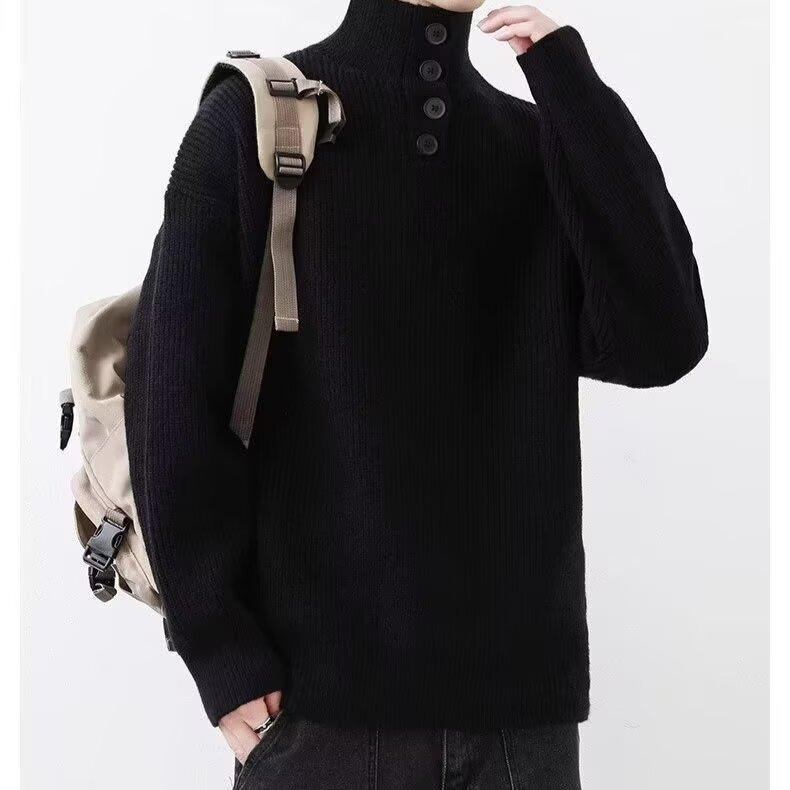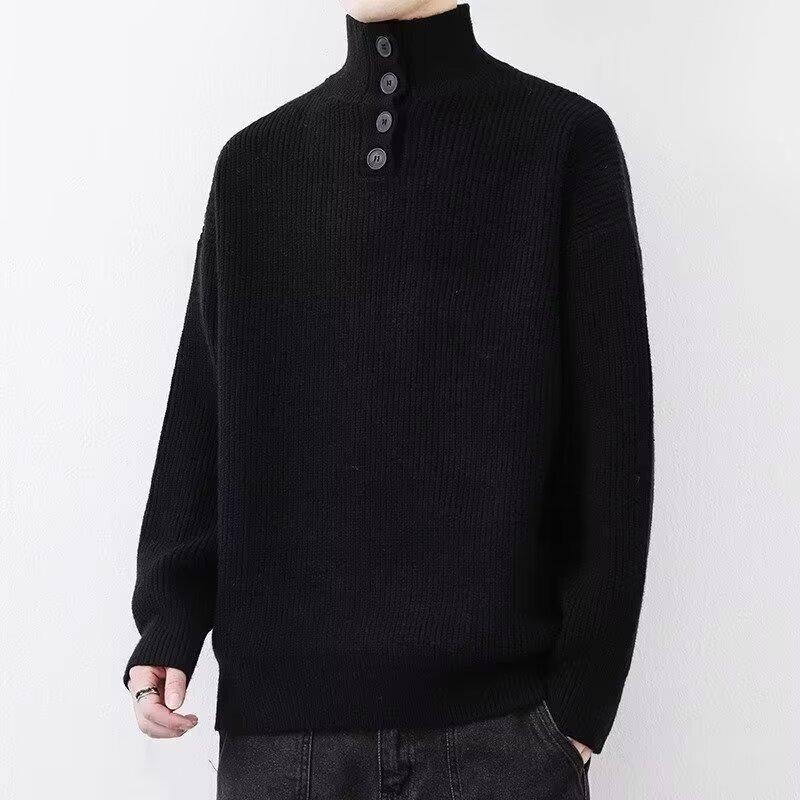 Suéter de nicho para hombre de alta calidad, color sólido, a prueba de frío, cuello alto, grueso, suéter moderno, suéter moderno, cálido, casual, de punto