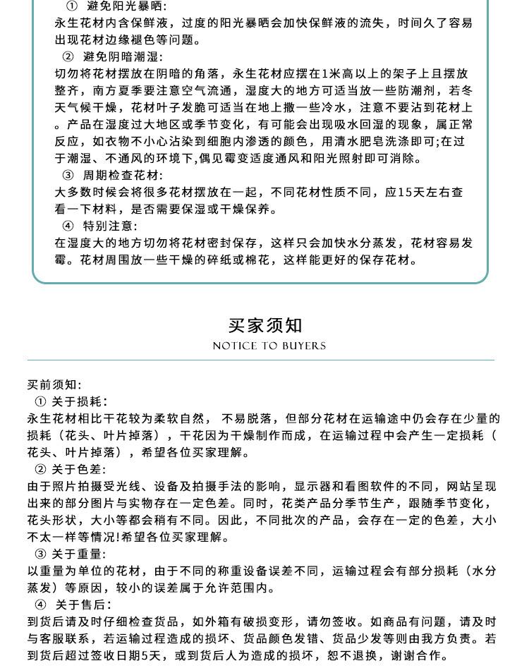 El precio es el precio de fábrica, excluyendo impuestos y tarifas. Por favor, contacte al servicio al cliente para la factura. ¡Por favor, contacte al servicio al cliente dentro de las 48 horas posteriores a la firma por cualquier problema! Los productos caducados no serán procesados, y no se aceptarán reembolsos ni cambios. Las flores secas son artículos frágiles y habrá pérdidas durante el transporte, por lo que nuestros productos no aceptan ningún servicio de devolución y cambio incondicional. Por favor, tenga cuidado si le importa. Lea la página de detalles del producto cuidadosamente antes de comprar. No se aceptan reembolsos ni devoluciones por pérdida de pétalos, olor, almacenamiento y mantenimiento inadecuados, diferencias naturales de crecimiento de las plantas (como tamaño y color, etc.), y exudación de aceite húmedo. Por favor, tenga cuidado si le importa. El embalaje requiere mucha mano de obra y no se puede enviar inmediatamente. No insista en el envío después de realizar un pedido. No se aceptan pedidos urgentes. Nuestra tienda no es responsable de las consecuencias de los pedidos urgentes o la entrega exprés lenta, y no se aceptan devoluciones ni cambios. SF Express enviará contra entrega. Por favor, lea cuidadosamente antes de comprar para comprender el producto.