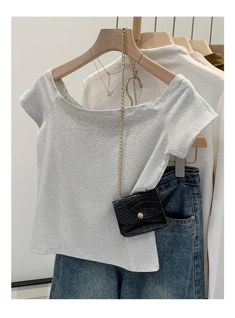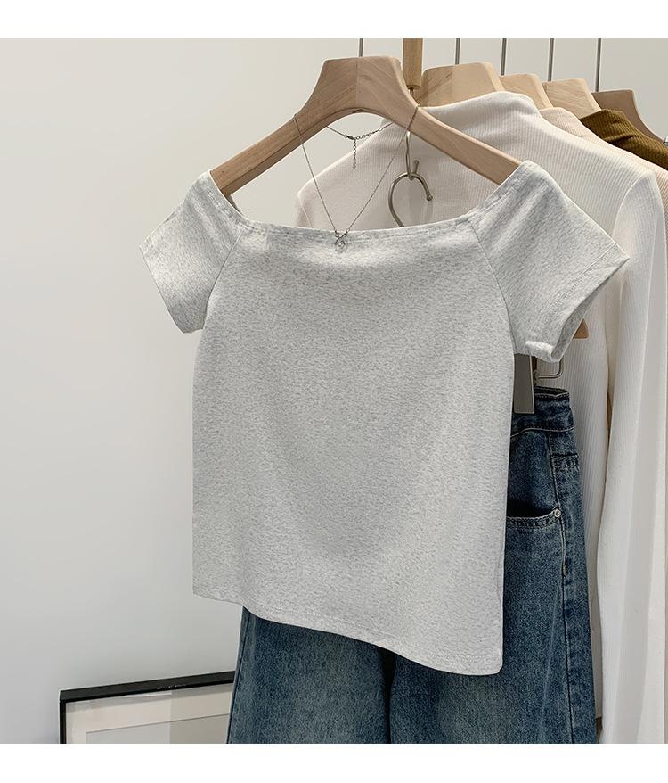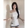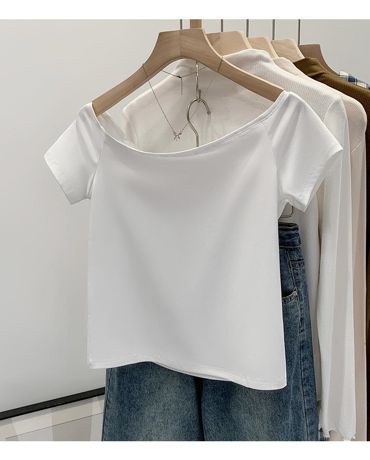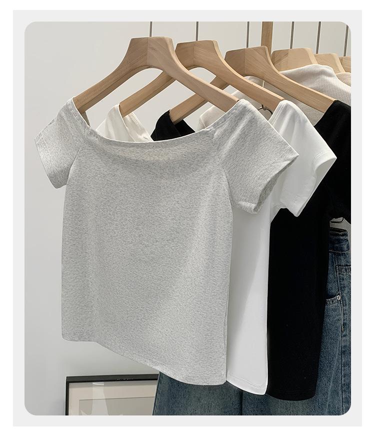 Estilo Coreano Lujuria Pura Chica Sexy Un Hombro Hombro Descubierto Camiseta Manga Corta Mujer Cuidadosamente Seleccionada 2025 Verano Nuevo Top Slim