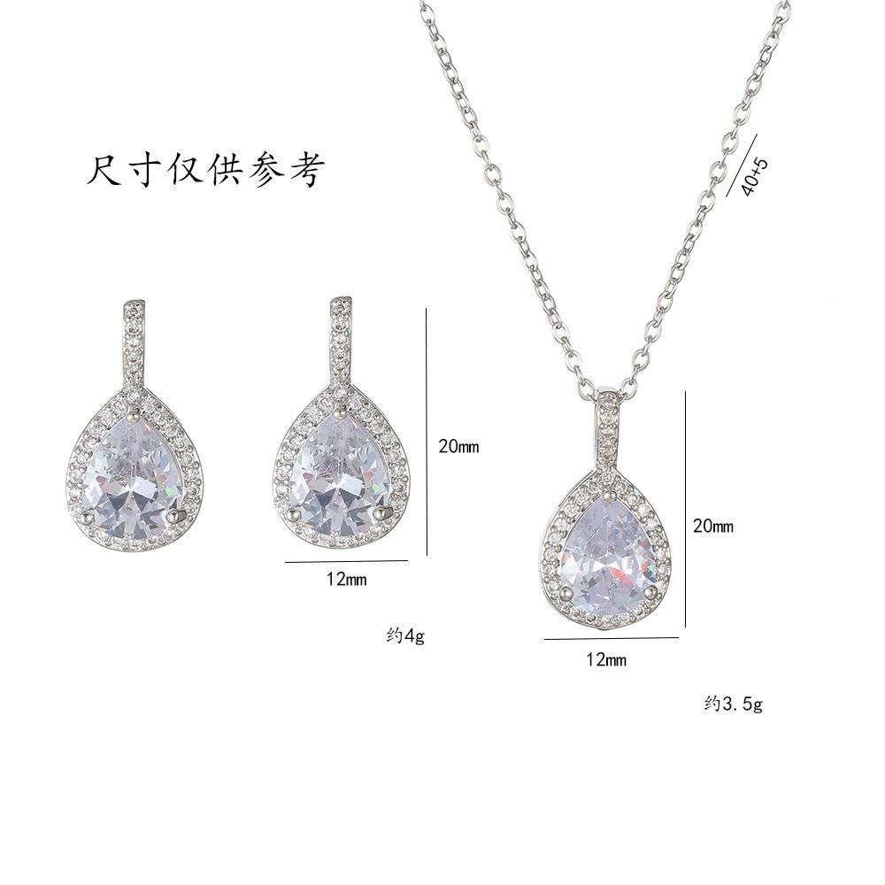 X3556 water drop necklace, E1107 water drop earrings, Steel color cross chain