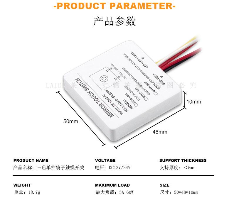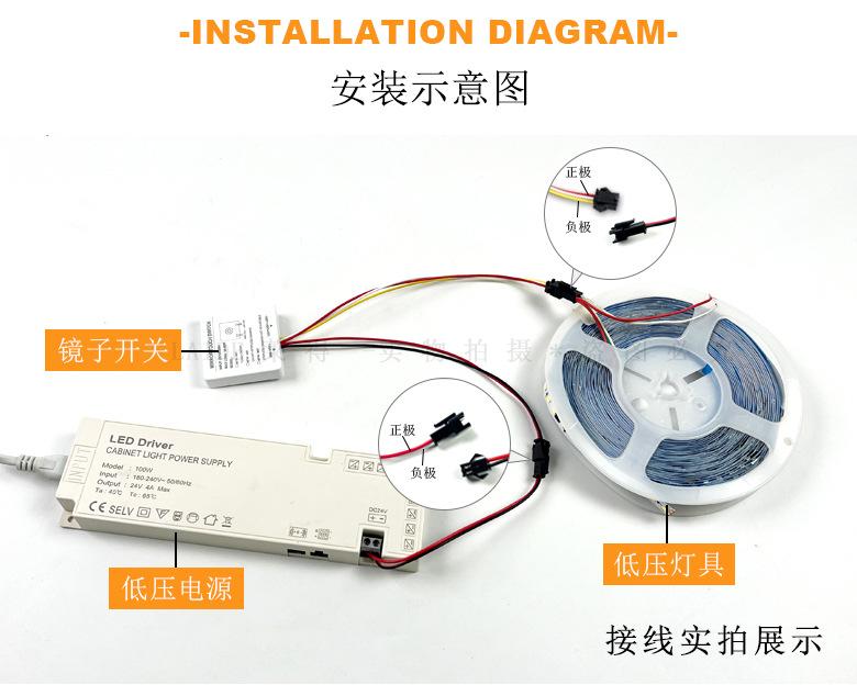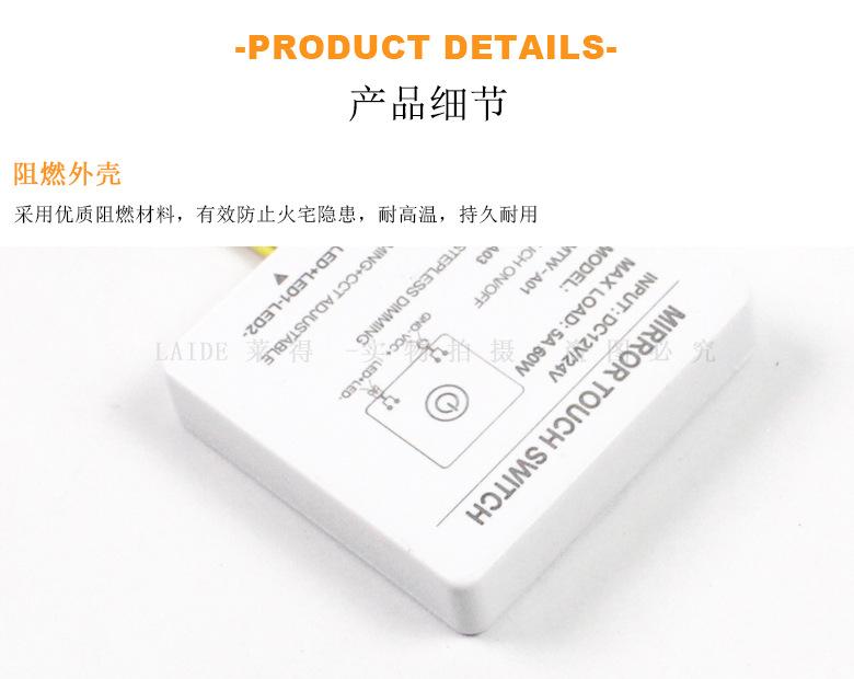 DC interface terminal + monochrome mirror touch switch (stepless dimming) + with buckle