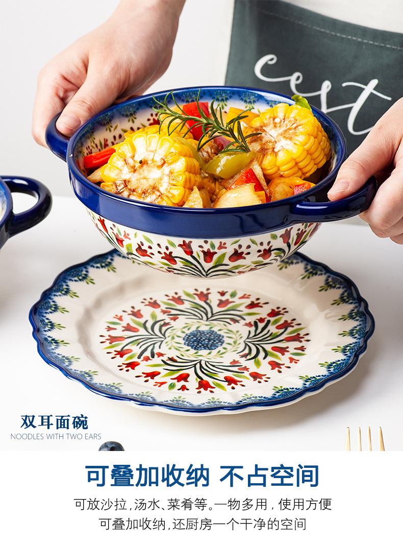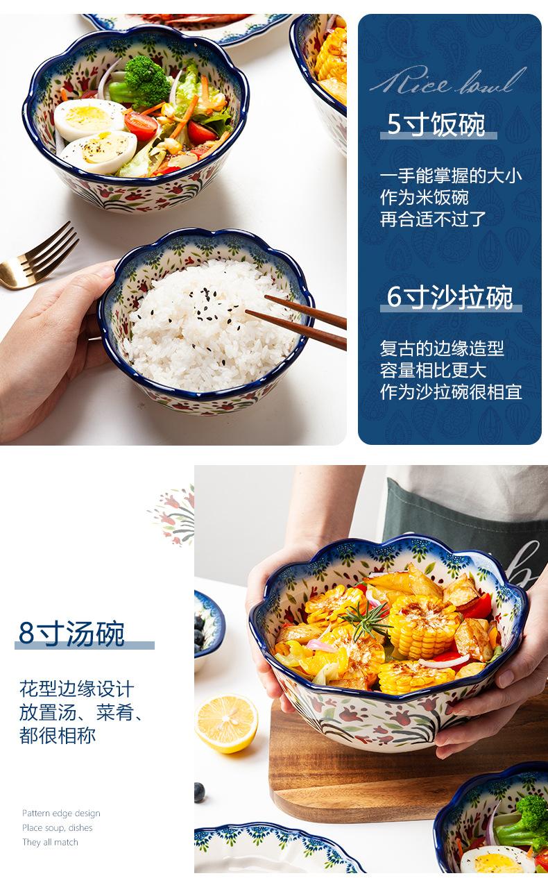 Cuenco de cerámica para el hogar, vajilla creativa transfronteriza, tazón grande para sopa, tazón para fideos, tazón de arroz, ensaladera, plato retro