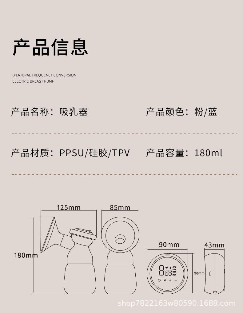 Extractor de Leche Portátil de Succión Fuerte Bilateral Transfronterizo Eléctrico Recolector de Leche con Masaje Integrado Modelo Silencioso