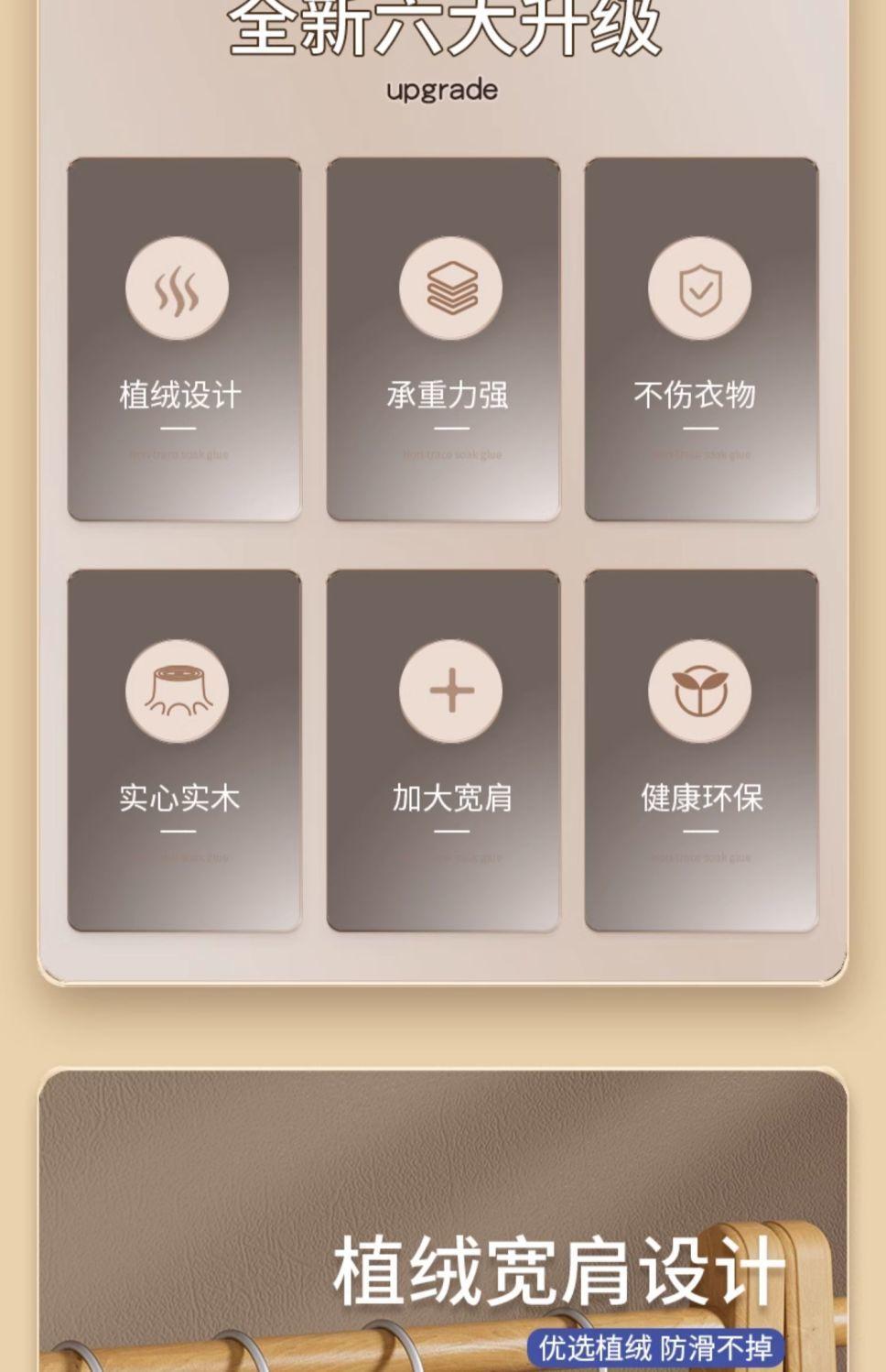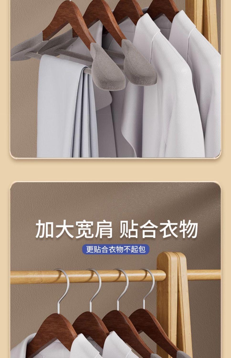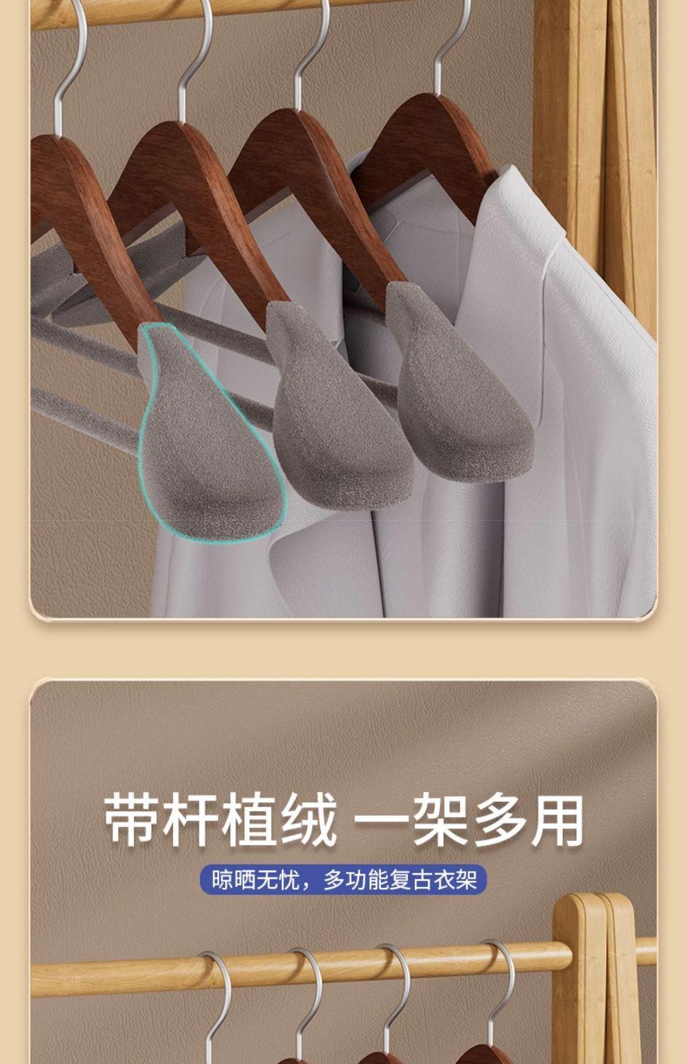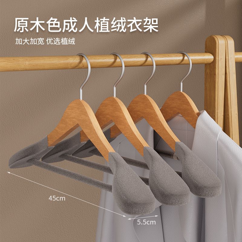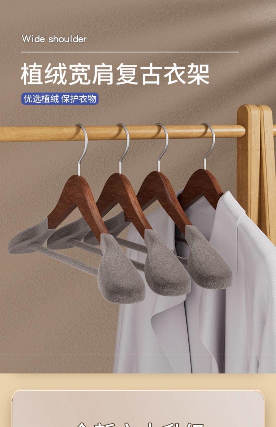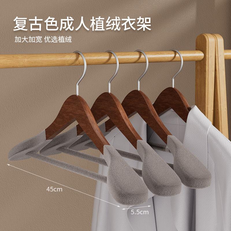 Percha de Madera Maciza Flocado Sin Costuras de Hombro Ancho Antideslizante para Hogar Colgar Ropa Traje Abrigo de Madera Retro Soporte