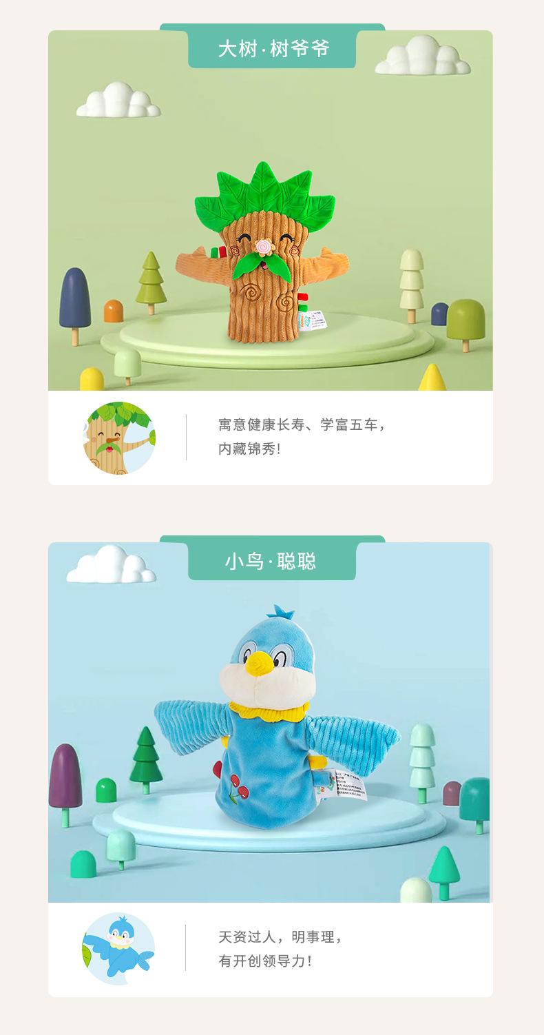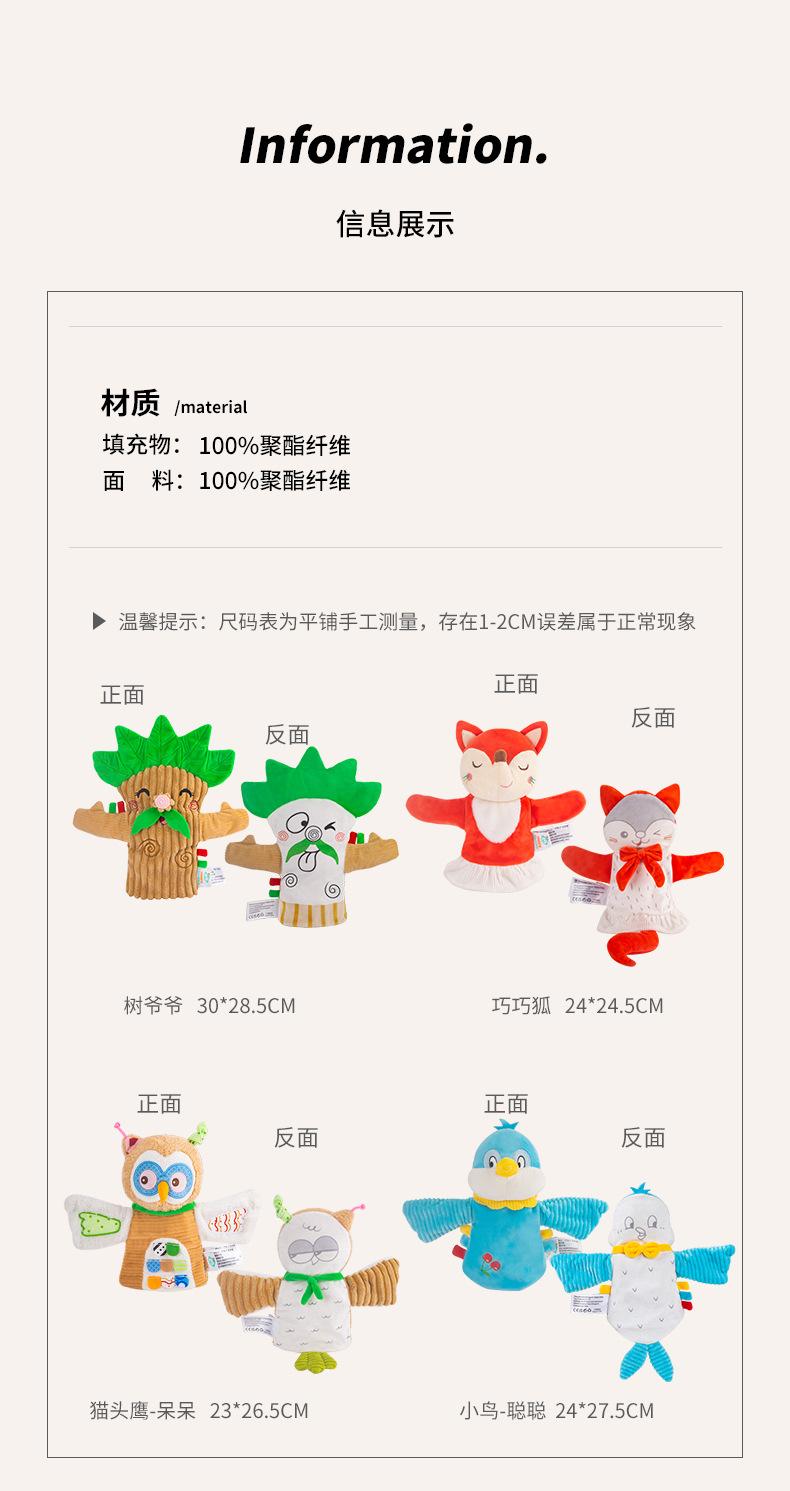 Double hand puppet Fox, Double-Sided Hand Doll Owl, Double-sided hand puppet stump, Double-Sided Hand Duplex Bluebird