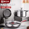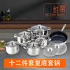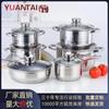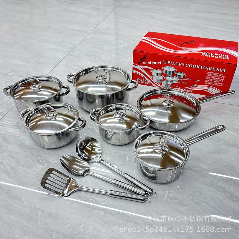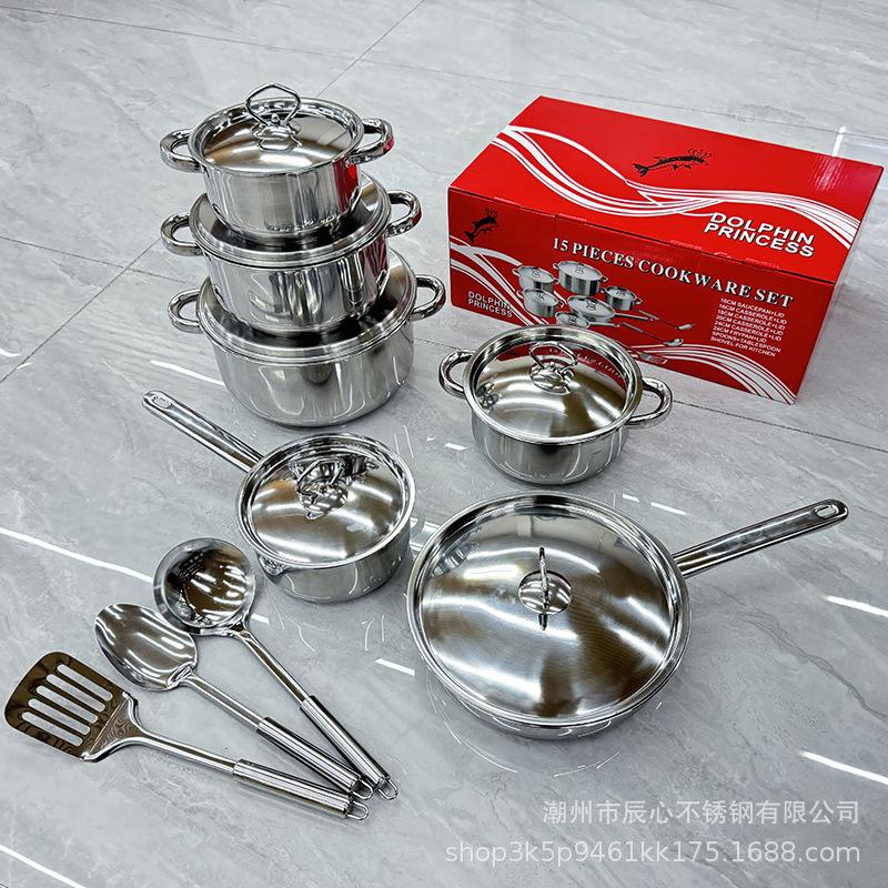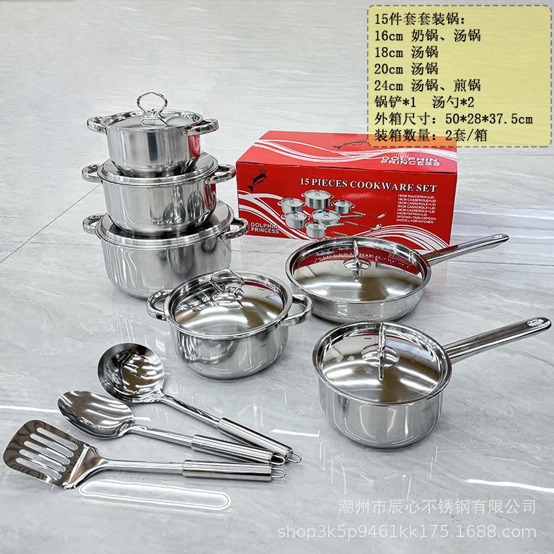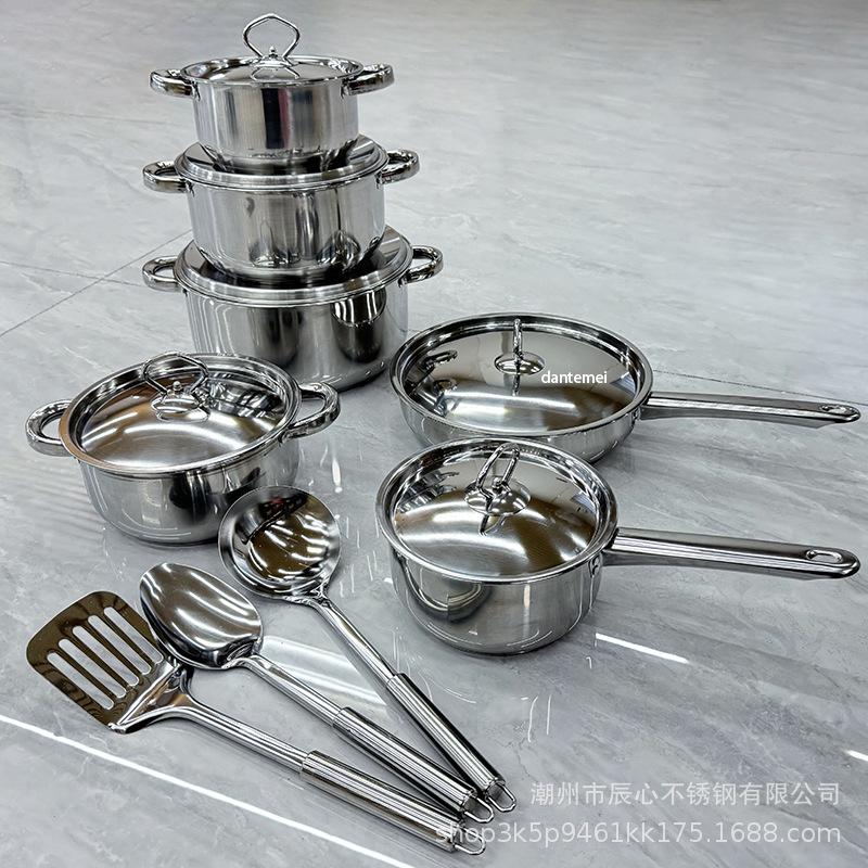 Juego de utensilios de cocina de acero inoxidable, juego de olla de fondo doble engrosado, olla para sopa, cacerola para leche, sartén con utensilios de cocina para exportación transfronteriza