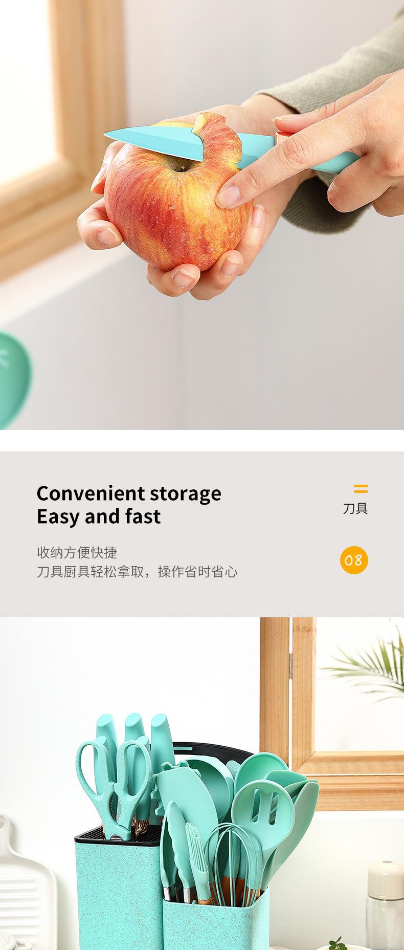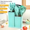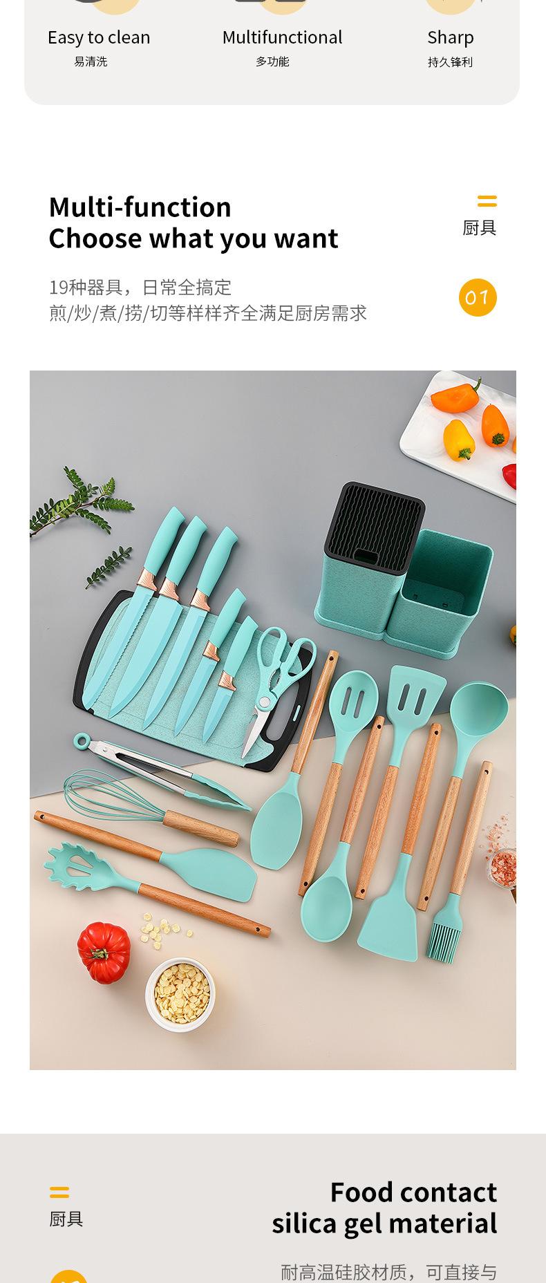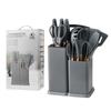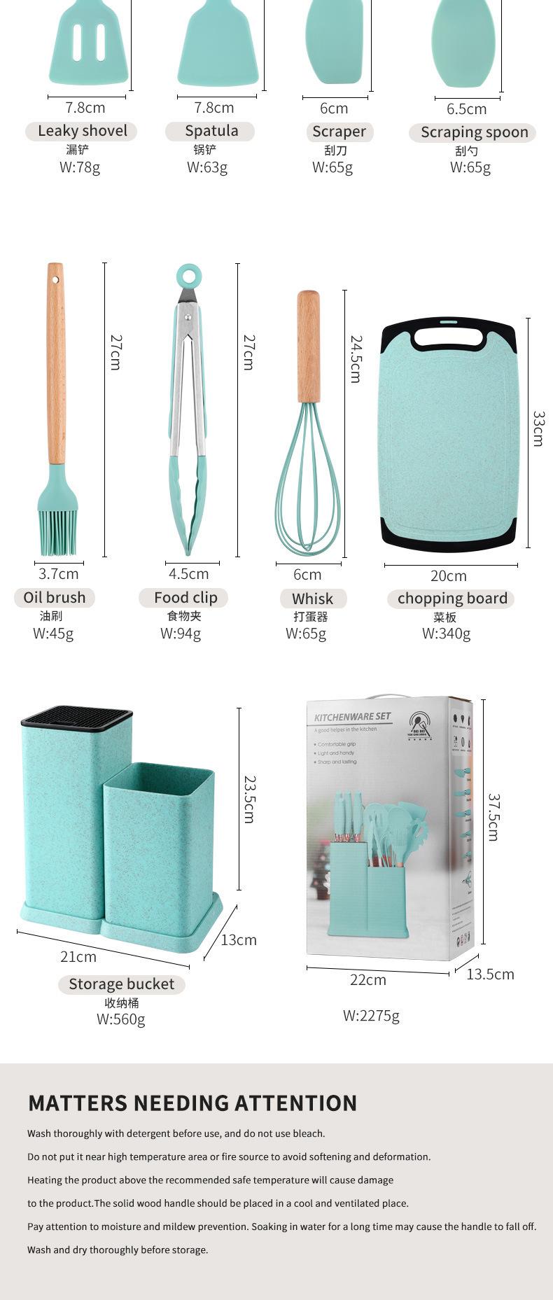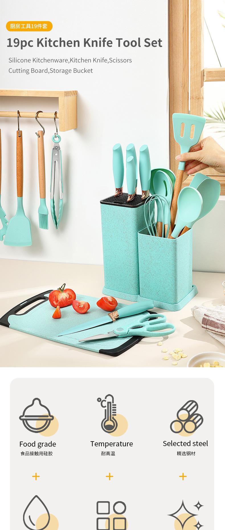 Juego de Utensilios de Cocina de Silicona con Mango de Haya al por Mayor Transfronterizo Juego de 19 Piezas Tabla de Cortar Cubo para Guardar Cuchillos Cocina