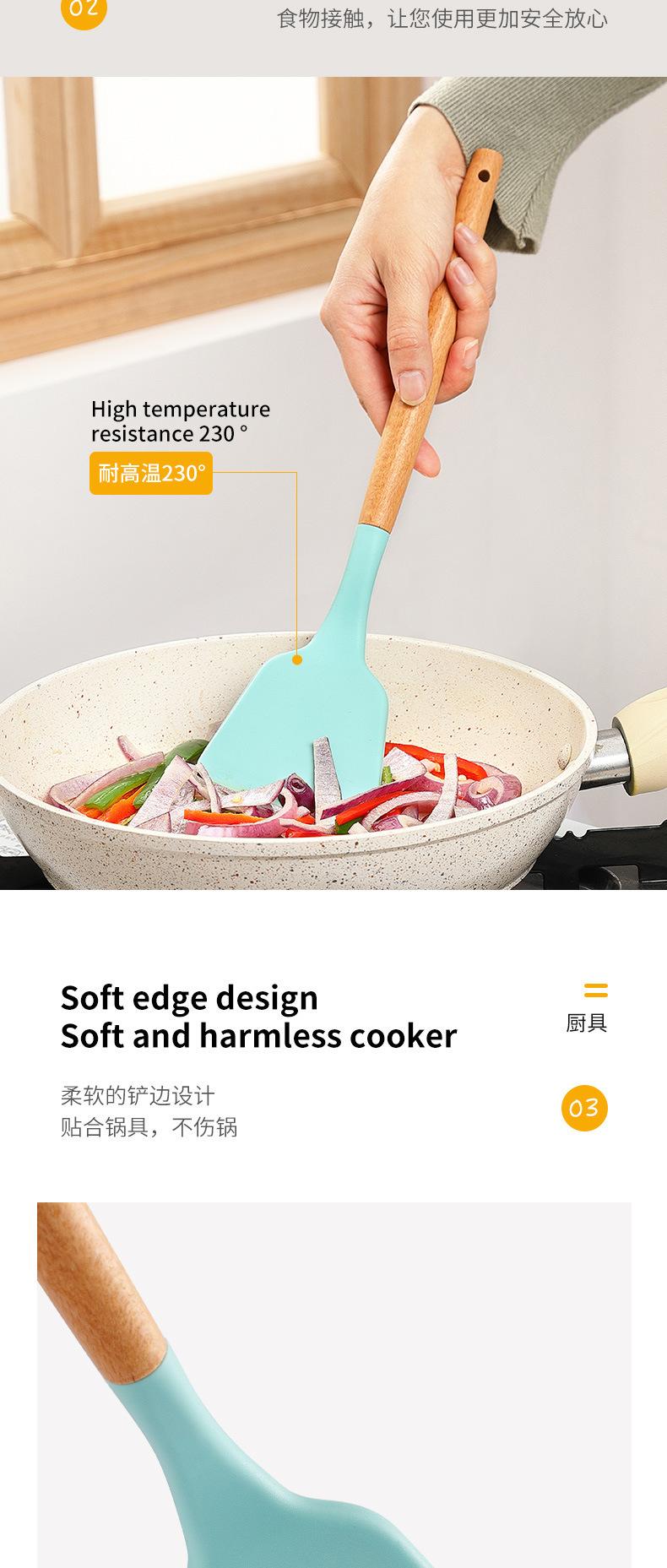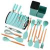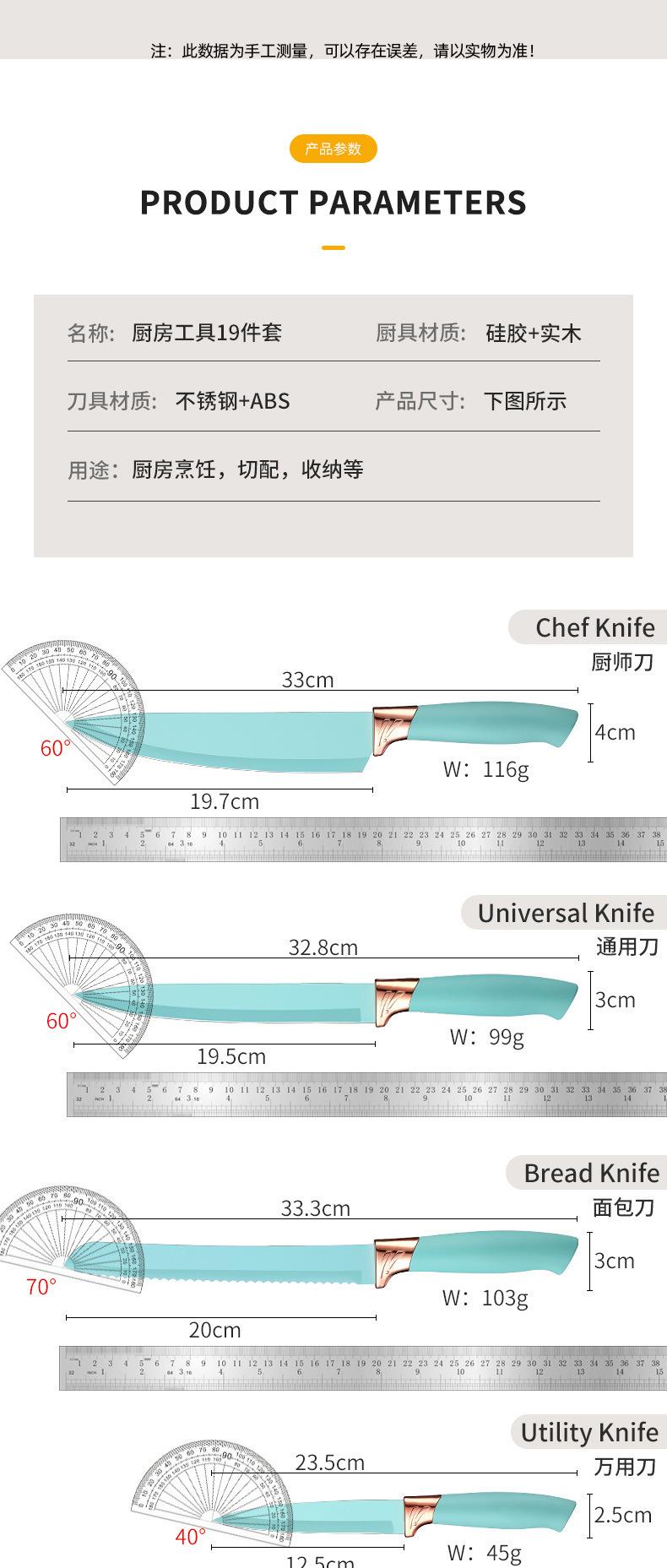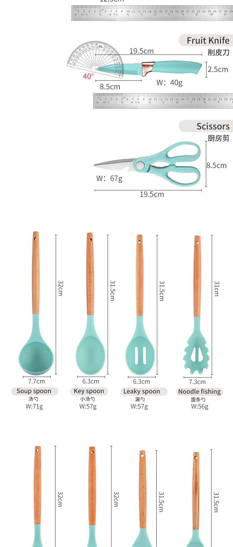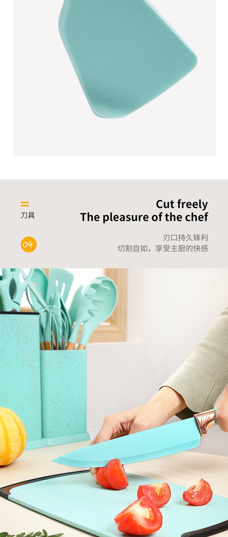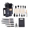 Juego de Utensilios de Cocina de Silicona con Mango de Haya al por Mayor Transfronterizo Juego de 19 Piezas Tabla de Cortar Cubo para Guardar Cuchillos Cocina