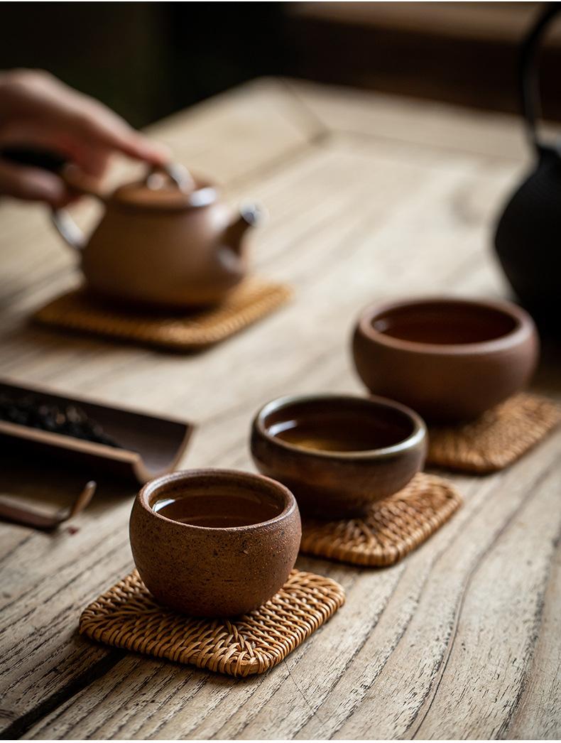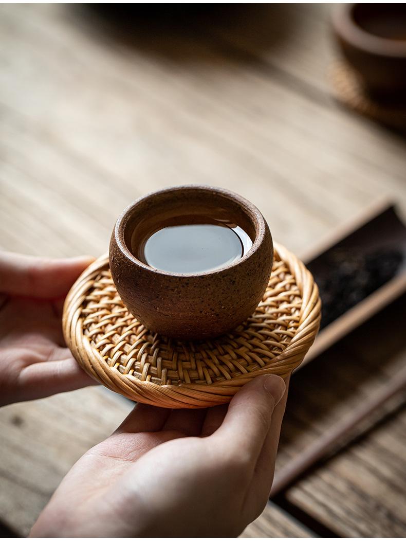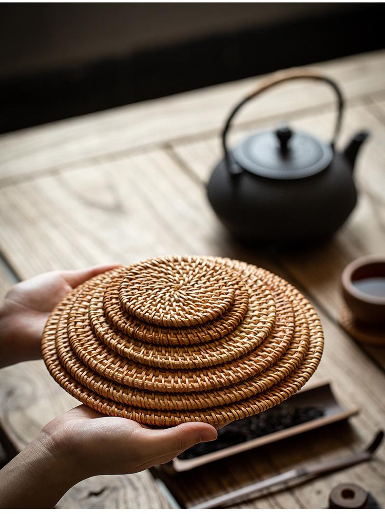 Posavasos de Ratán Alfombrilla para Olla Alfombrilla Aislante de Calor Ceremonia del Té Antideslizante Tejido a Mano Platillo para Té Soporte para Taza Alfombrilla para Plato de Mesa de Comedor Alfombrilla para Olla de Arena