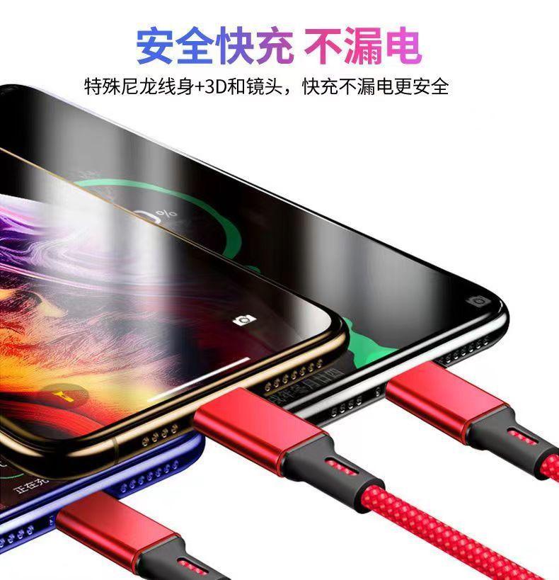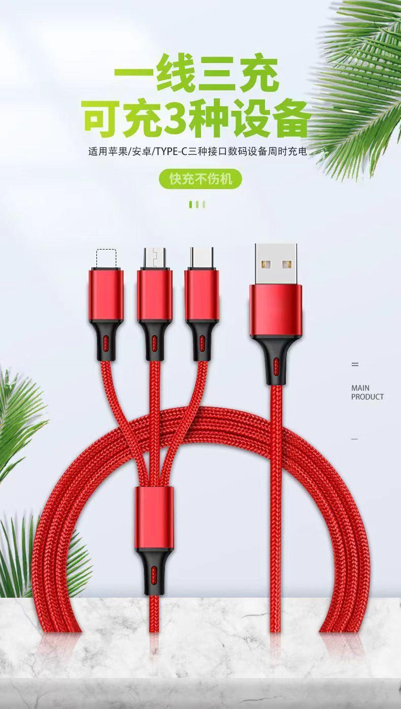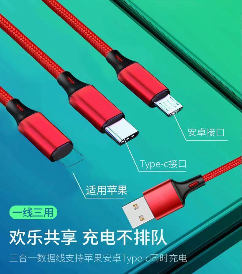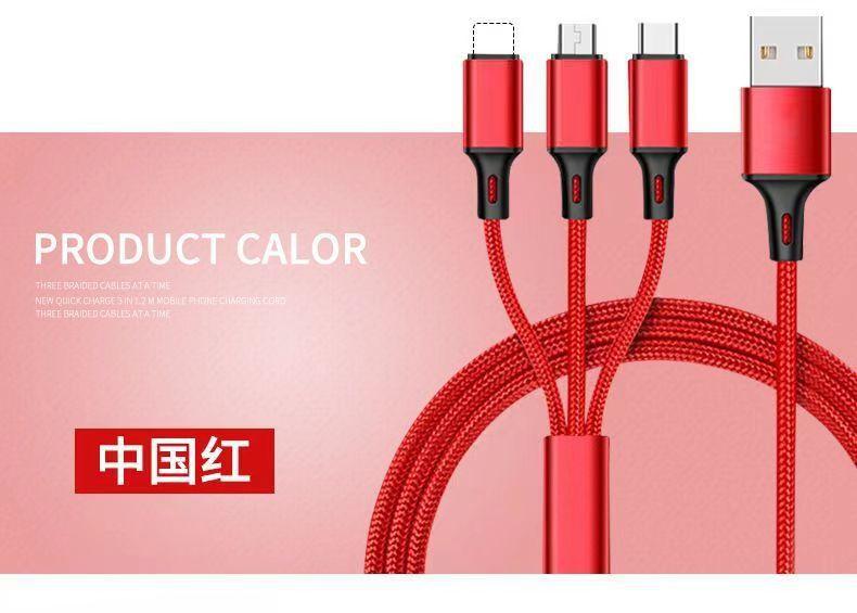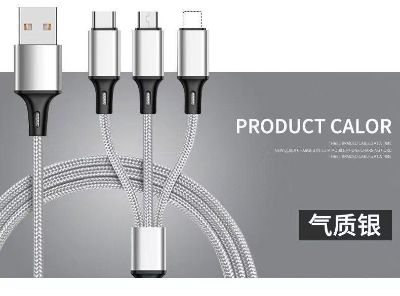 Cable de Datos de Carga para Teléfono Móvil Tres en Uno Adecuado para Apple Tipo-C Android Trenzado de Nailon Cable de Datos Uno a Tres