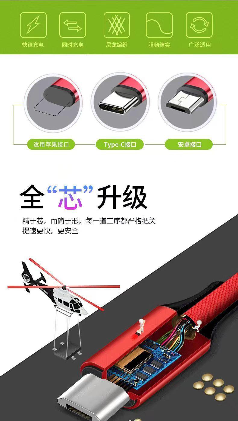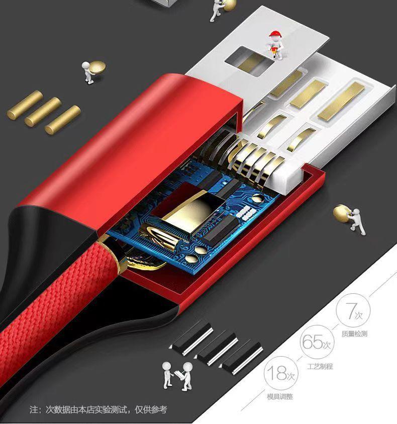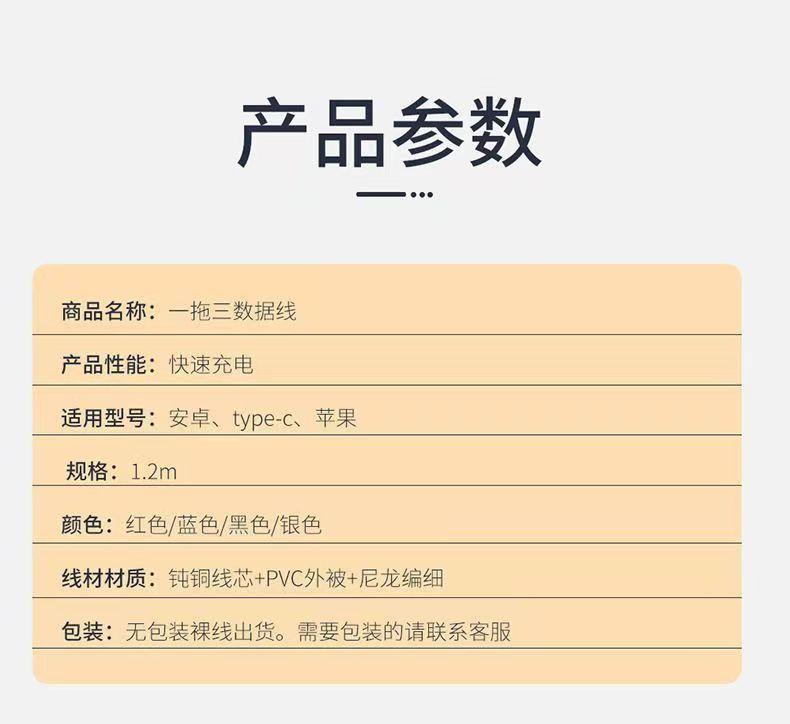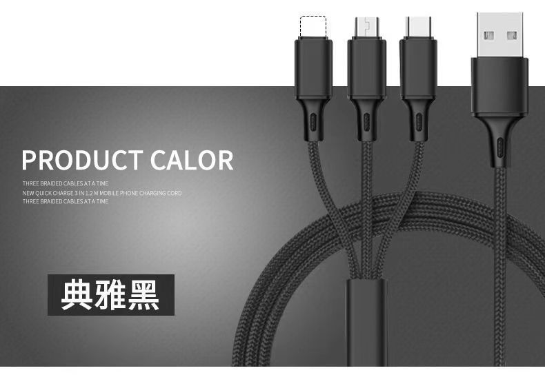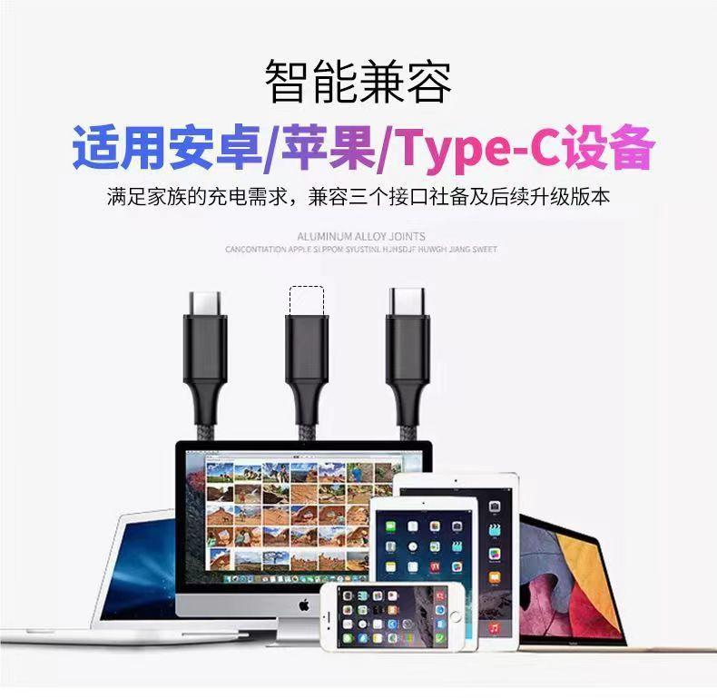 Cable de Datos de Carga para Teléfono Móvil Tres en Uno Adecuado para Apple Tipo-C Android Trenzado de Nailon Cable de Datos Uno a Tres