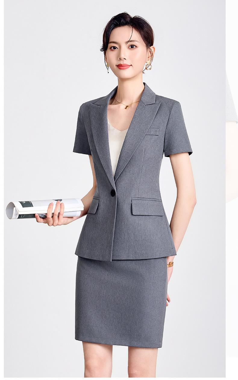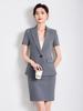 Gris Profesional Verano Manga Corta Chaqueta Cuello Traje Pequeño Pantalón Falda Verano 2025 Nuevo Traje de Tres Piezas