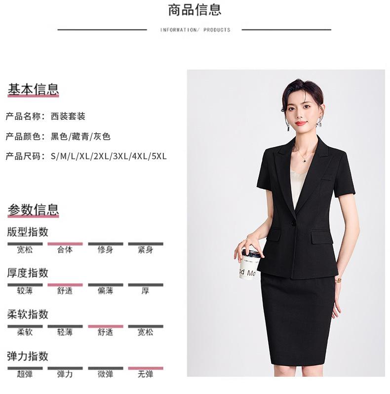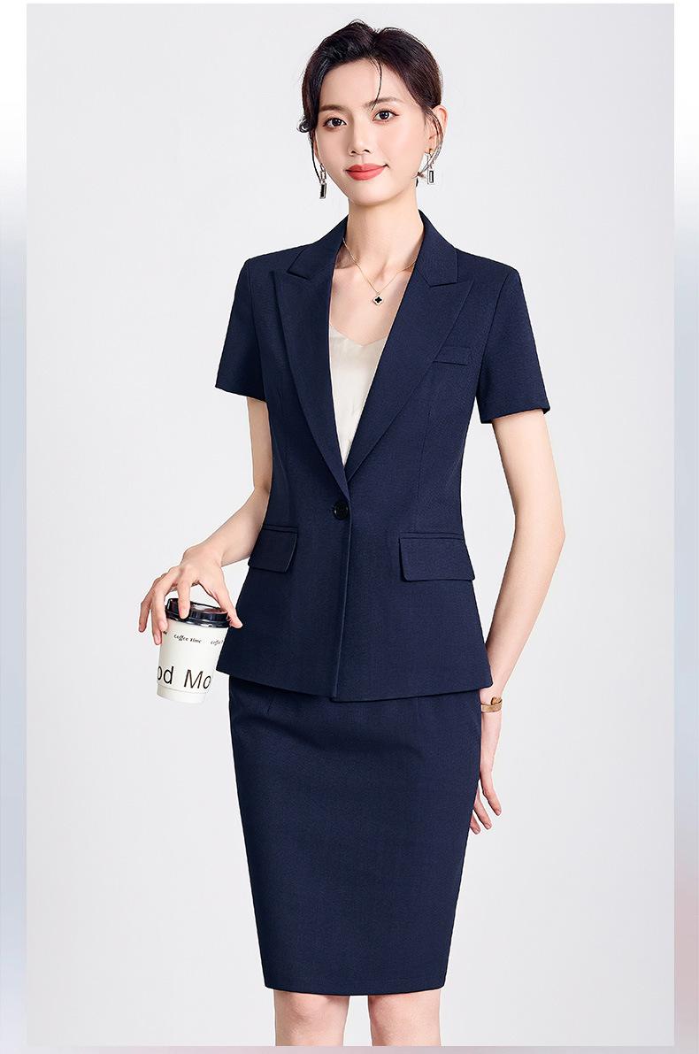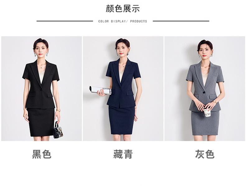 Gray one-piece suit, Black one piece suit, Navy blue one-piece suit, Gray suit + skirt, Black suit + skirt, Na...