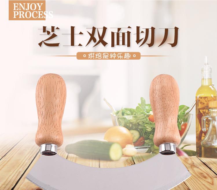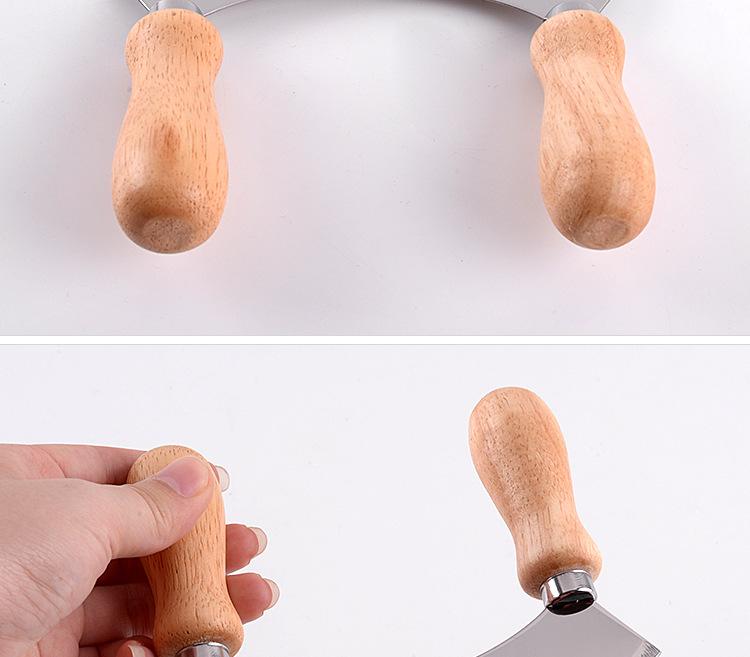 Cortador de queso de doble cara con mango de madera multifuncional, cortador de vainilla de doble mango, cuchillo para placa de hornear, utensilio de cocina al por mayor