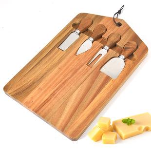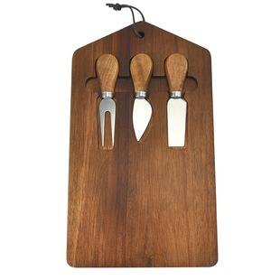 Ventas directas de fábrica tabla de cortar de madera de acacia para el hogar juego combinado de tabla para bistec y queso de madera maciza con cuchillo venta al por mayor al contado
