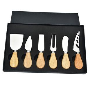 Juego de 6 piezas de cuchillos para queso con mango de madera de acacia de acero inoxidable Cuchillo para queso y mantequilla Herramienta para hornear Juego de caja de regalo Venta al por mayor por lote