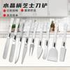 Juego de cuatro piezas de cuchillo y tenedor para queso de acero inoxidable con mango de madera, herramientas para hornear, pala para pizza y pastel, cuchillo para queso y mantequilla, venta directa al contado