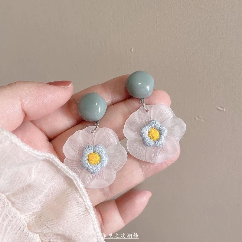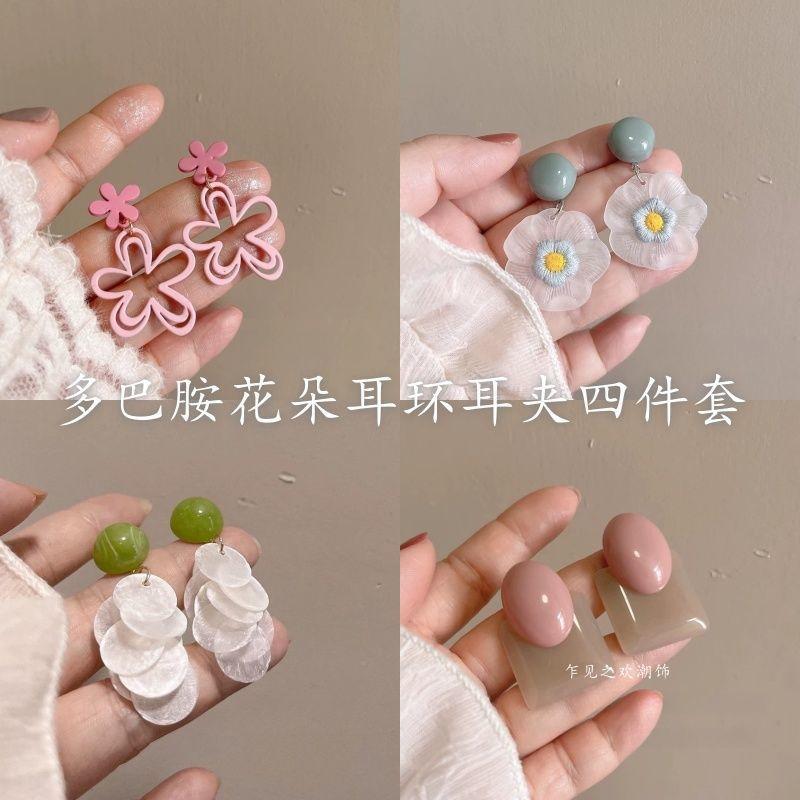 Aretes Dopamina Flor Trenzada para Mujer Nuevos Verano Vacaciones Clip para la Oreja Moda Exagerados de Alta Gama Aretes para la Playa Mujer