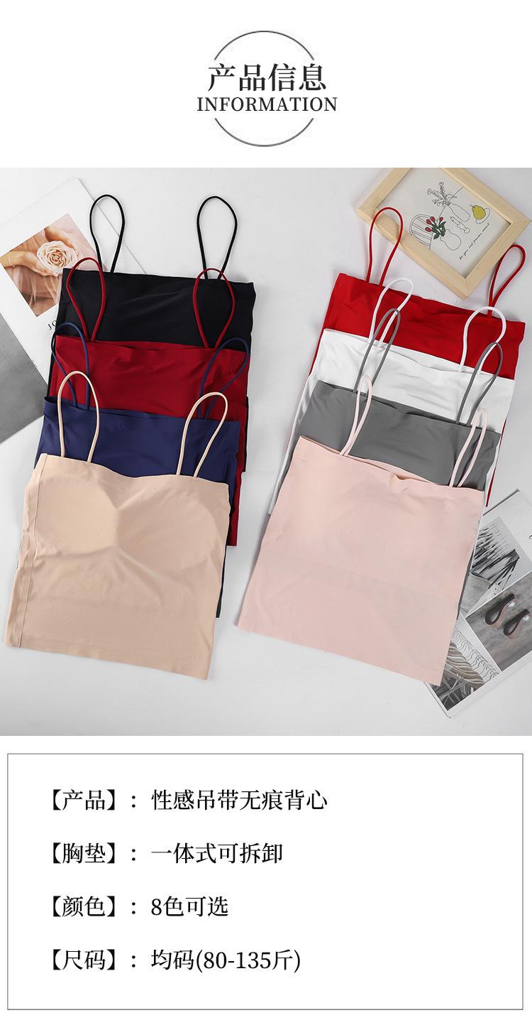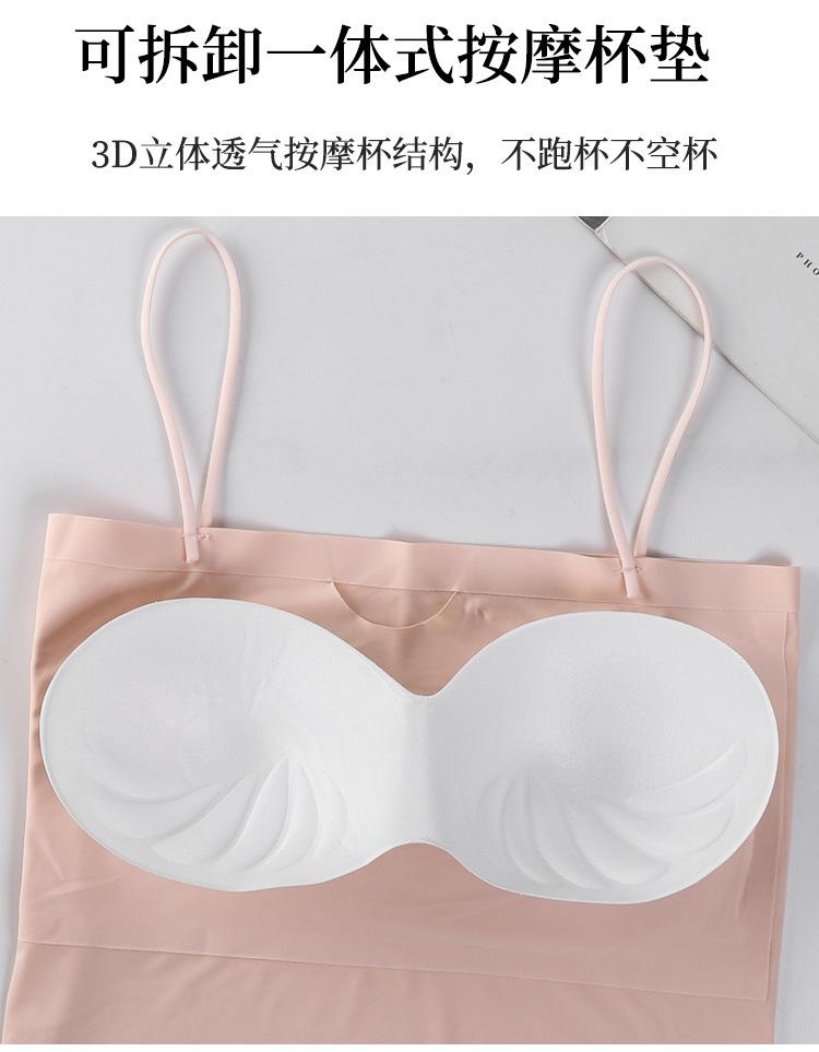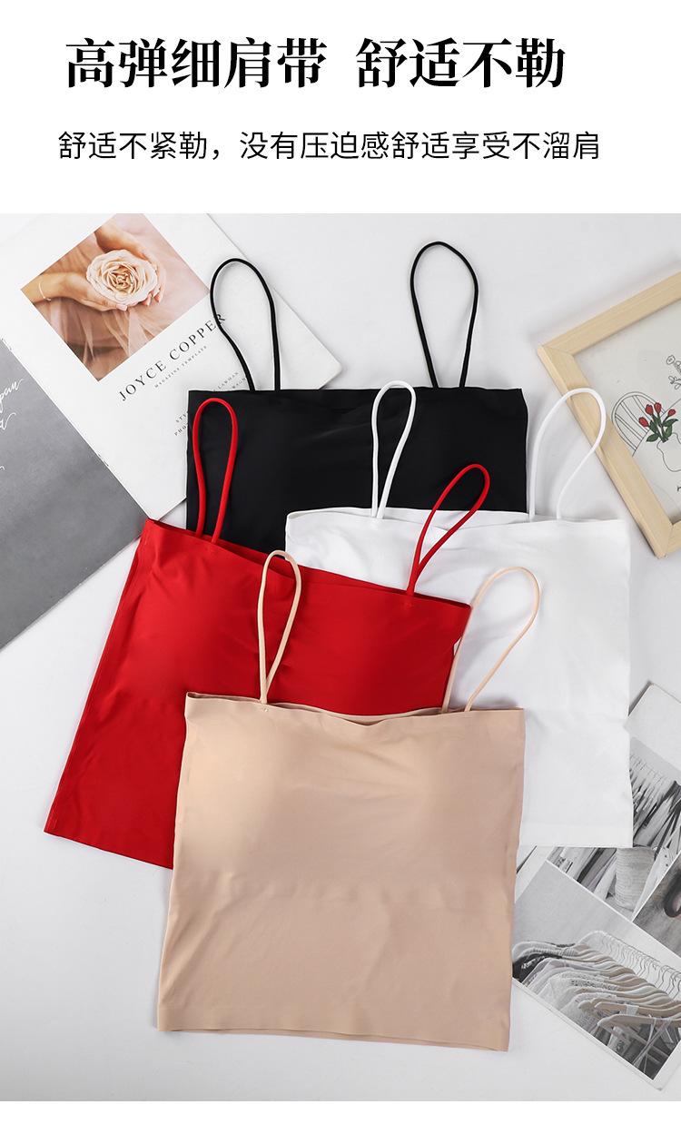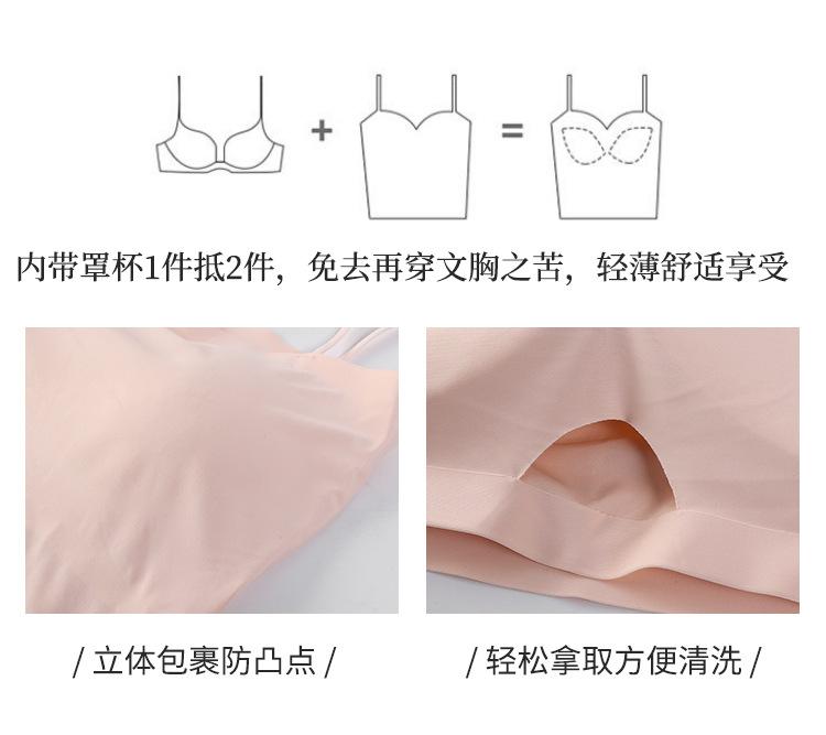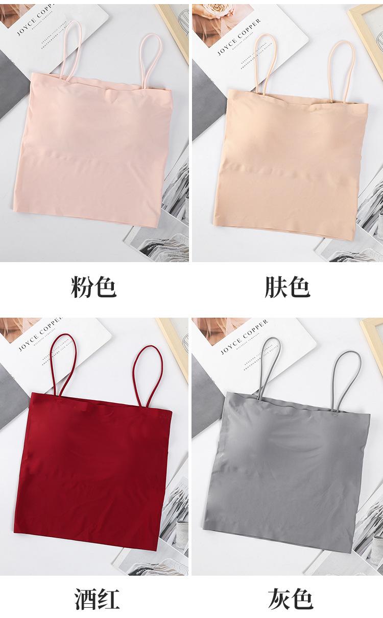 Chaleco de Verano de Seda de Hielo Sin Costuras de Espalda Hermosa con Tirantes para Mujer con Copas para el Busto, Tipo Top de Tubo de Una Pieza, Íntimos