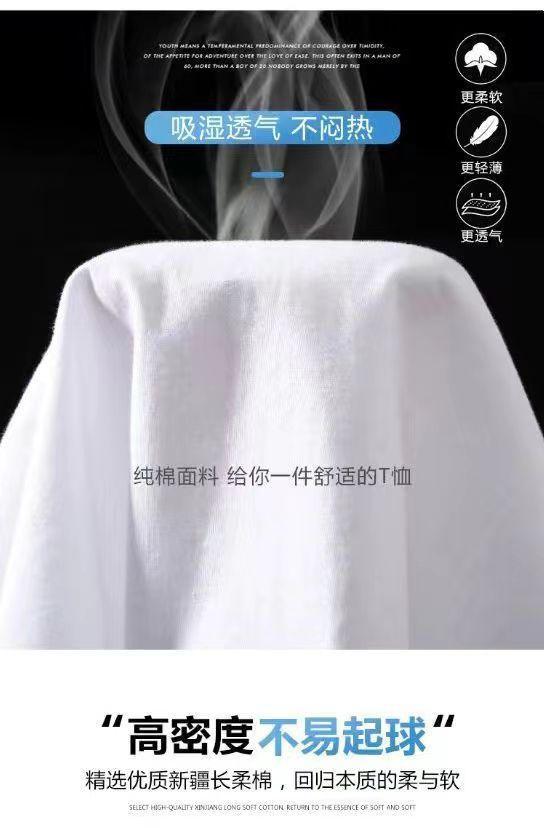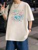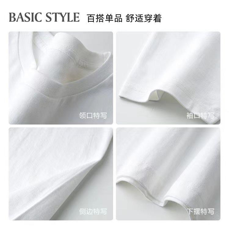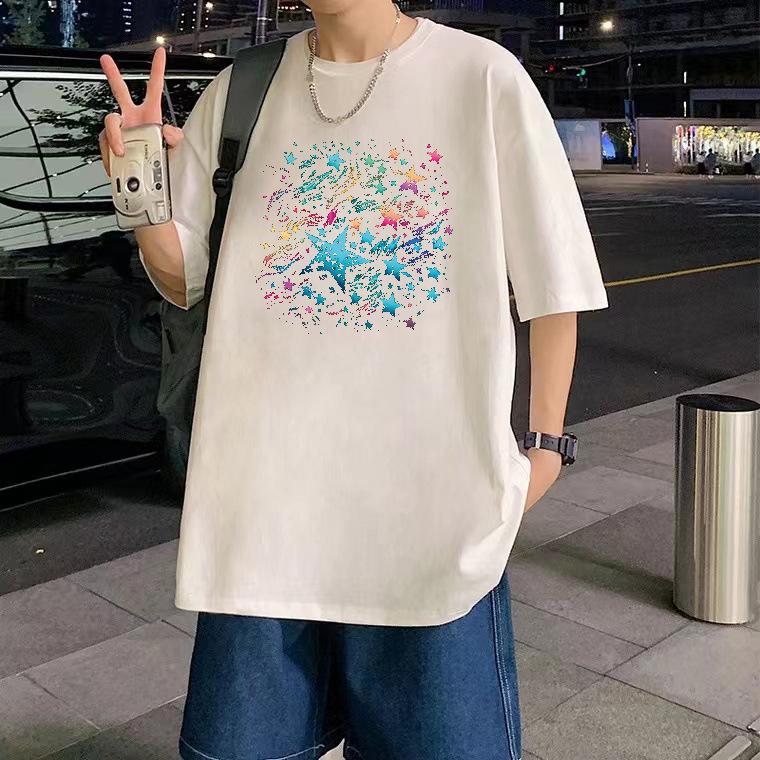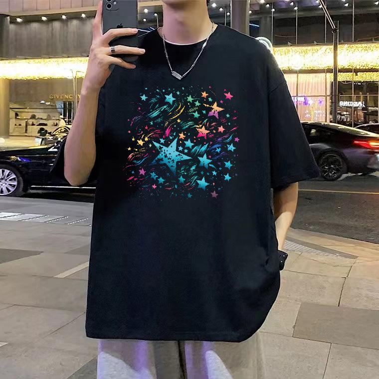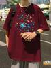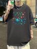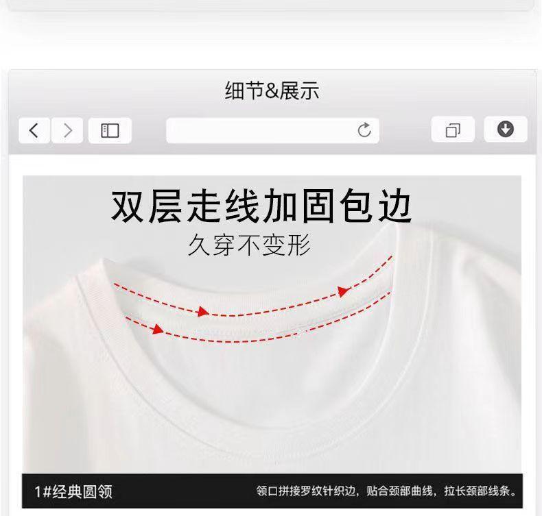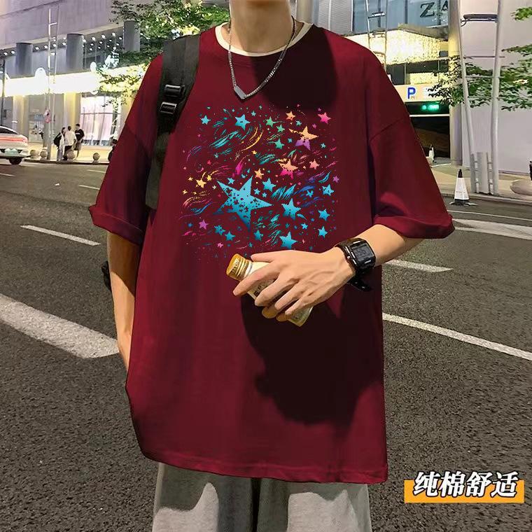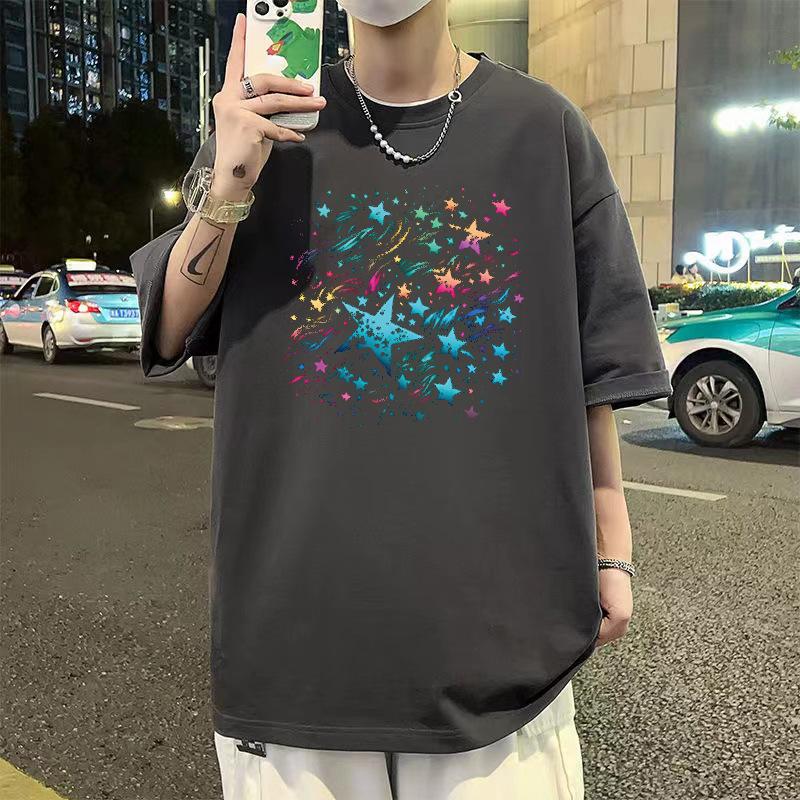 Playera Retro de Algodón Puro de Alta Calidad con Cuello Redondo para Hombre y Mujer Pareja Mismo Hombro Estampada Suelta Manga Corta Casual Media Manga