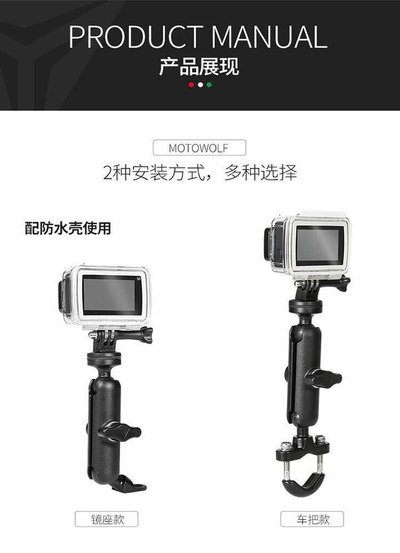 Soporte para grabadora de conducción de motocicleta/bicicleta, marco de giro/inclinación, accesorios multifuncionales fijos para cámara deportiva de aleación de aluminio