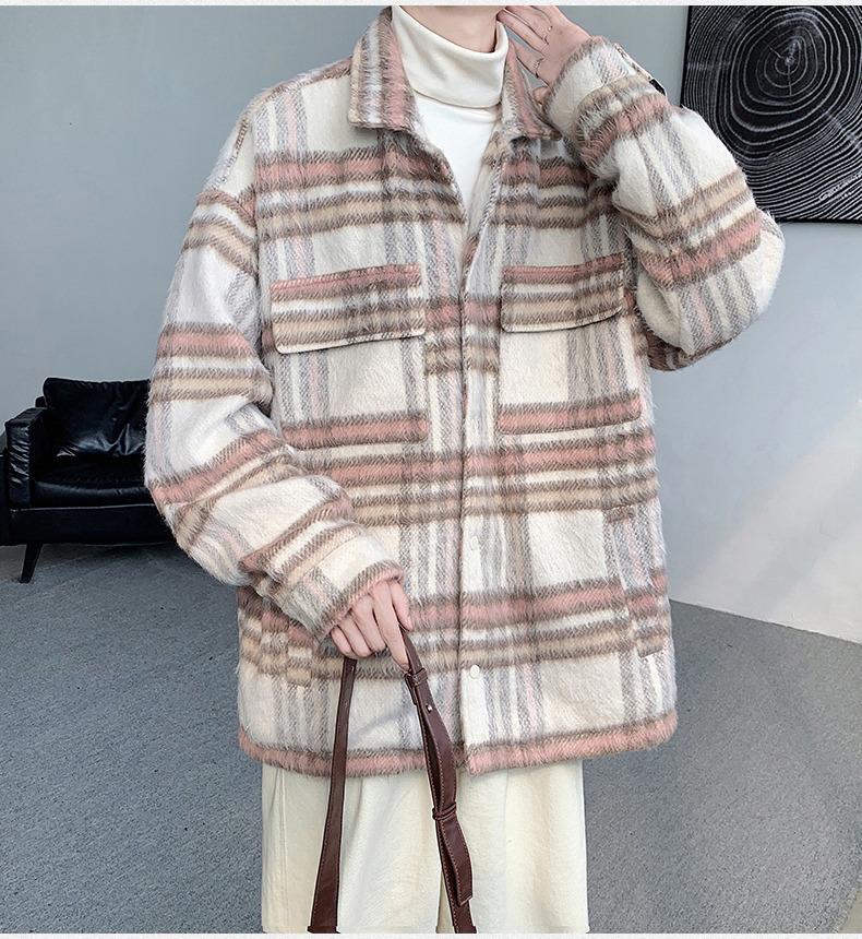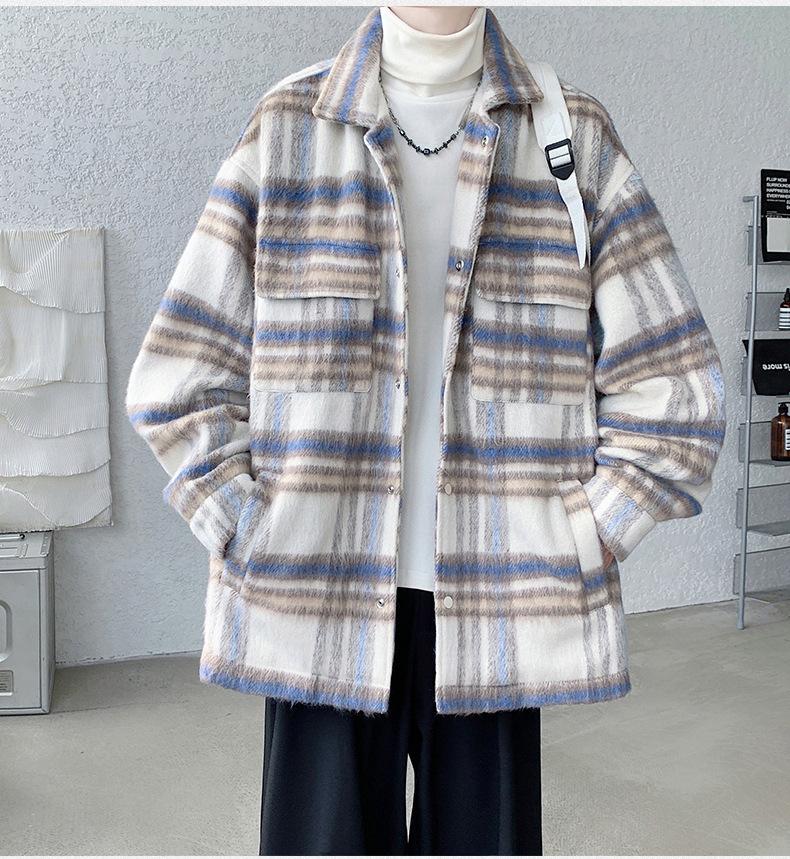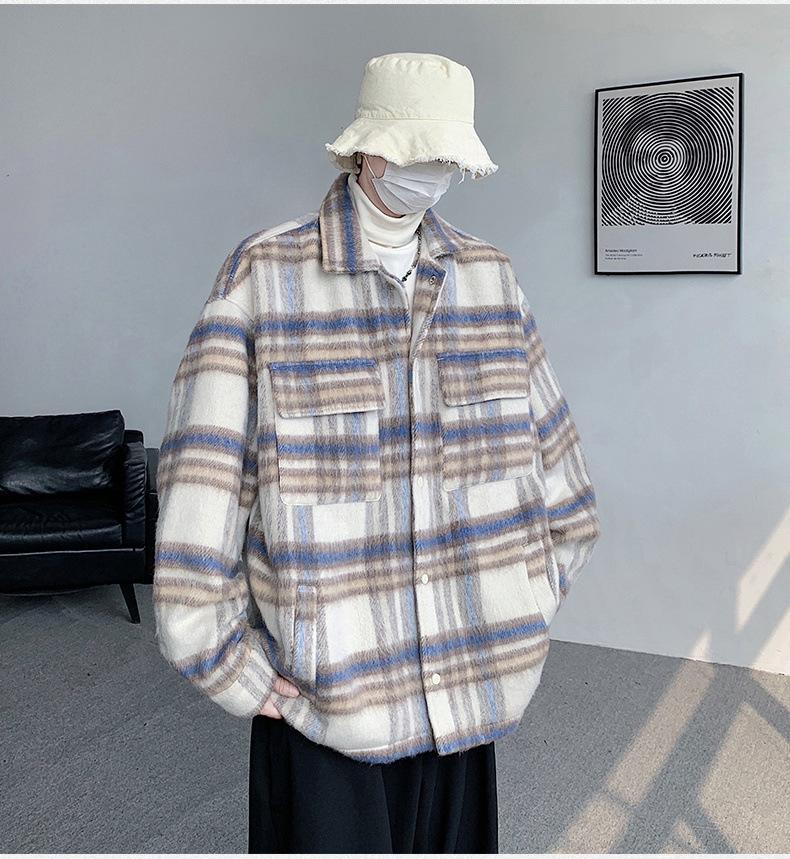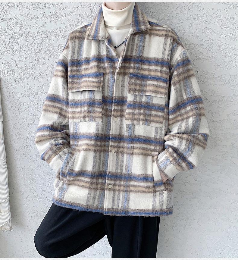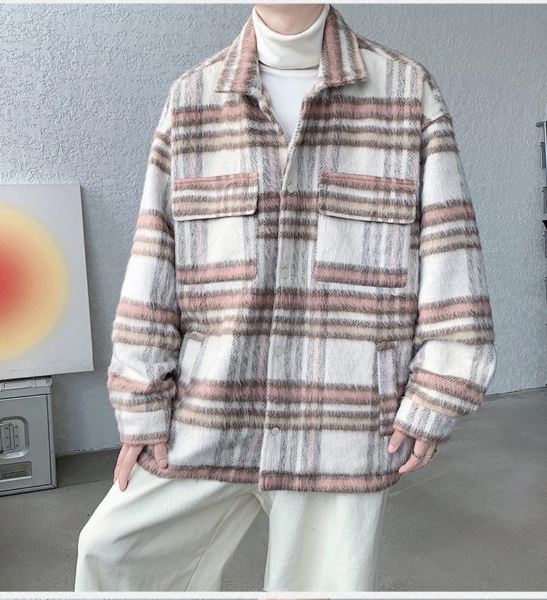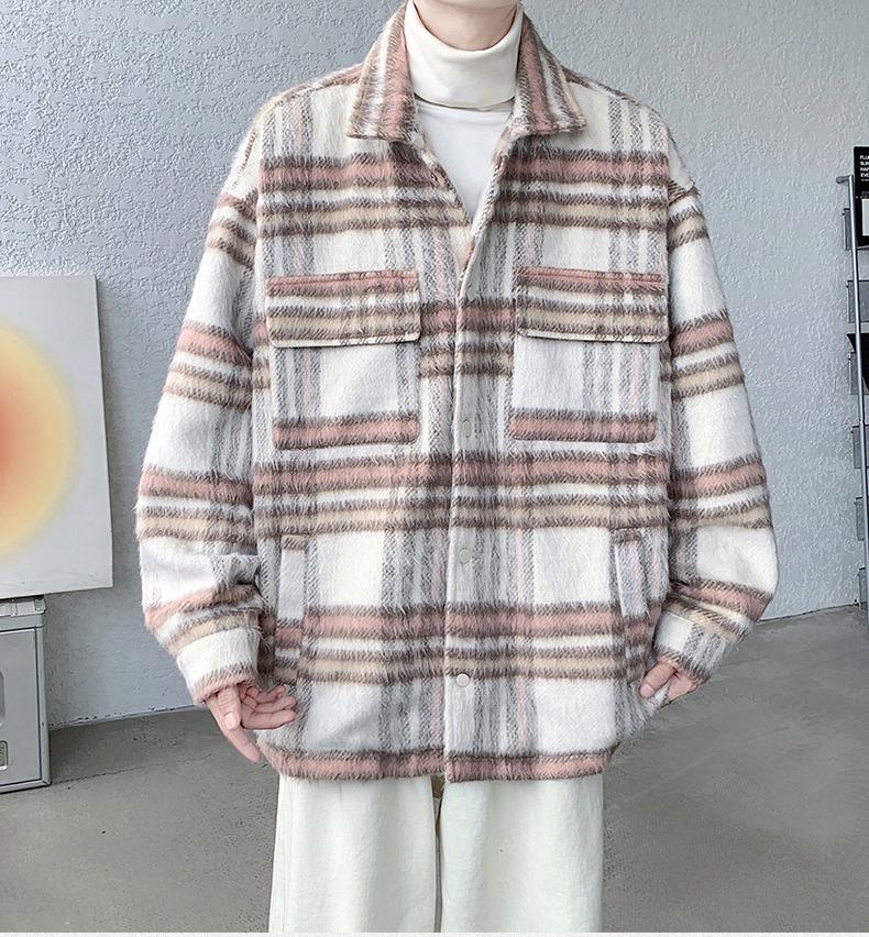 Khaki plaid, Dark blue plaid, Peach apricot plaid, Light blue plaid