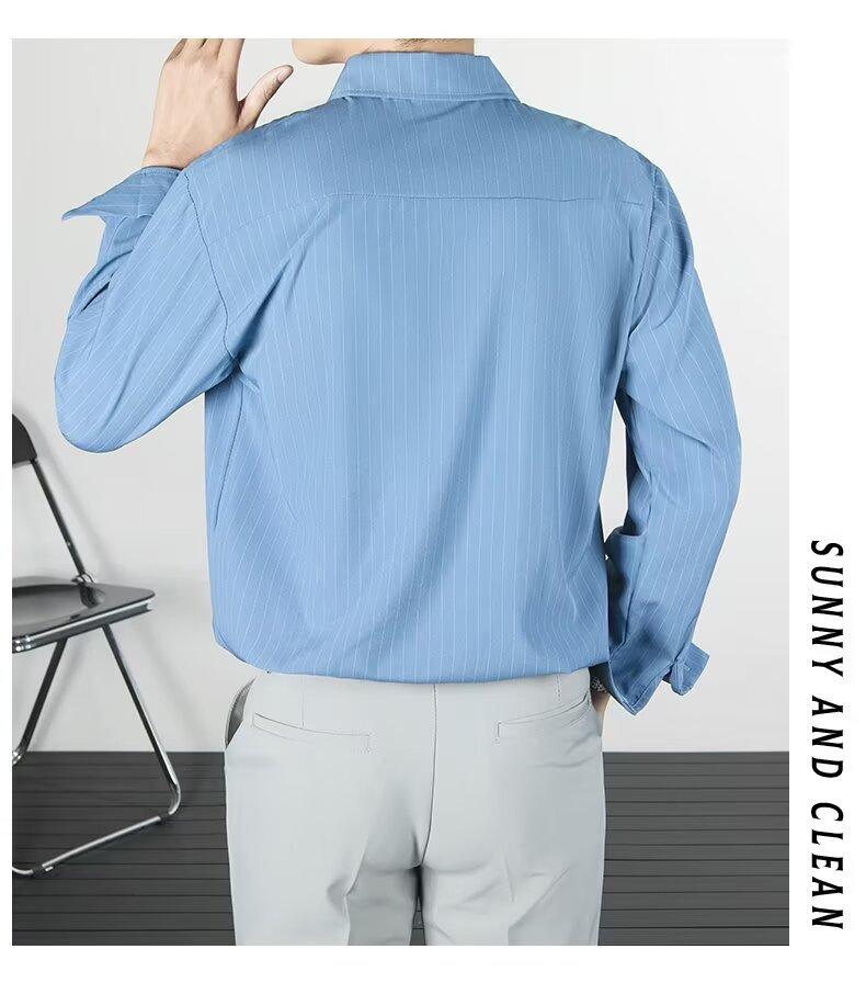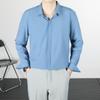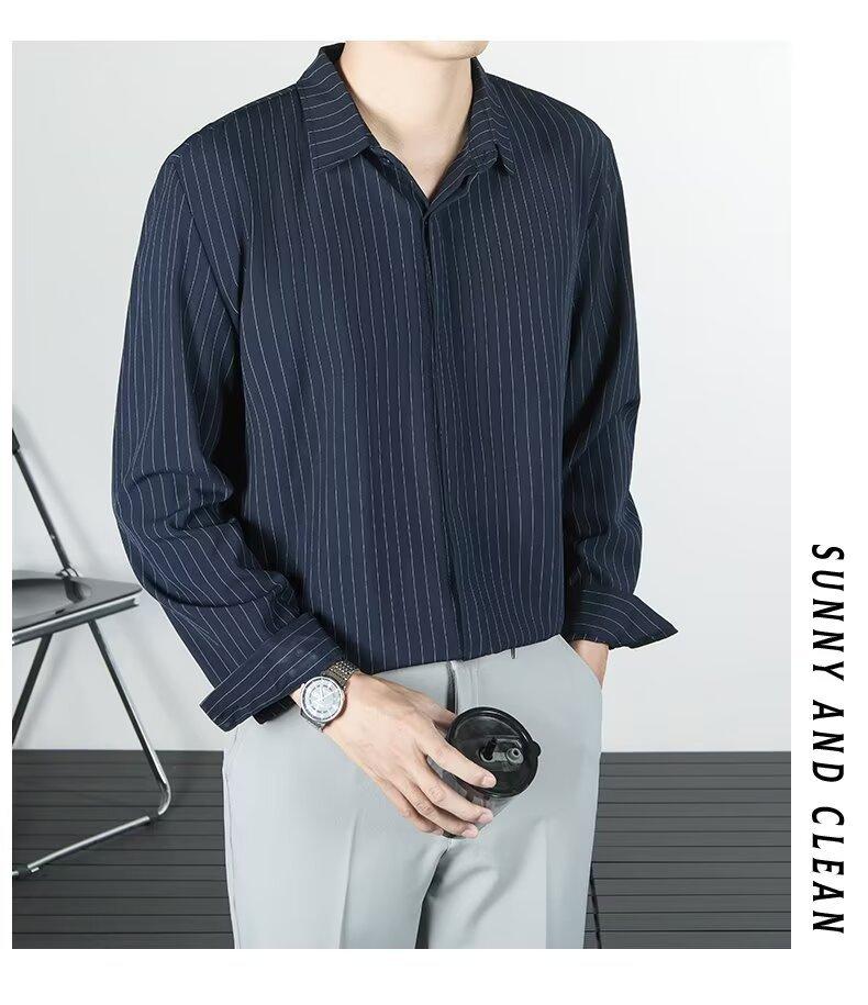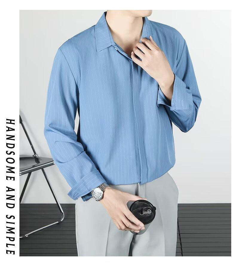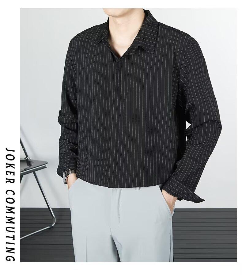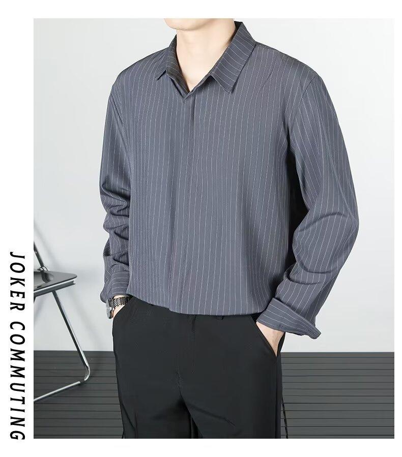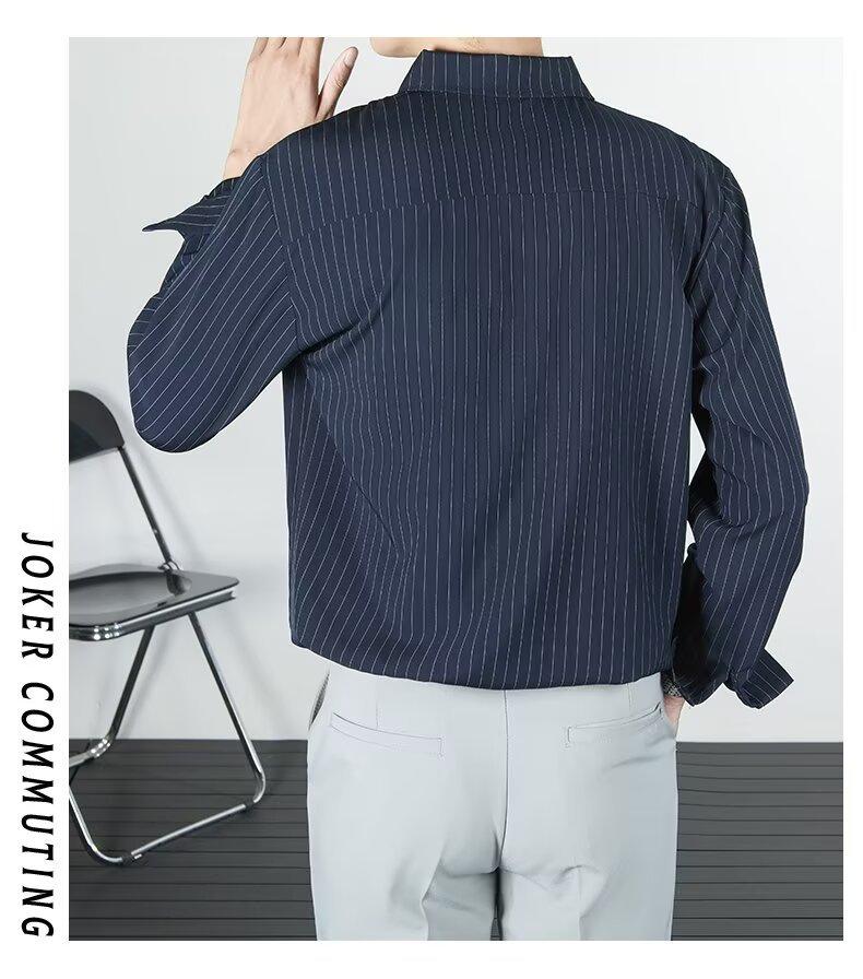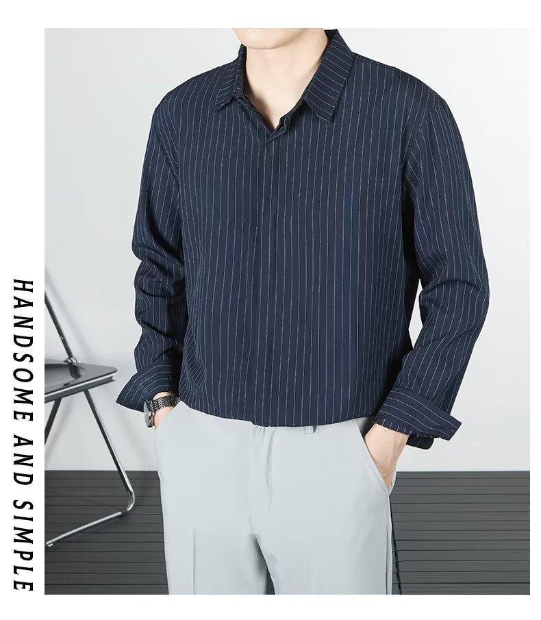 Cuello de camisa Polo de manga larga para hombre Casual Ligero Maduro Verano Camiseta de manga larga Sensación de alta gama Ropa a rayas Cárdigan Verano