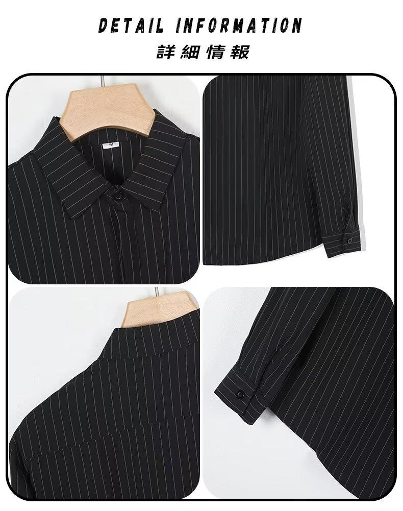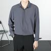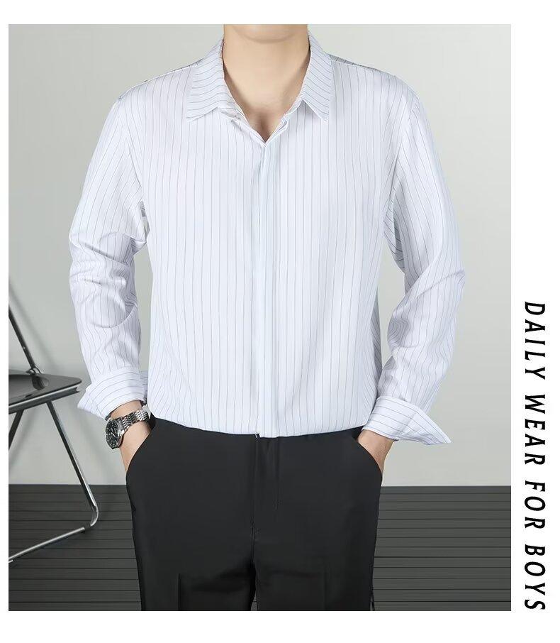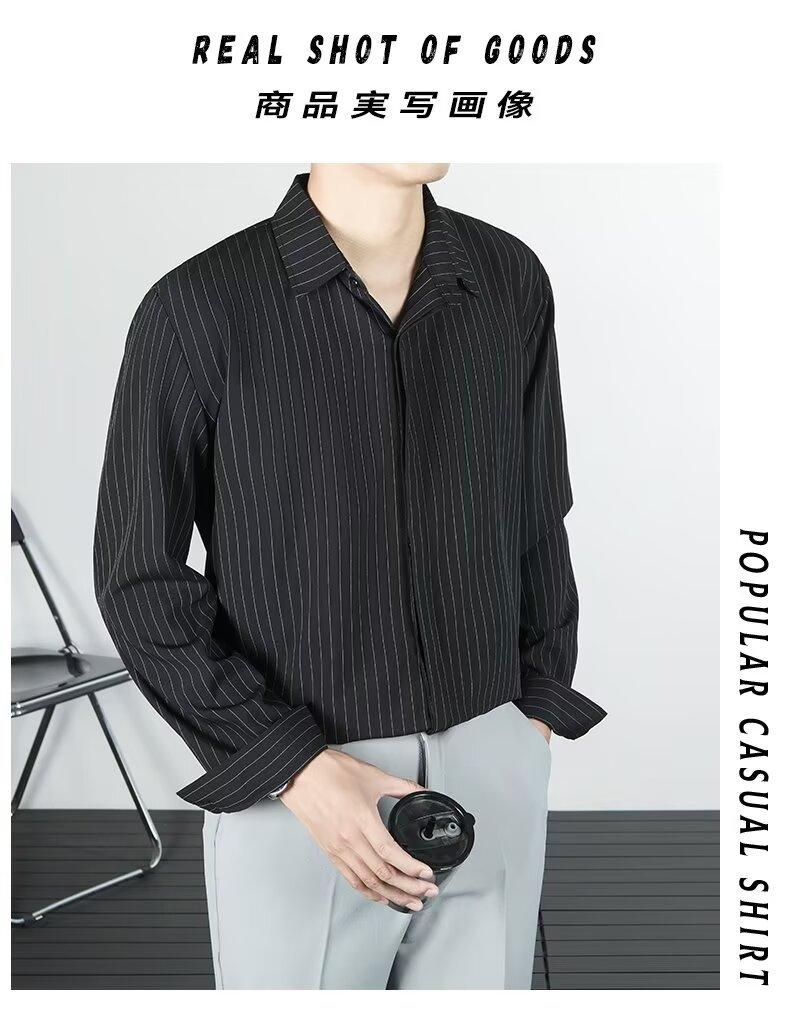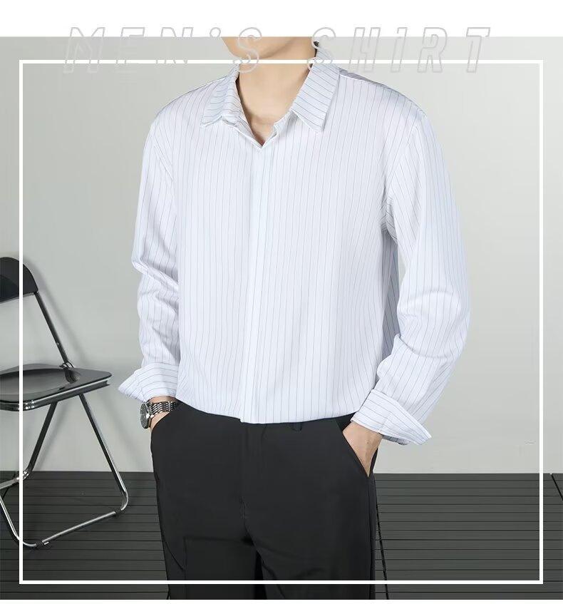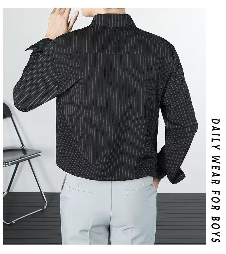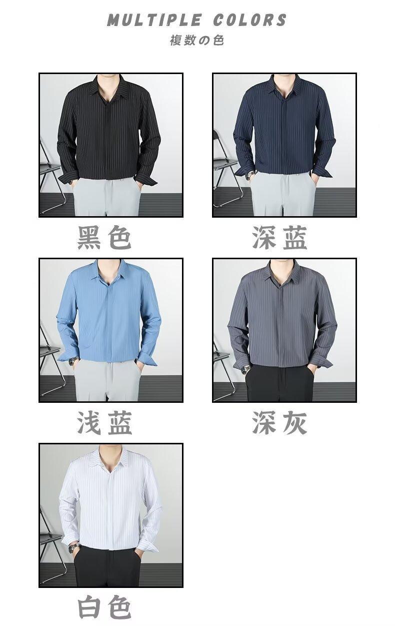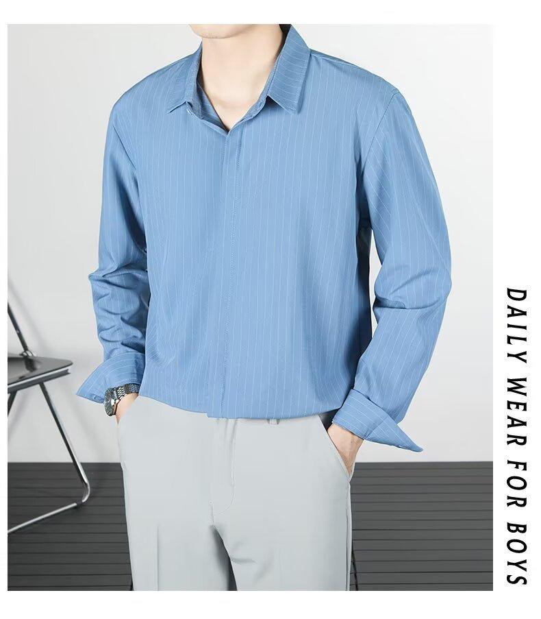 Cuello de camisa Polo de manga larga para hombre Casual Ligero Maduro Verano Camiseta de manga larga Sensación de alta gama Ropa a rayas Cárdigan Verano