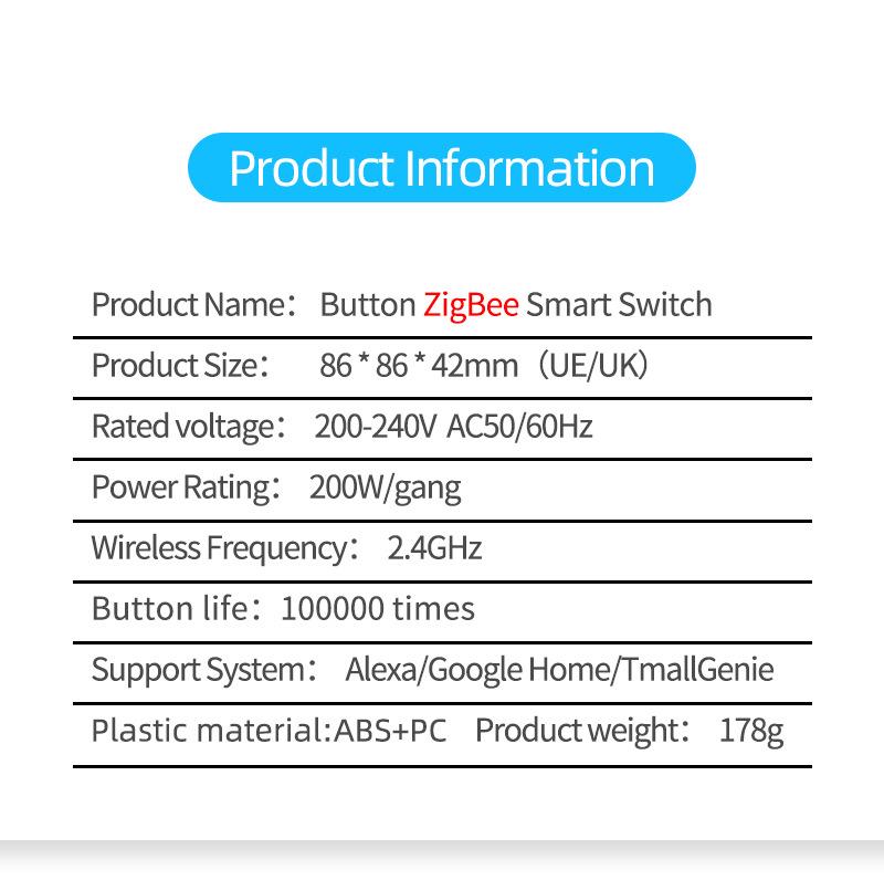 Tuya Alex Estándar Europeo Estándar Británico Zigbee Google Audio Control Remoto por Voz 10A Control Temporizado Botón Inteligente Apertura