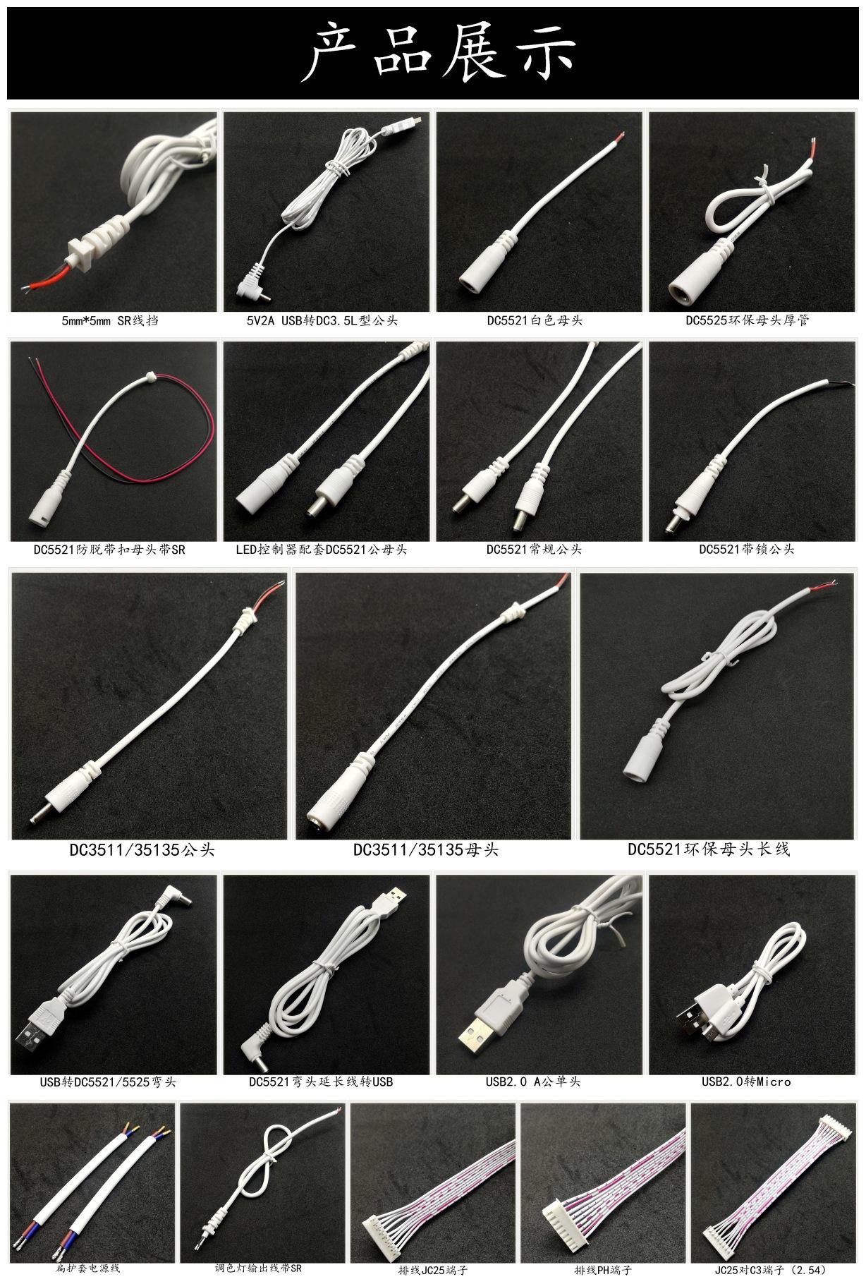 Cable de alimentación luminoso transparente con línea CC, luces publicitarias, cable de alimentación de neón, cabeza hembra DC5521, cable de alimentación Wenda