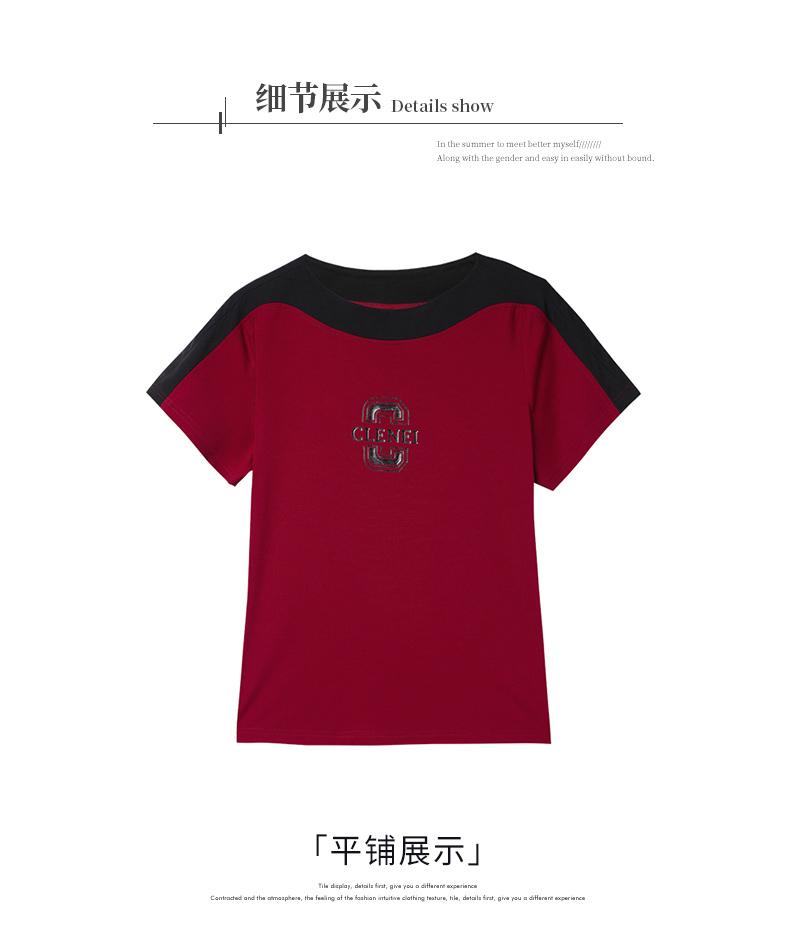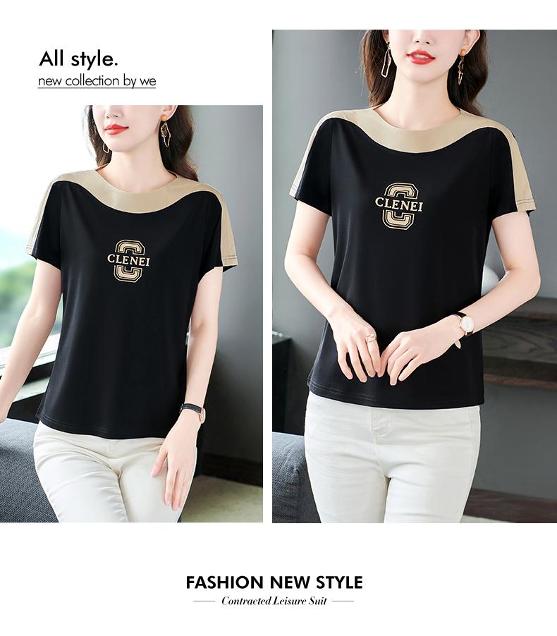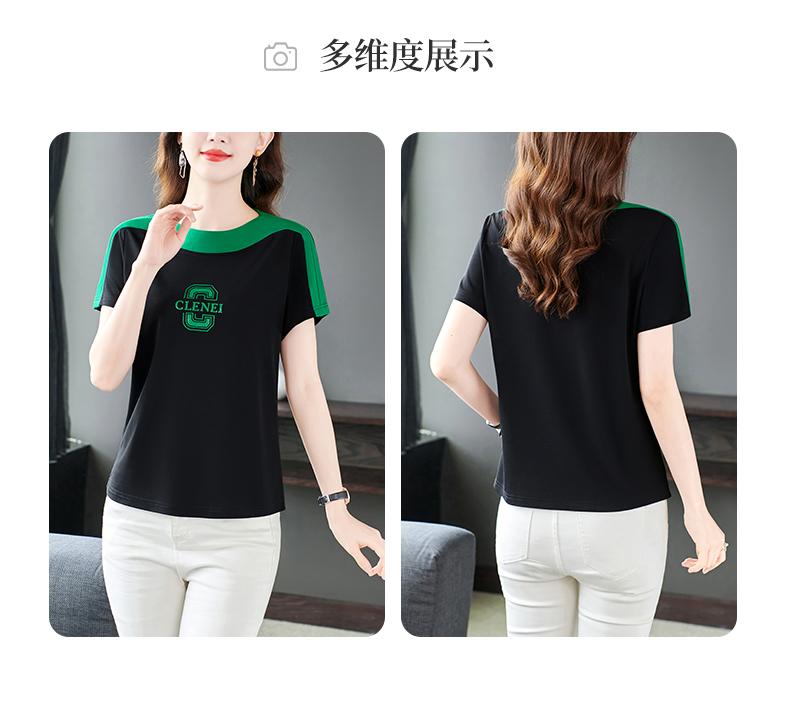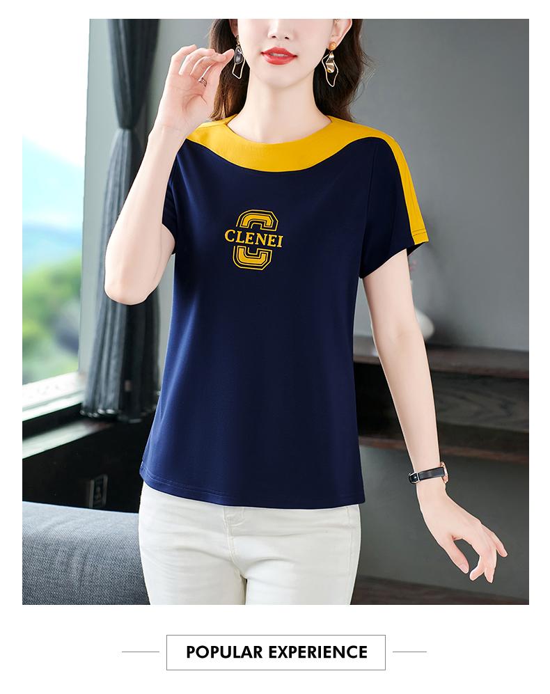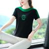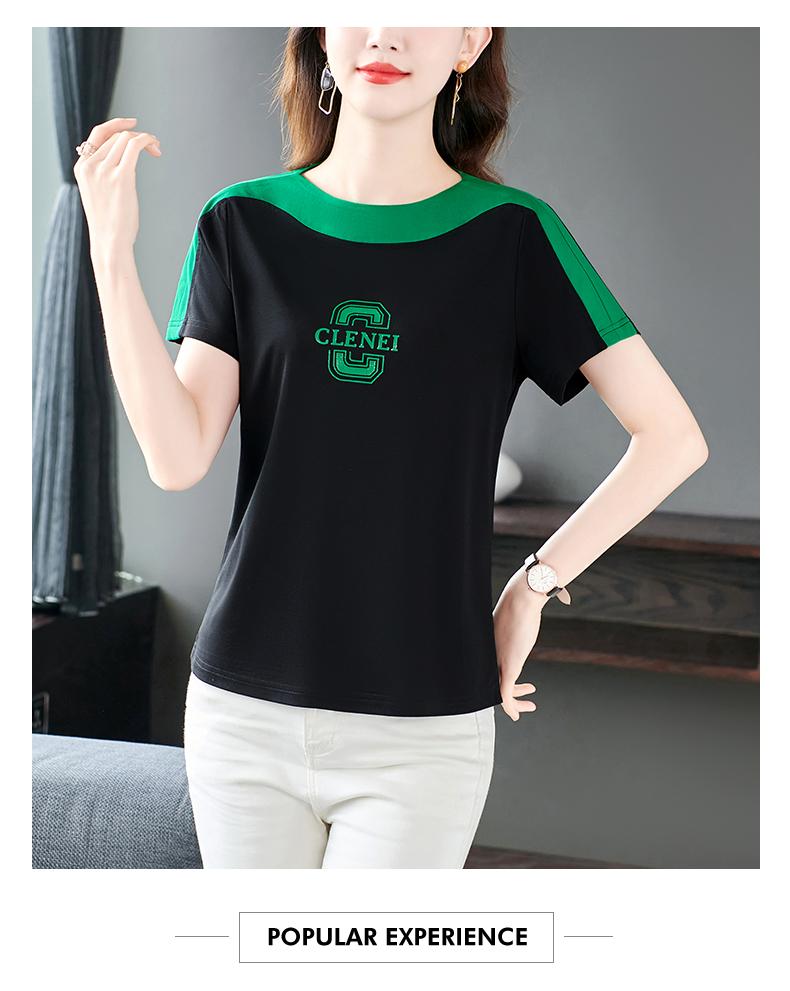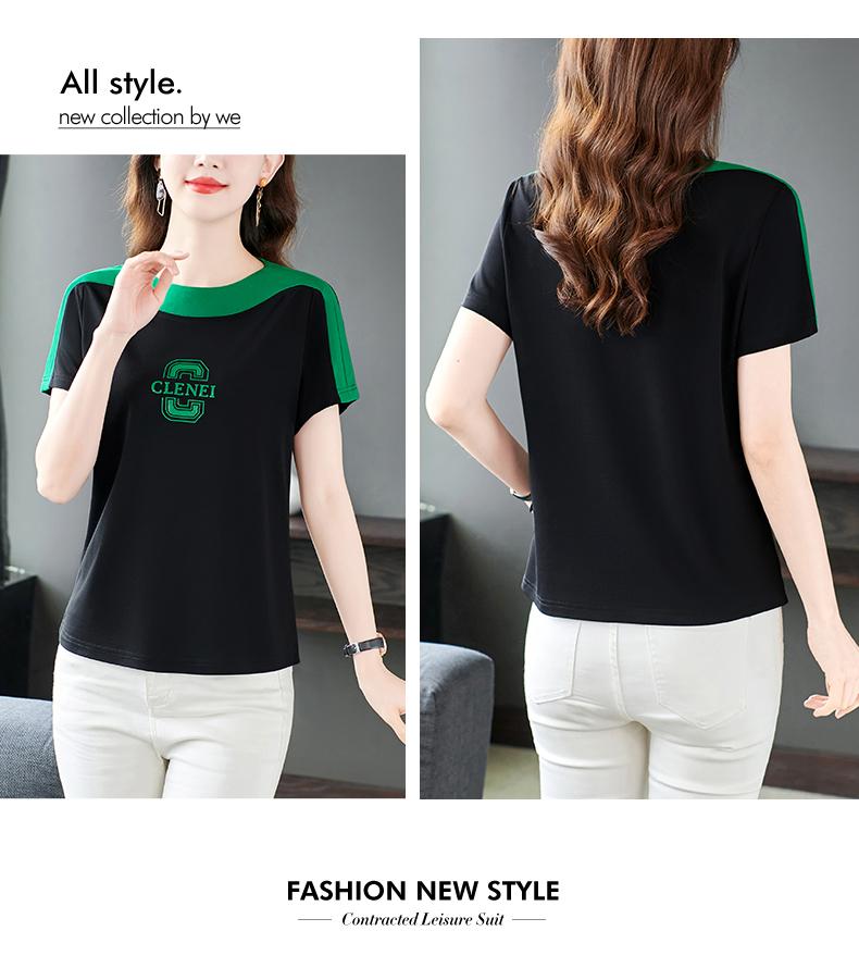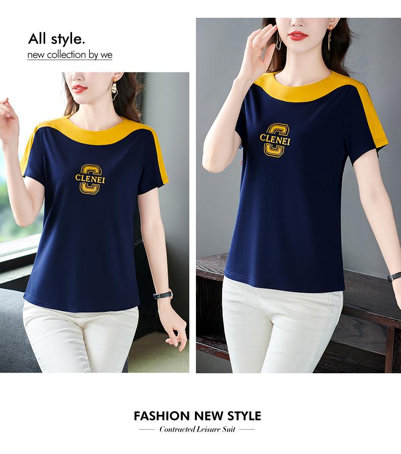 Costuras en Color de Contraste Manga Corta Mujer 2023 Nuevo Verano Suelto Moda Coreana Camiseta Casual Talla Grande Top Camiseta