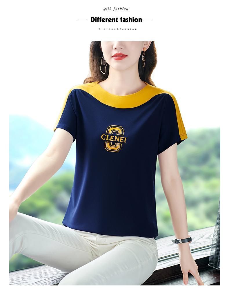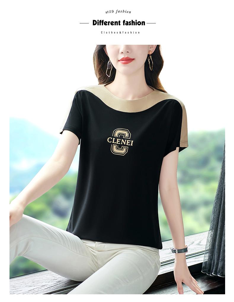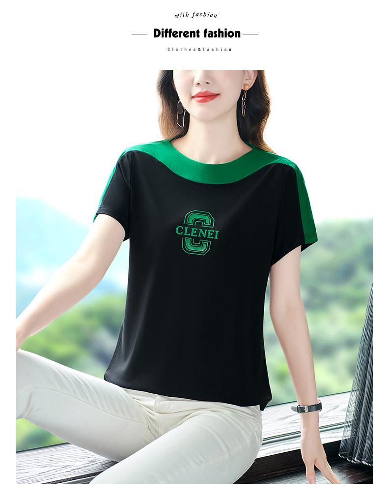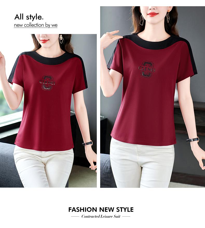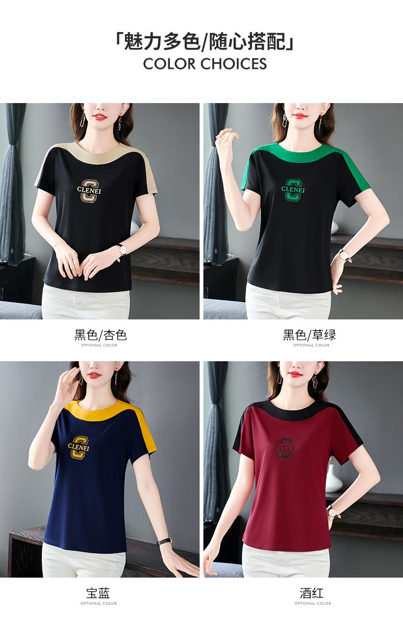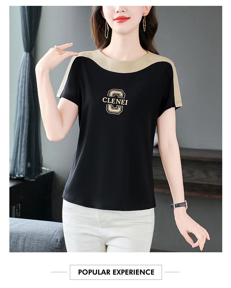 Costuras en Color de Contraste Manga Corta Mujer 2023 Nuevo Verano Suelto Moda Coreana Camiseta Casual Talla Grande Top Camiseta