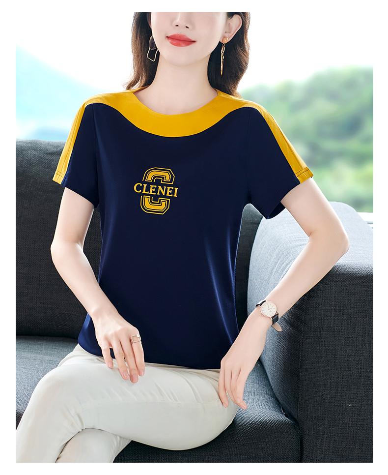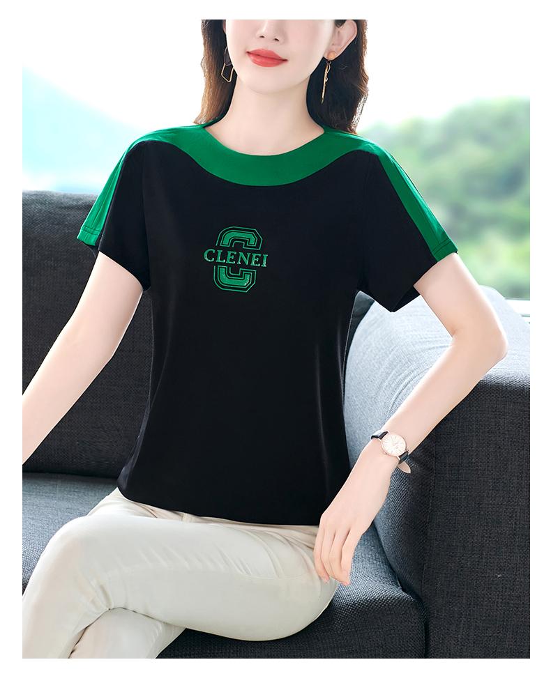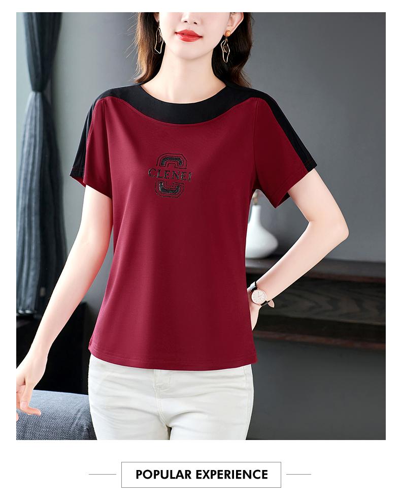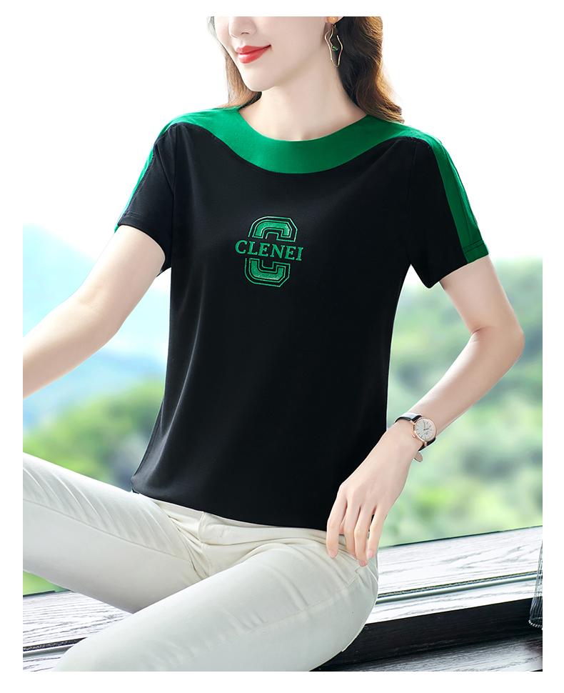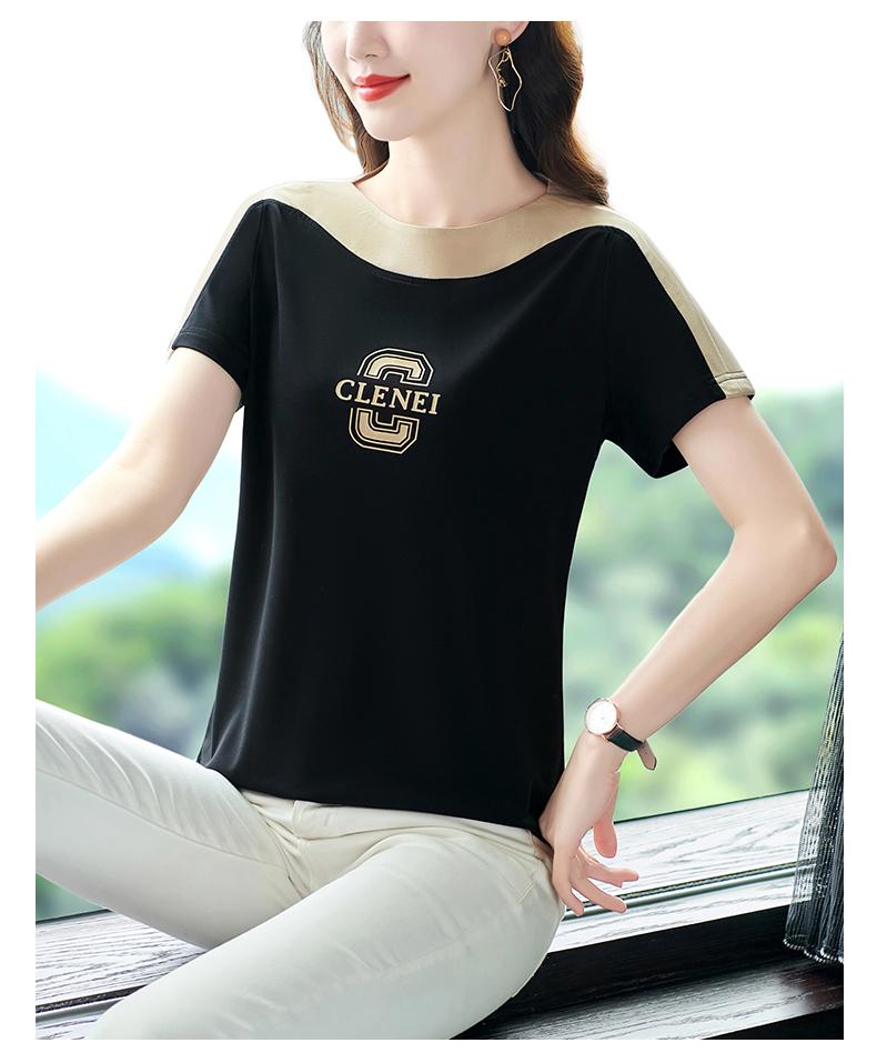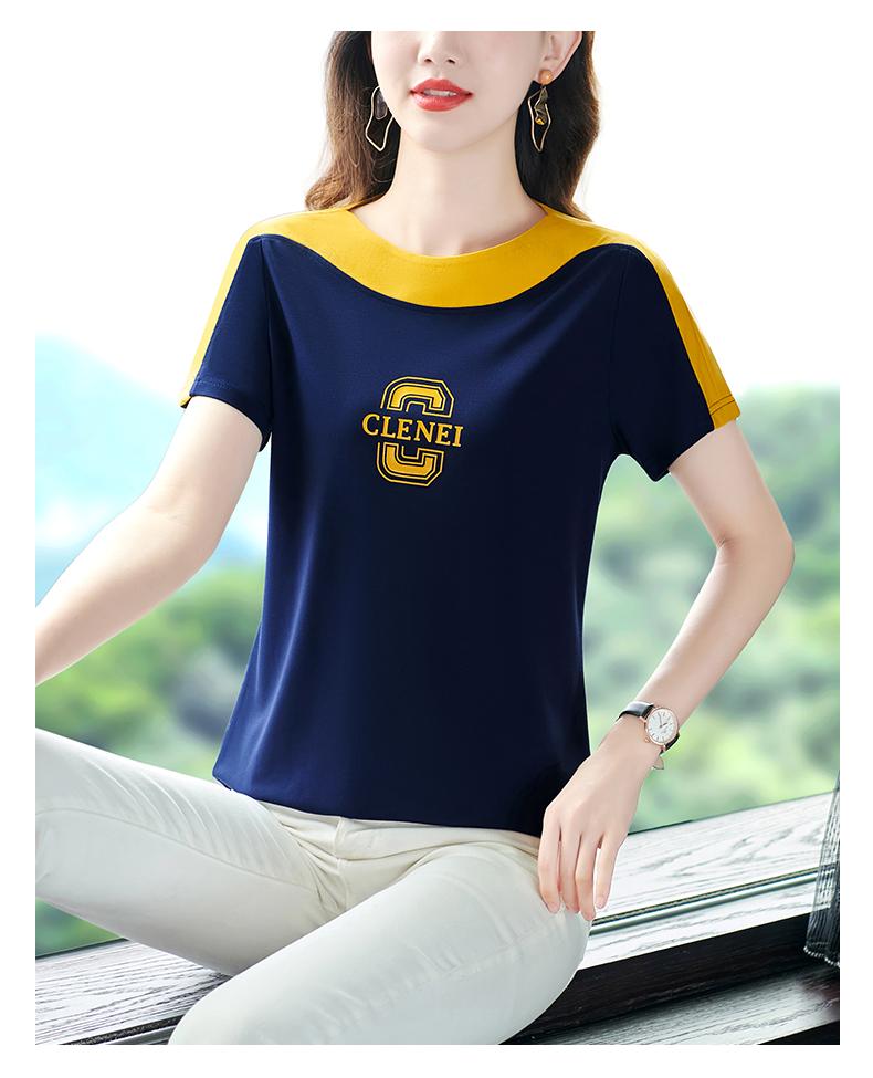 Costuras en Color de Contraste Manga Corta Mujer 2023 Nuevo Verano Suelto Moda Coreana Camiseta Casual Talla Grande Top Camiseta