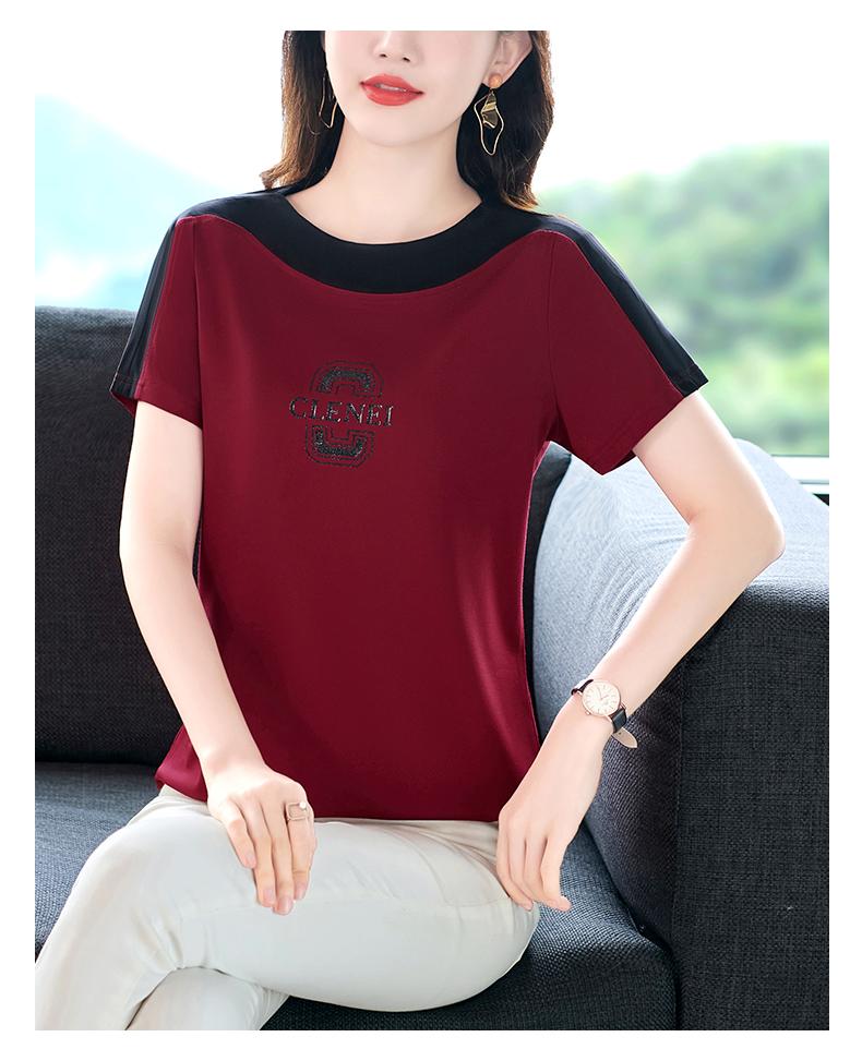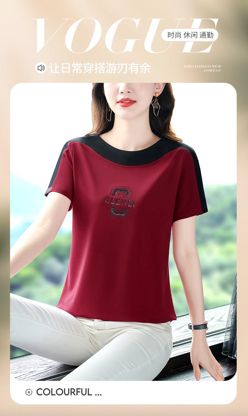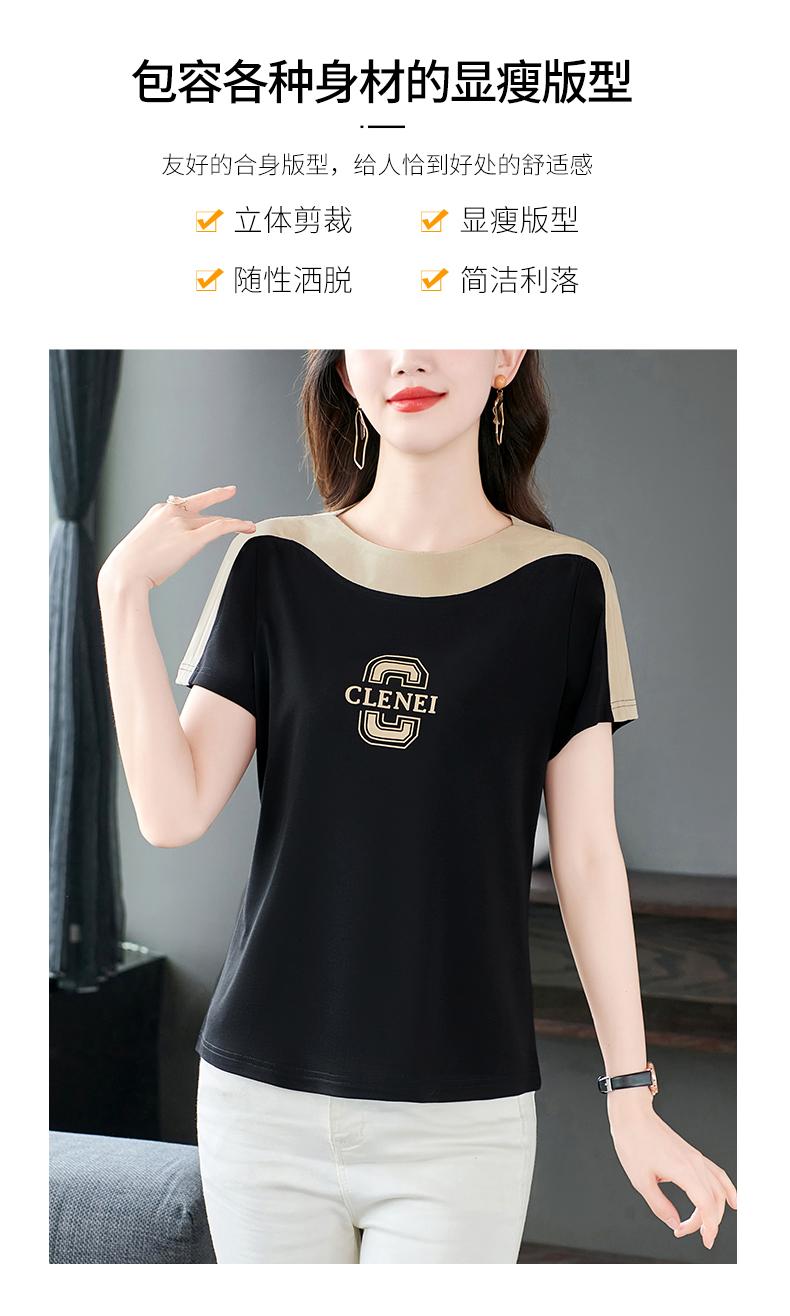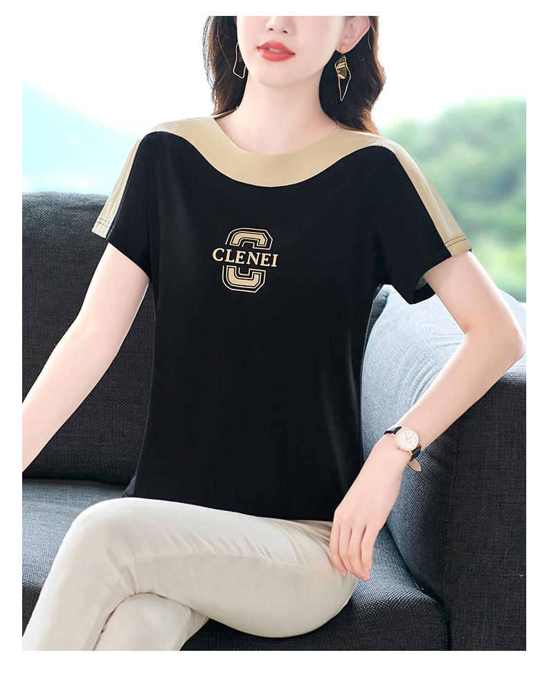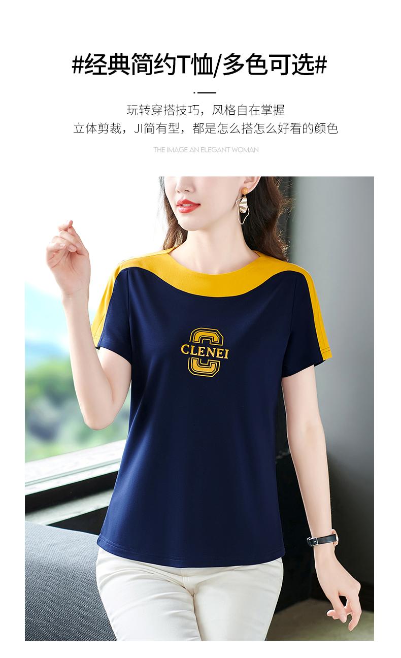 Costuras en Color de Contraste Manga Corta Mujer 2023 Nuevo Verano Suelto Moda Coreana Camiseta Casual Talla Grande Top Camiseta