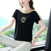 Camiseta de Manga Corta con Bloques de Color para Mujer 2023 Nueva Holgada de Verano Moda Coreana Casual Talla Grande