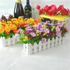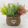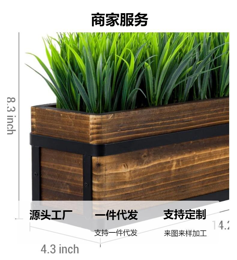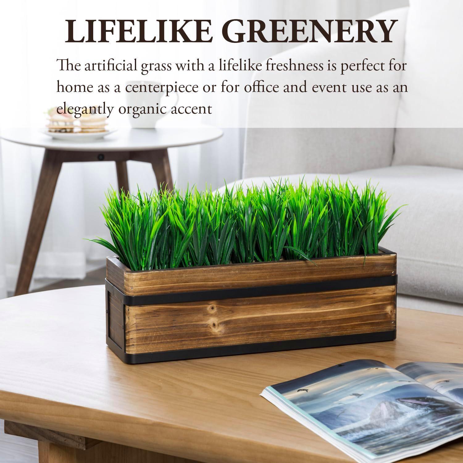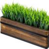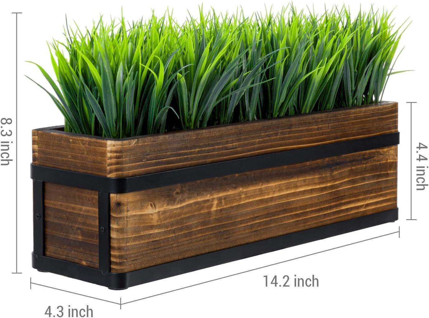 Planta de Pasto Verde Artificial Maceta Rústica de Madera Quemada Caja Metal Negro Industrial Decorativo Centro de Mesa Verde para Escritorio