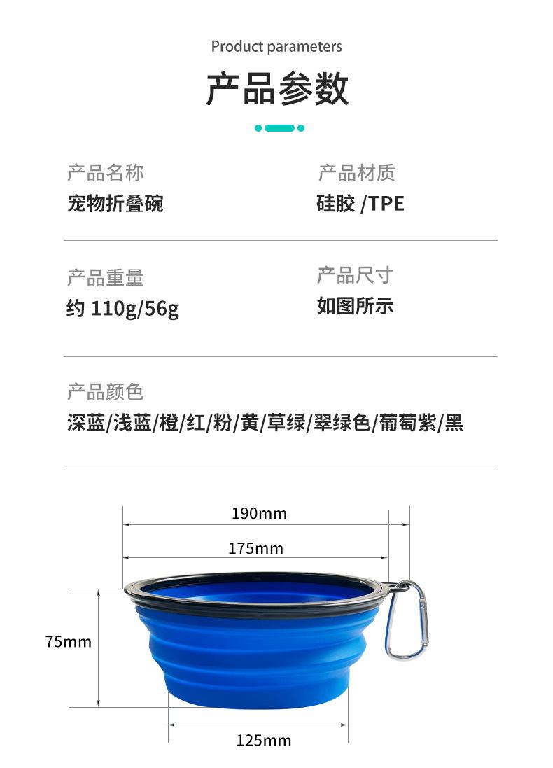 Especificaciones del producto: Tazón plegable de silicona tamaño pequeño 145*55mm 60g 350ML