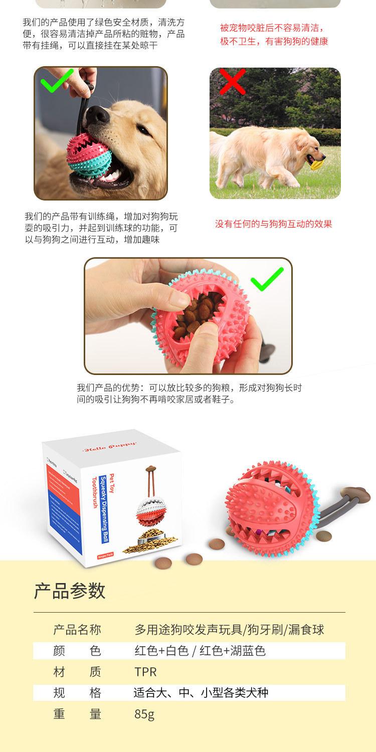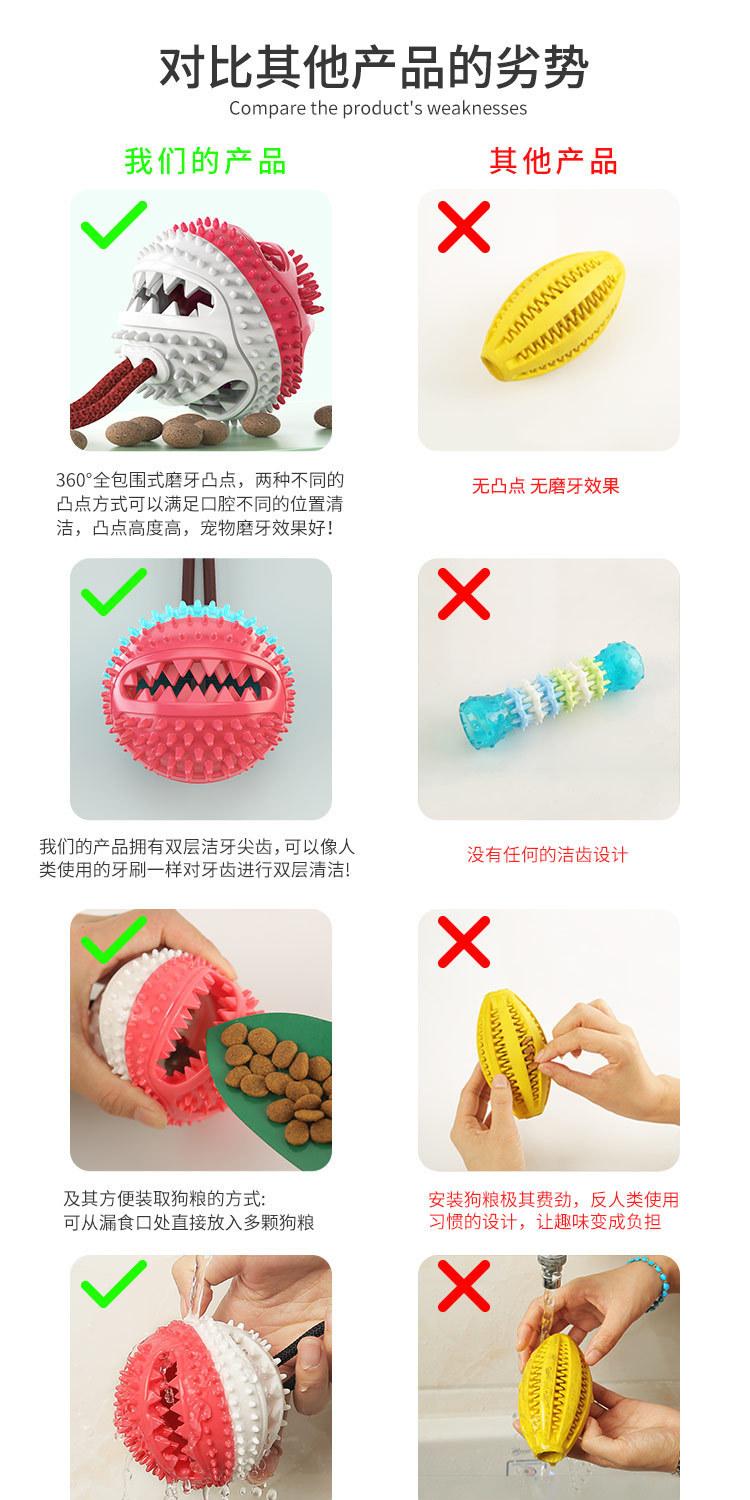 Este producto es un diseño original de nuestra empresa, de forma redonda, con un diseño interior hueco que puede contener snacks o alimento para perros, atrayendo a los perros a jugar. Los orificios dispensadores de comida están dispuestos horizontalmente, y los lados de los orificios dispensadores de comida están diseñados con púas de limpieza dental internas y externas de doble capa. Mientras los perros usan este producto, puede limpiar mejor sus dientes de suciedad o sarro, protegiendo su salud bucal.