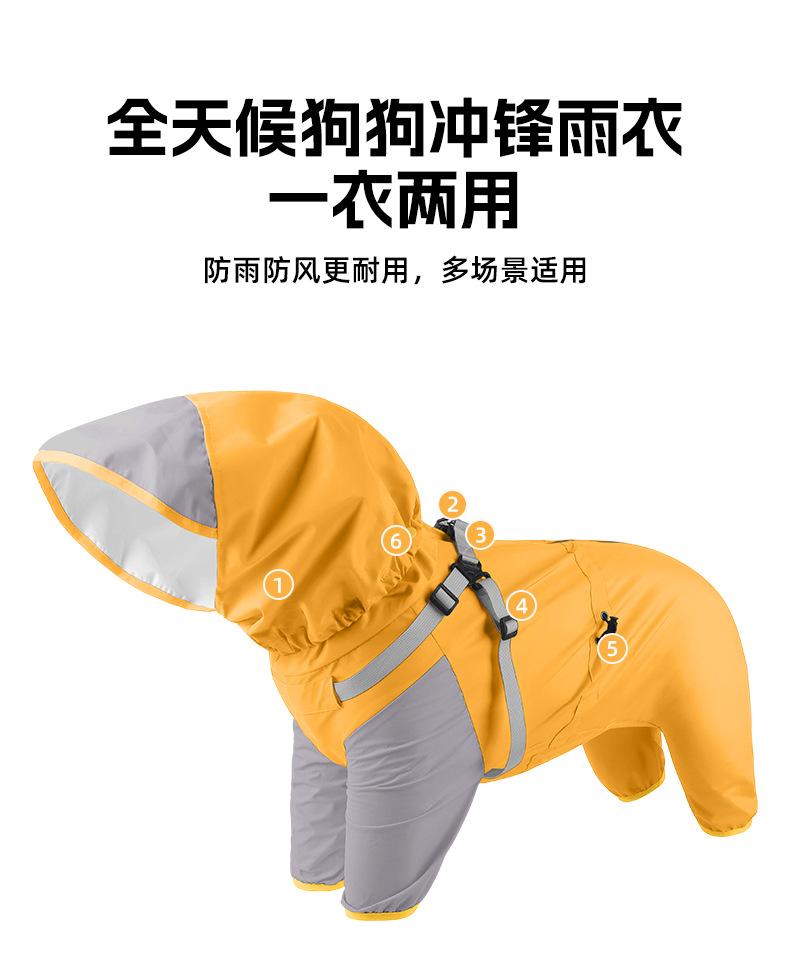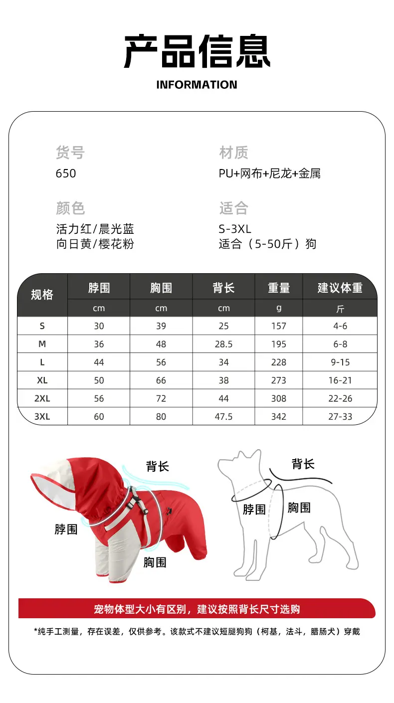 Impermeable para Perro Mascota Cachorro Impermeable de Cuatro Patas Cortavientos Impermeable Ropa para Perro Exterior con Capucha Desmontable Impermeable para Perro