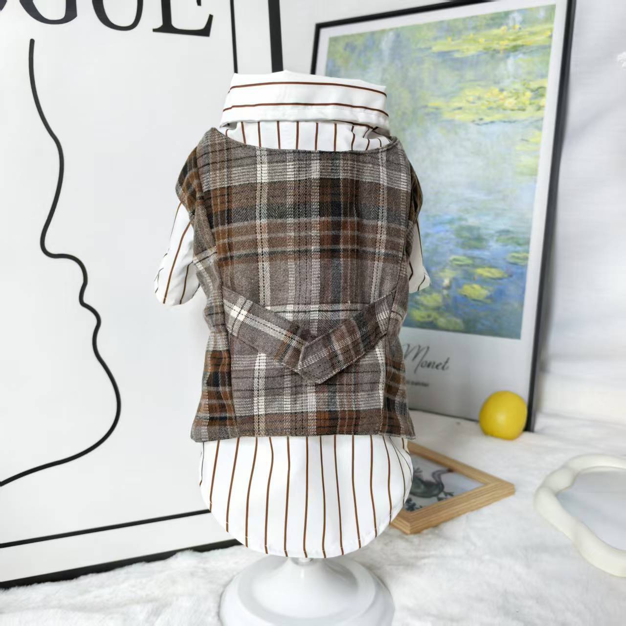 Brown retro plaid vest + shirt